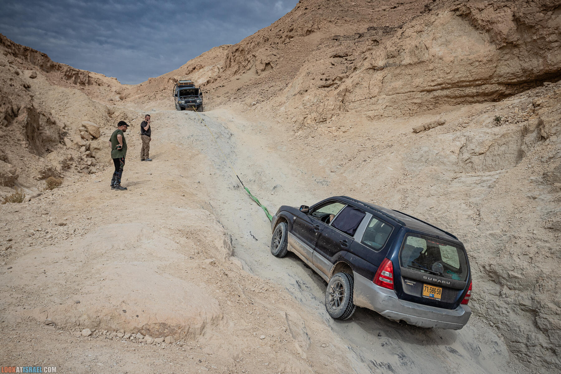 По уровню сложности он НЕ подходит для как минимум двух наших машин (должно было быть 4) Не подходит в том смысле, что они не смогут подняться сами. Они и не смогли и им помог тот самый большой джип и его лебедка. Смотрите видео.