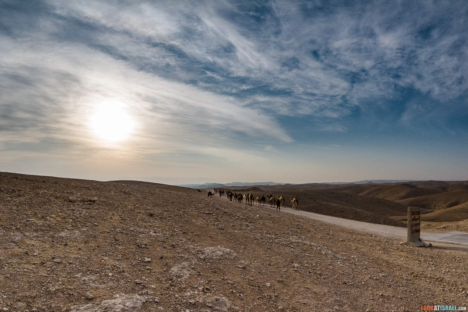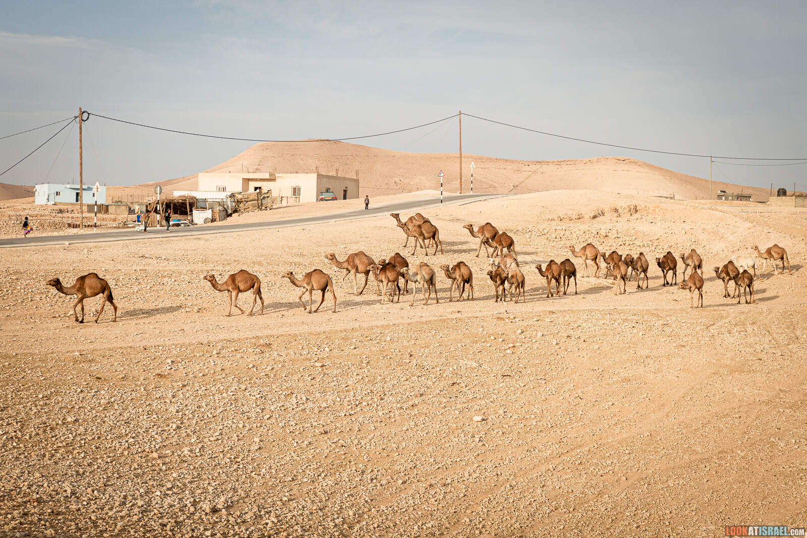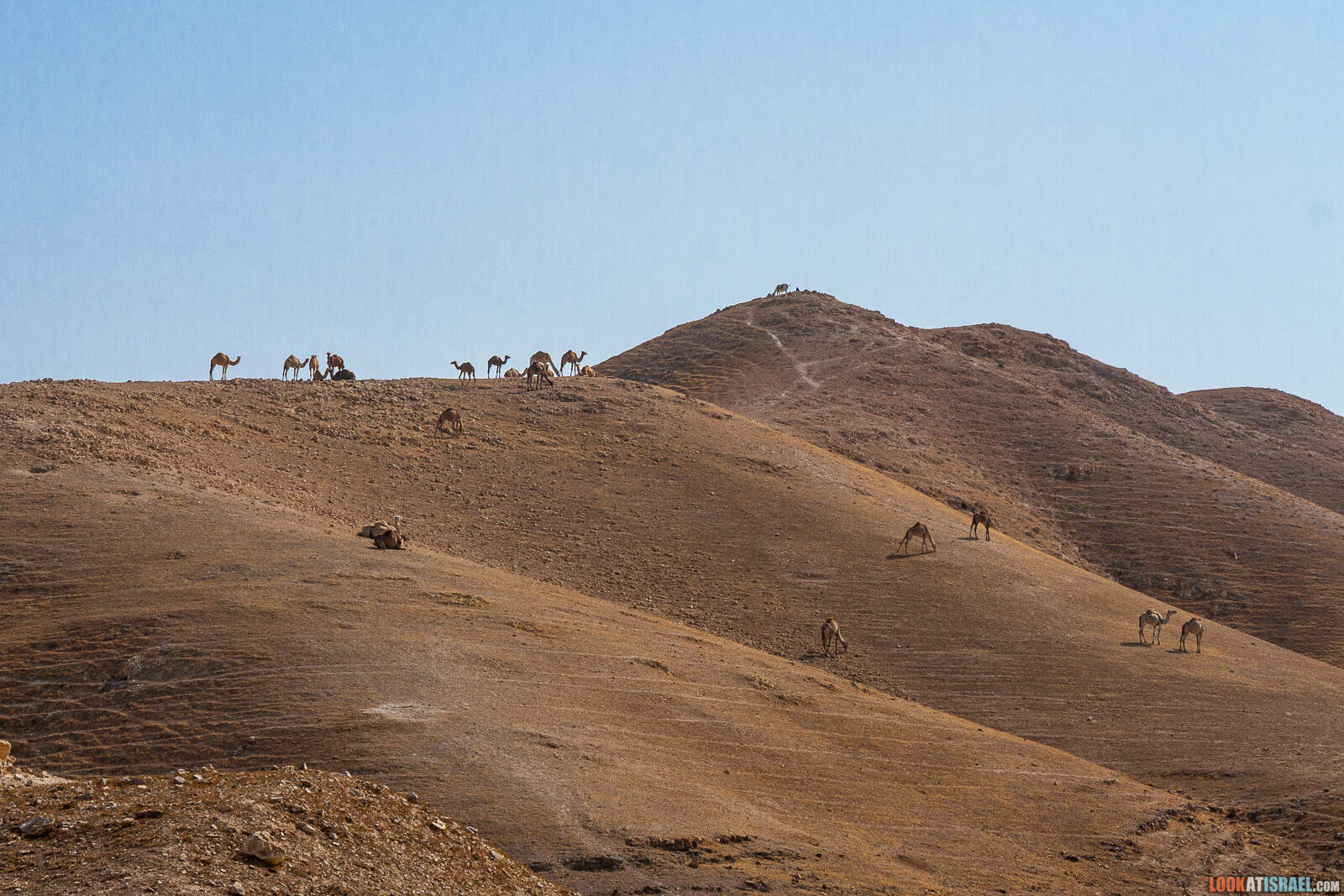 Верблюды дружною толпой отправили гулять в пустыню. И вот вам интересный факт — вы знаете, что для наших бедуинов верблюды это как для нас собачки и кошечки? Они держат их как домашних животных, так как в наших реалиях пользы от них никакой