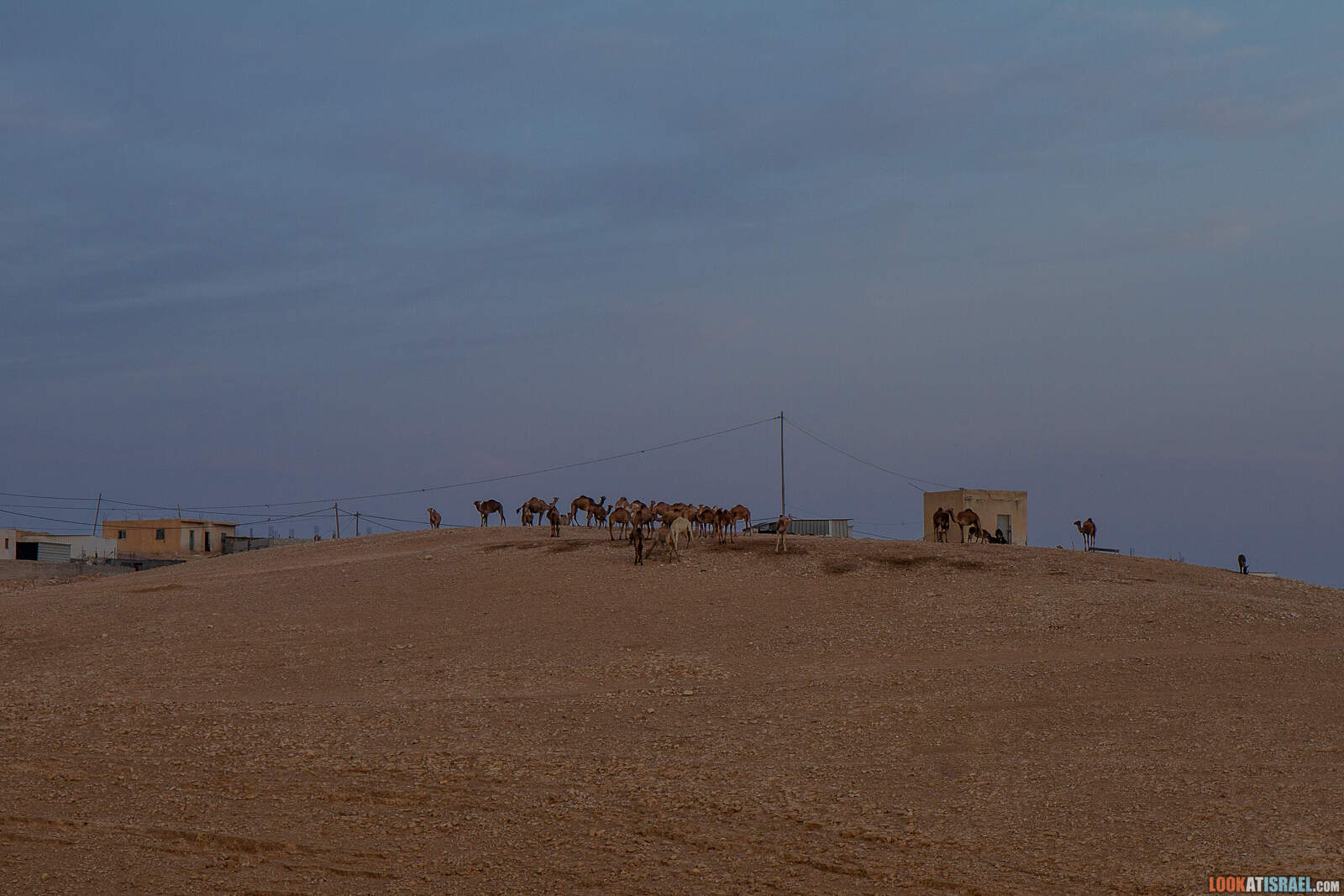 В бедуинской деревне жизнь начинается с первыми проблесками нового дня. Верблюды уже «завтракают», чтобы вскоре отправиться гулять.