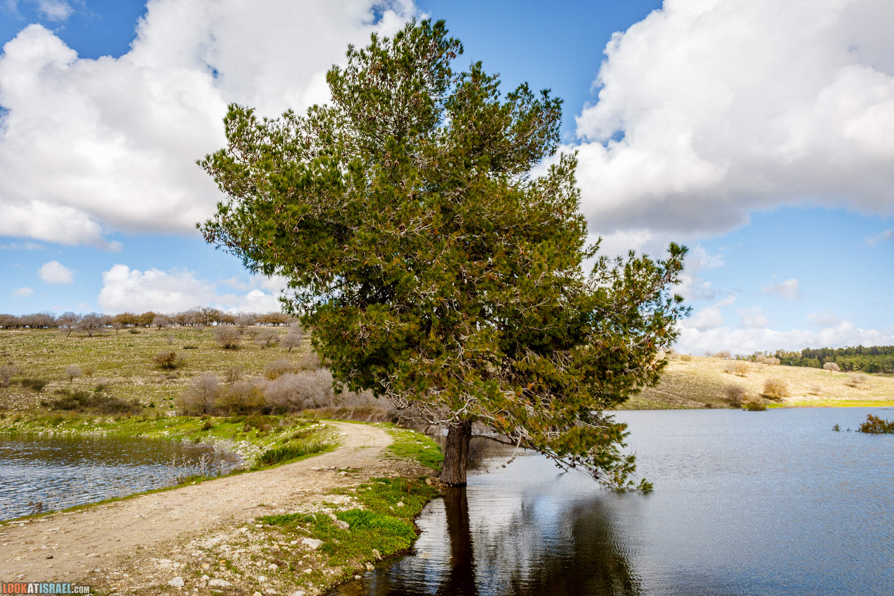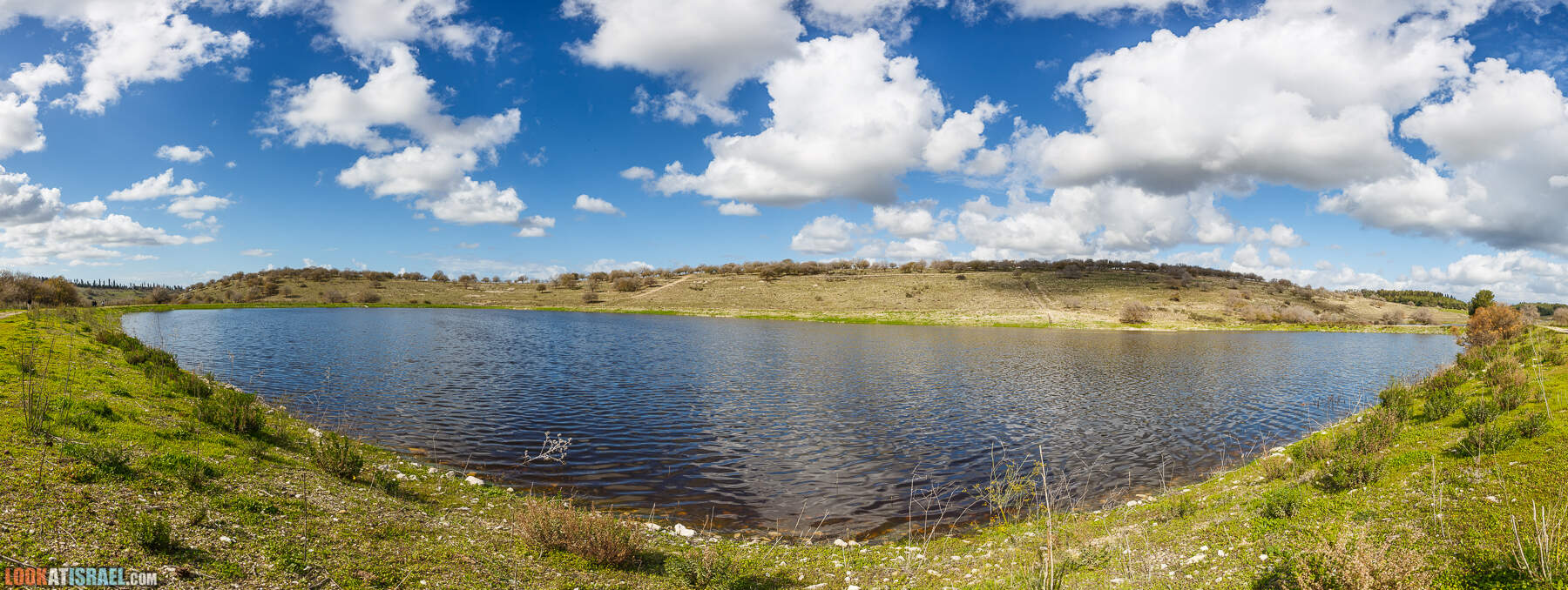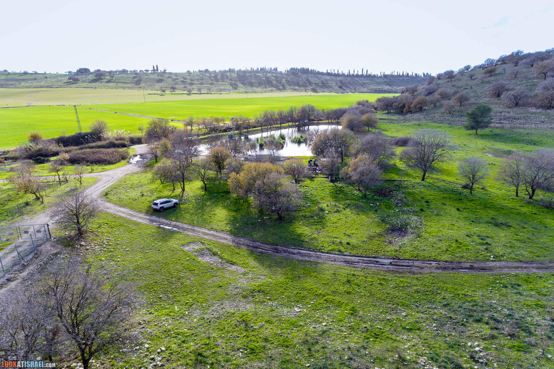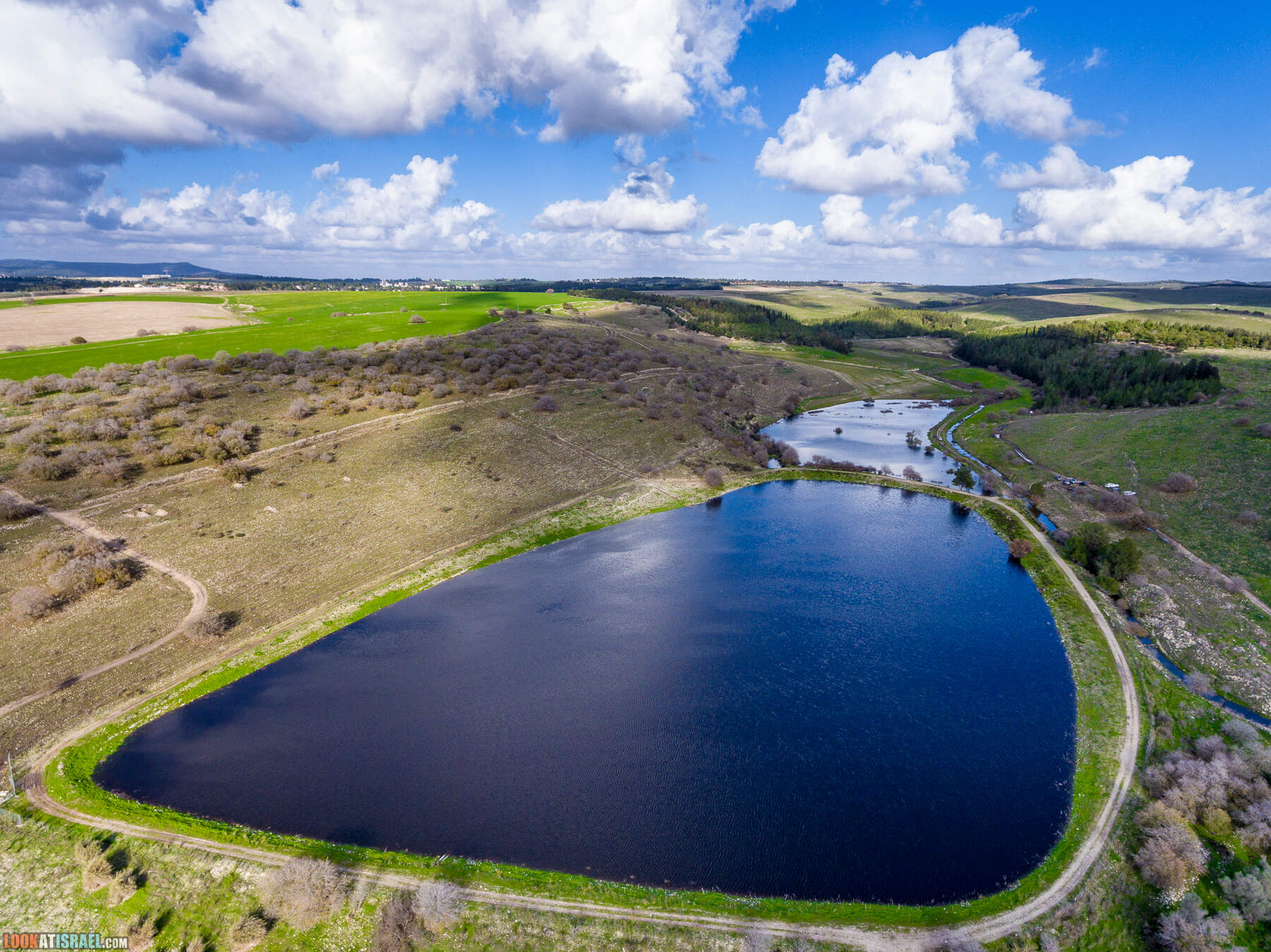 На самом деле это два искусственных водоёма принадлежат кибуцу Гилад. В одном собирается очищенная канализационная вода, во втором дождевая