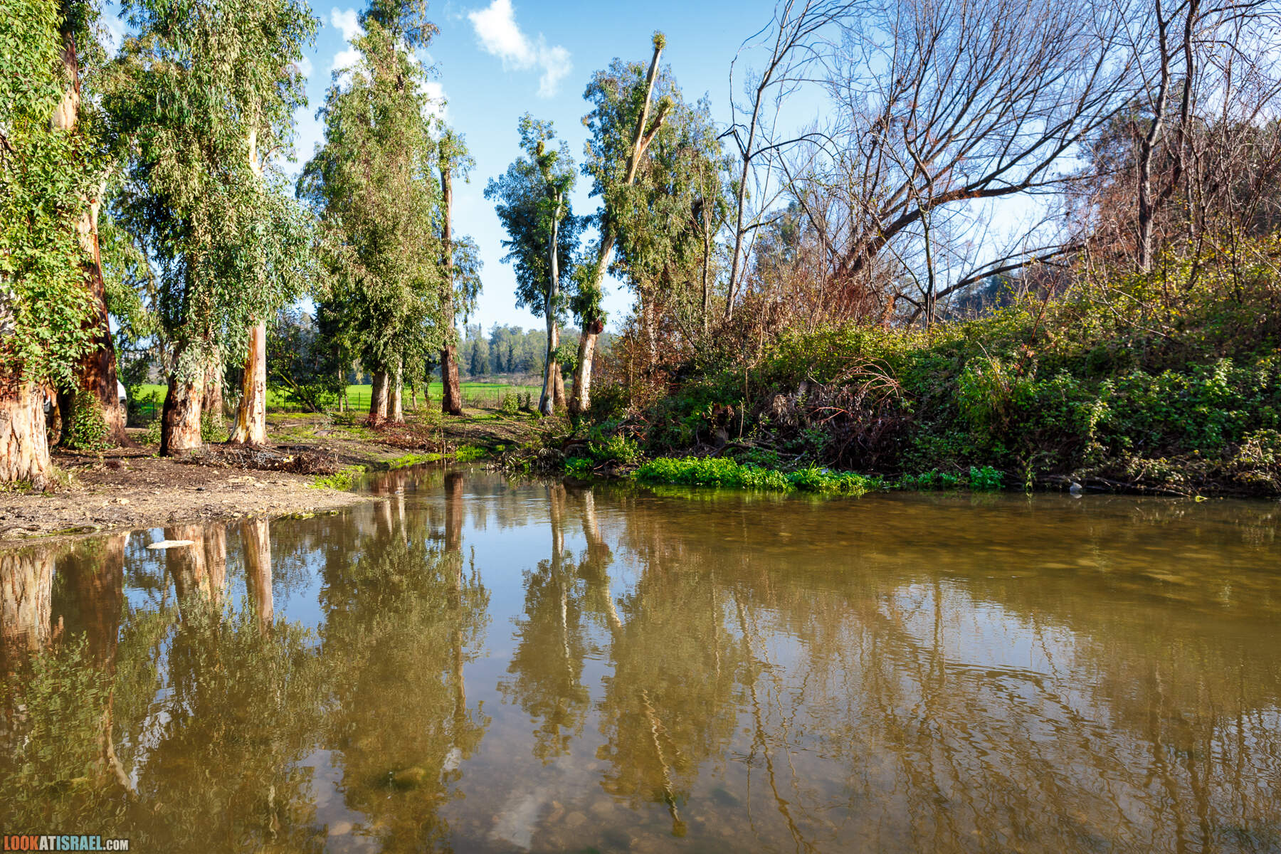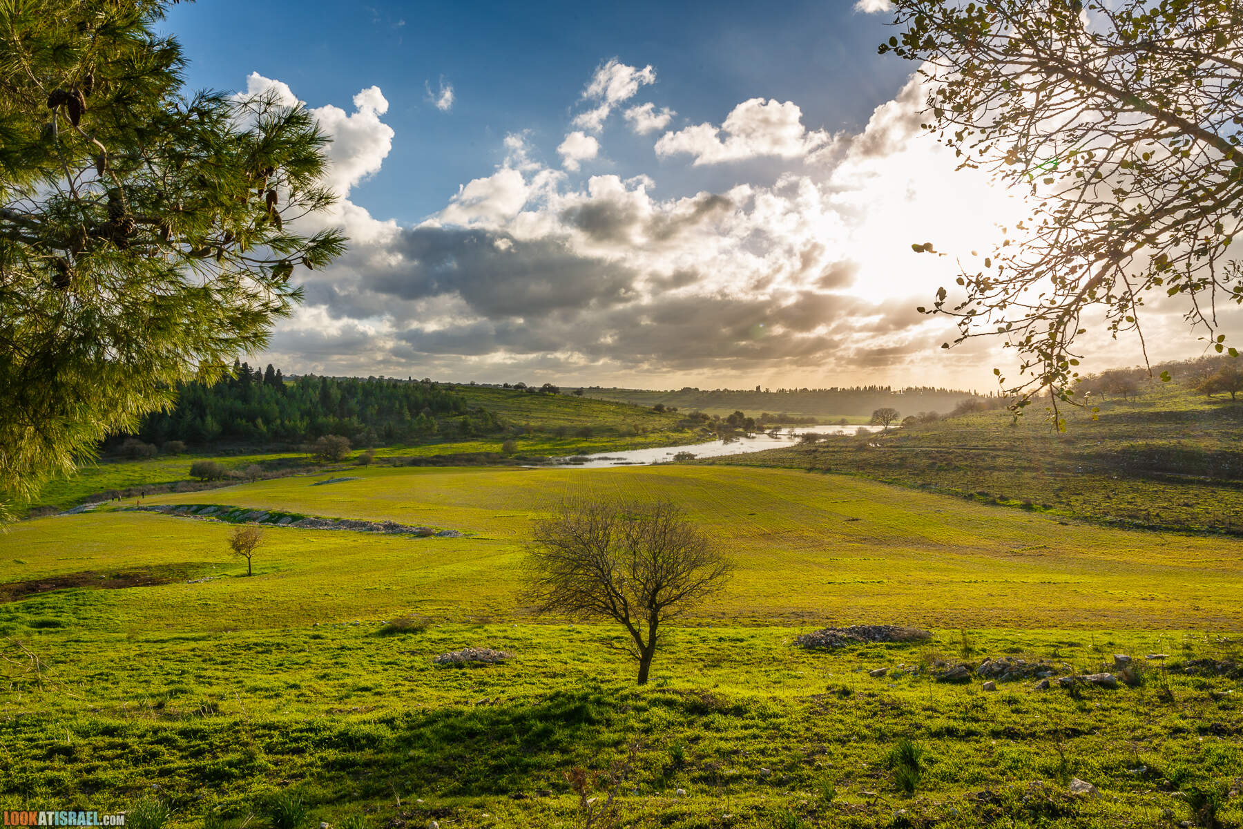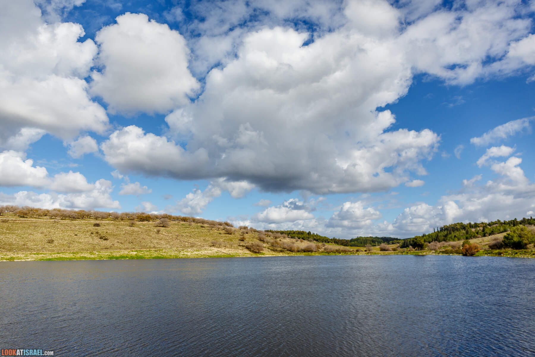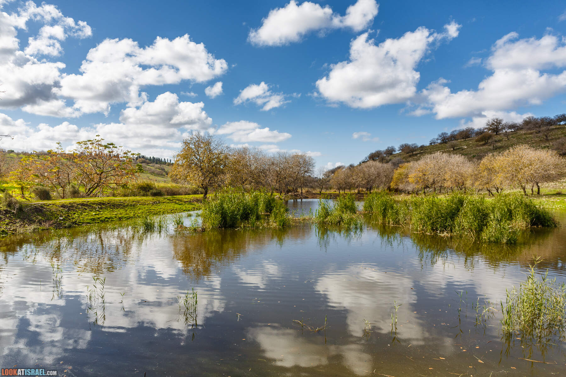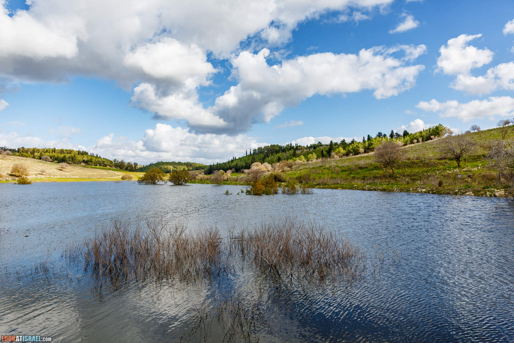 На самом деле это два искусственных водоёма принадлежат кибуцу Гилад. В одном собирается очищенная канализационная вода, во втором дождевая