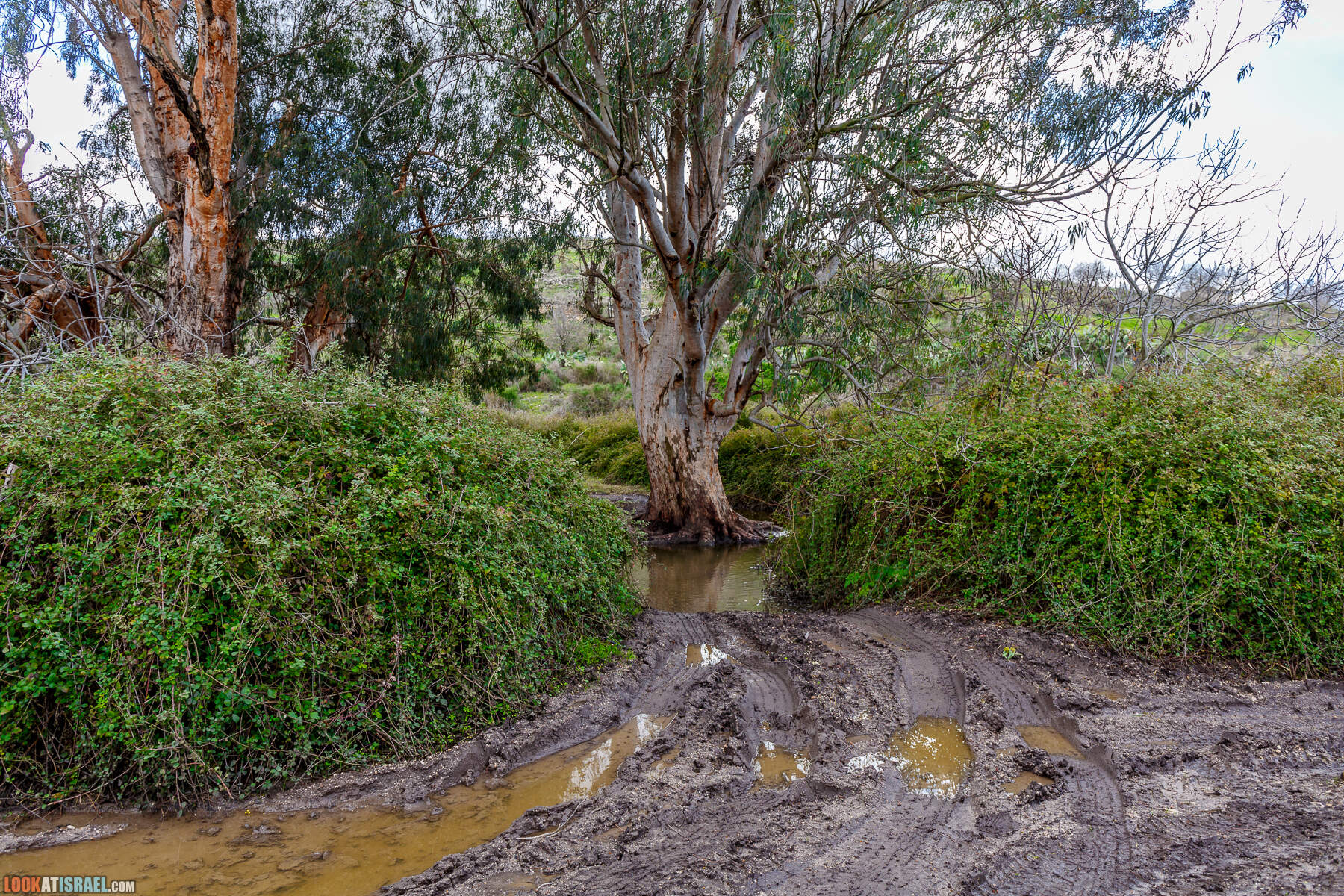 Наш путь дальше проходит по служебной дороге, под которой пролегает главный водопровод страны. Наличие глубочайшей лужи свидетельствует о прошедших обильных дождях, а никак не о прорыве трубы ;-)