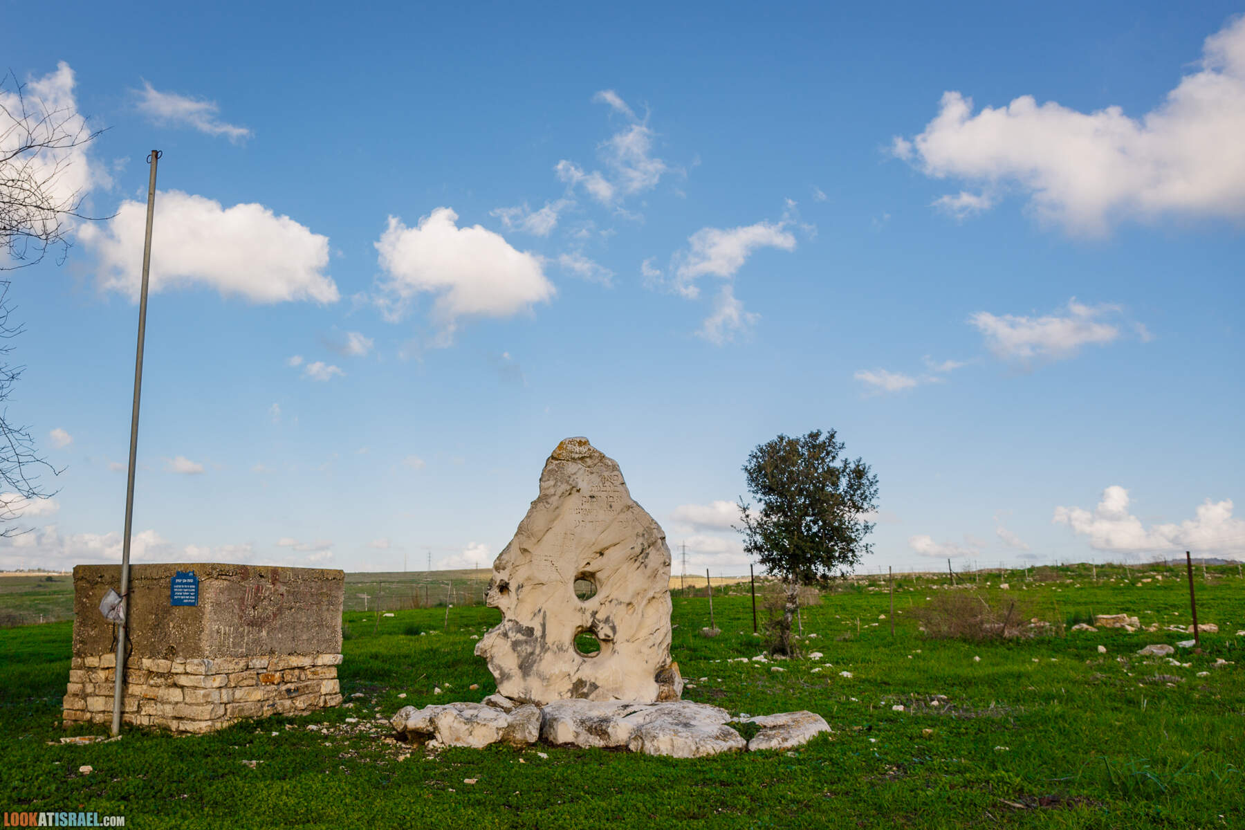 Когда все участники уже пили дома чаи, я продолжал кататься по окрестностям. И доехал до вершины Гиват Эвен Ицхак. Именно на этом месте 11 марта 1945 года, выходцы из Германии основали кибуц Гилад. В 1947 году кибуц «переехал» на свое нынешнее место, в нескольких сотнях метров отсюда.