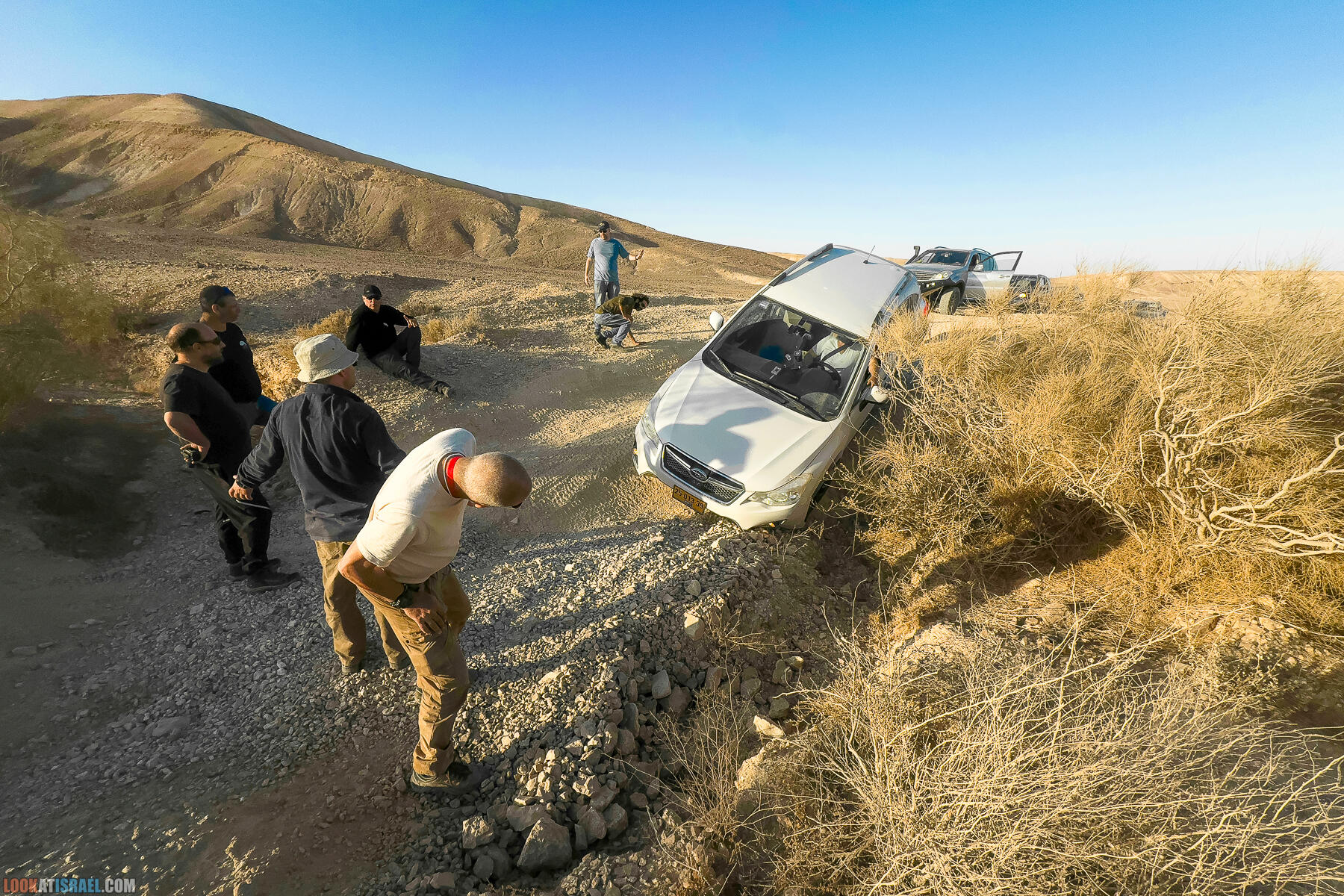 Но хоть в нашей колонне подавляющее большинство авто это Субару, мы все же предпочитаем пустыню. Поэтому туда и заезжаем.