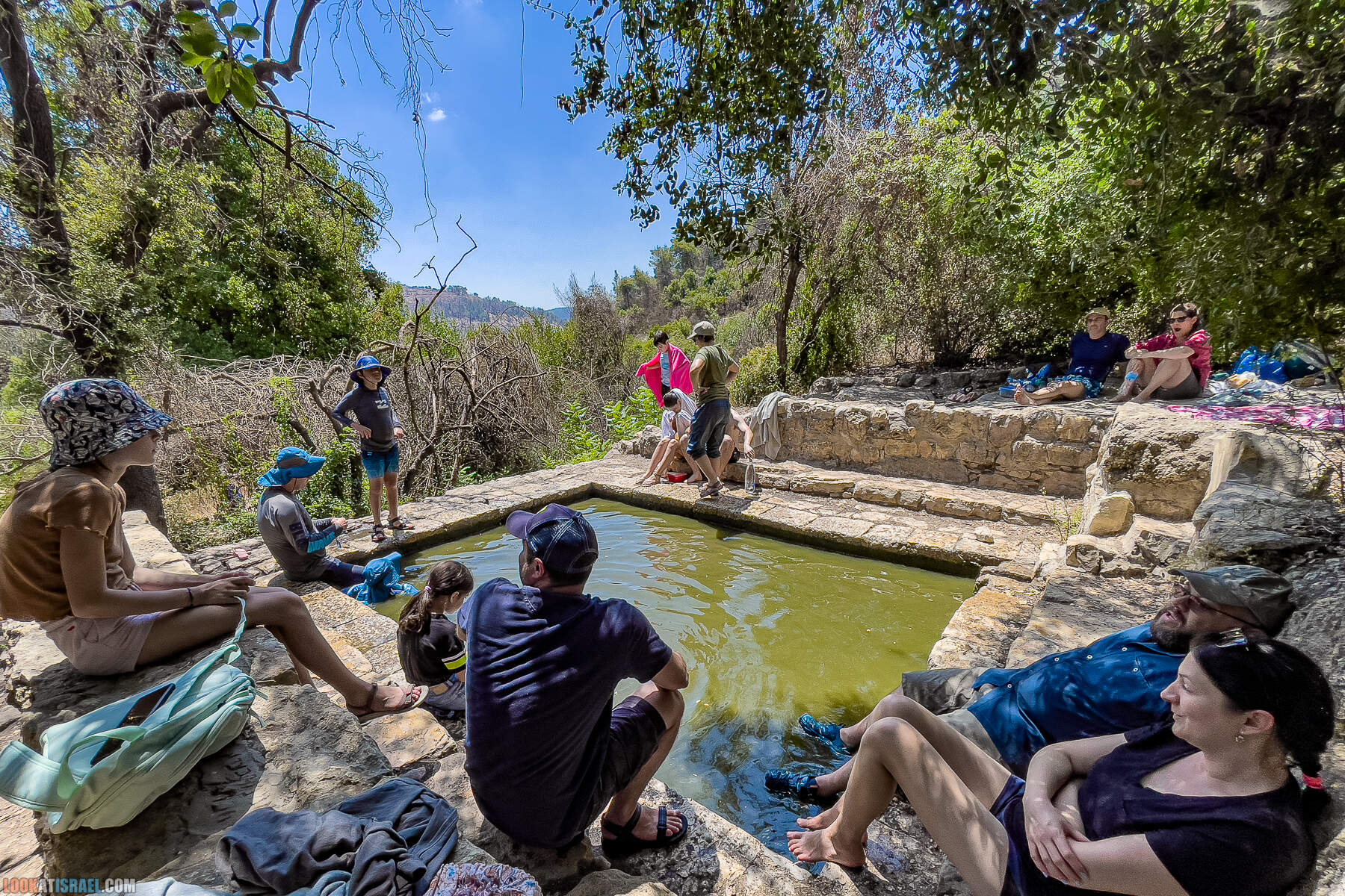 Мы тут спонтанно с друзьями покатались меж различных источников в Иерусалимских горах. Надо сказать, что когда внизу у моря было влажно и жарко, то на высоте столицы дул прохладный ветерок и совсем не чувствовалось лето. Ну и конечно местные водоемы хоть и удивляли цветом воды, но свою роль исполняли на отлично — охлаждали.