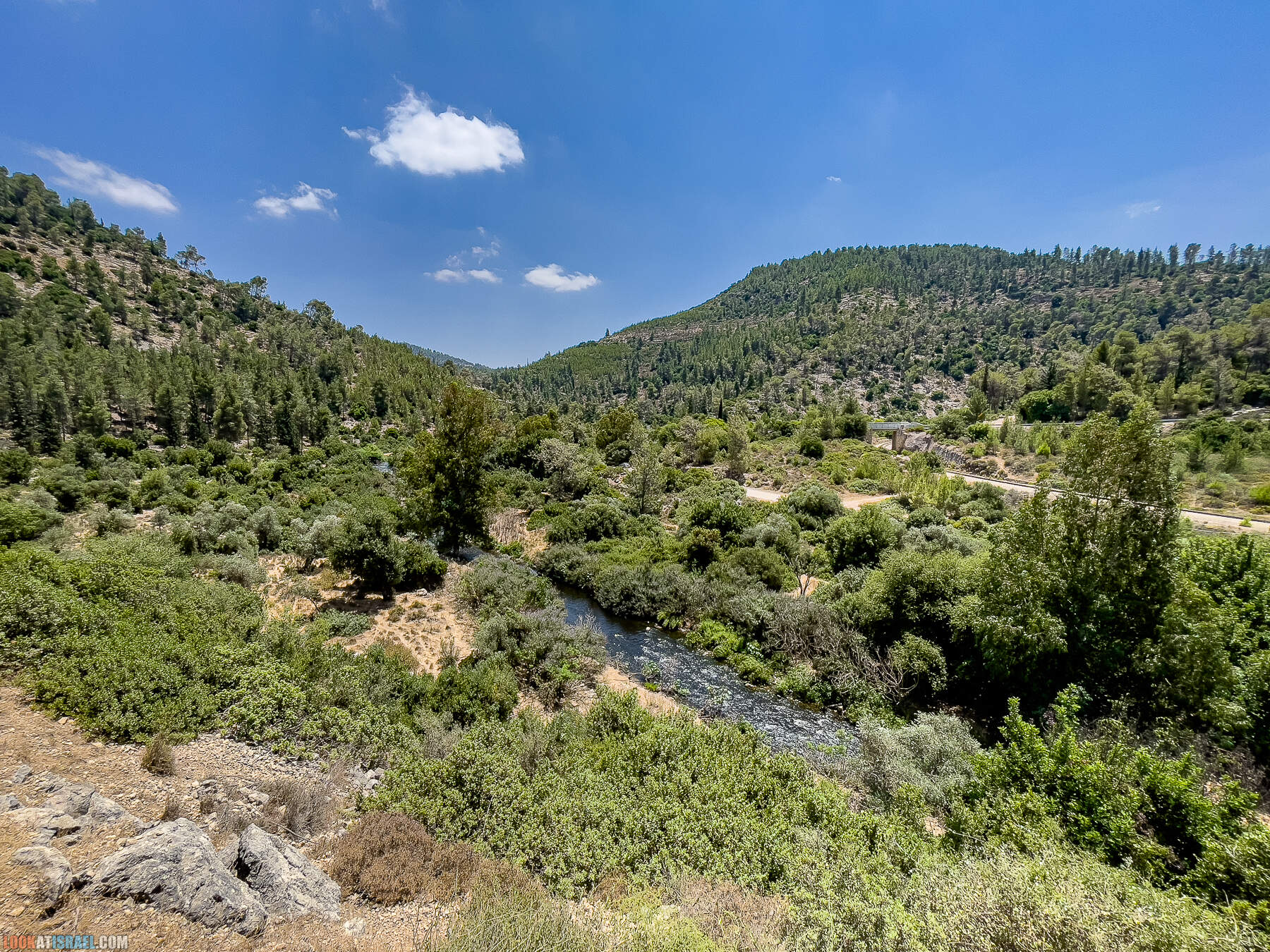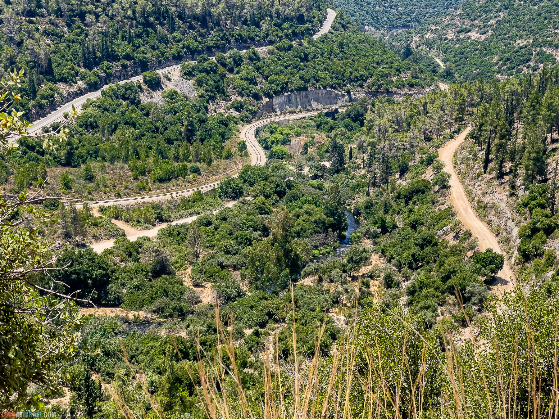 А мы уже едем дальше. Вон внизу шумит красавец ручей — Сорек. Он красив внешне, но его «внутренний» мир слегка подпорчен различными нехорошо пахнущими компонентами. Но вроде как заинтересованные организации делают все возможное для его очистки.