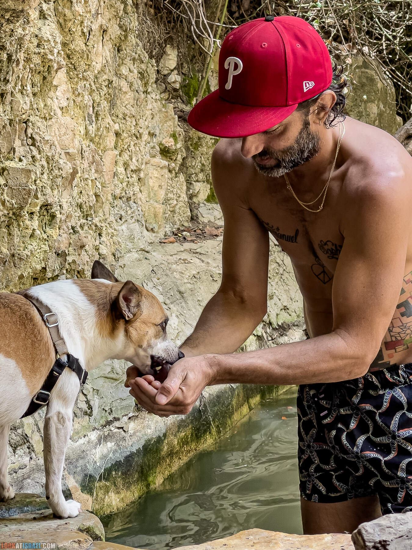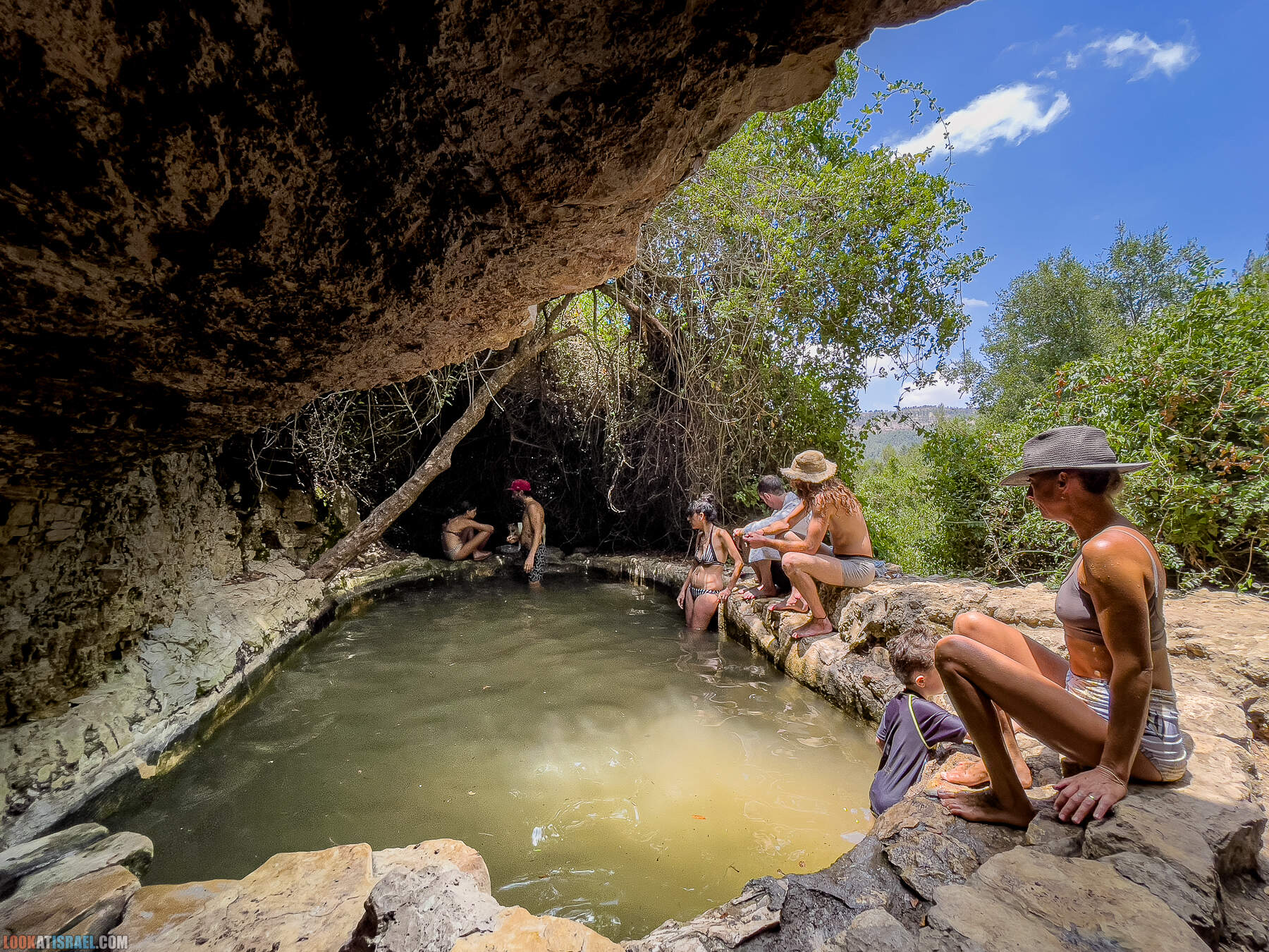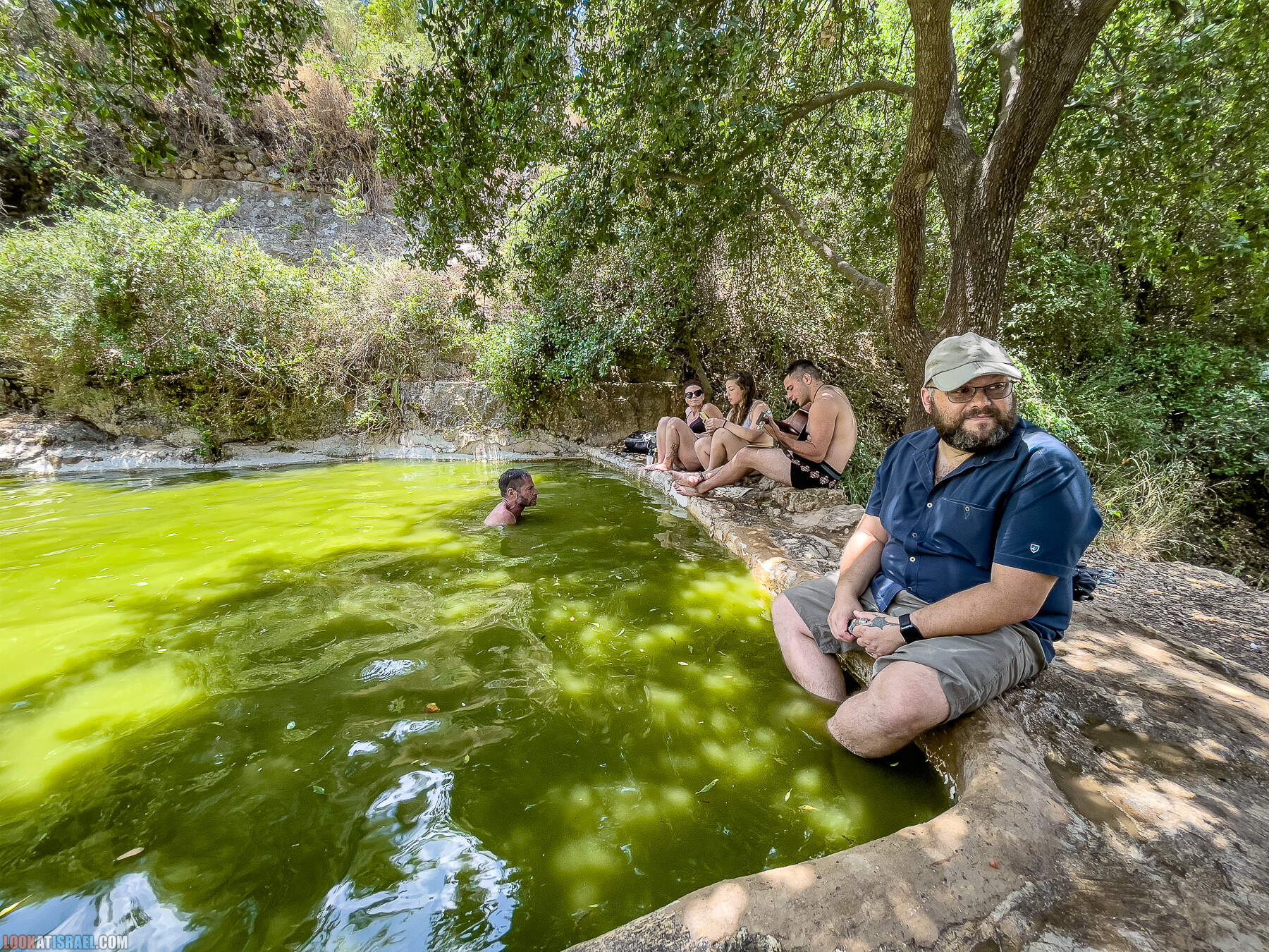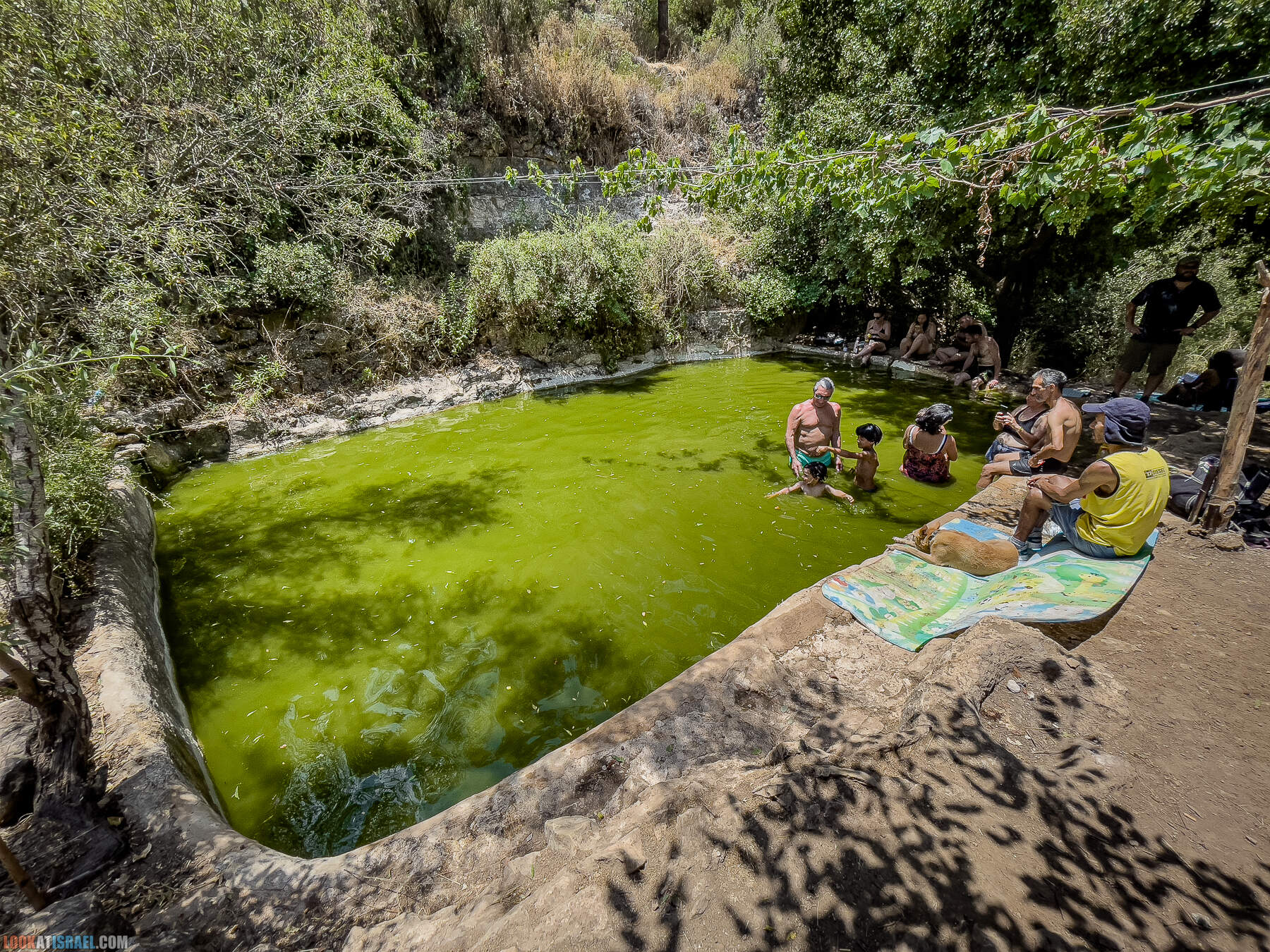 А мы тем временем приехали к первому источнику — Эйн Таясим. Вода в нем есть круглый год, правда многих она может отпугнуть свои цветом. Однако вполне подходит чтобы поплавать, ну или на крайний случай замочить ноги.