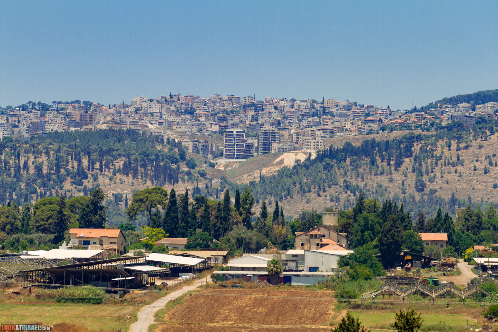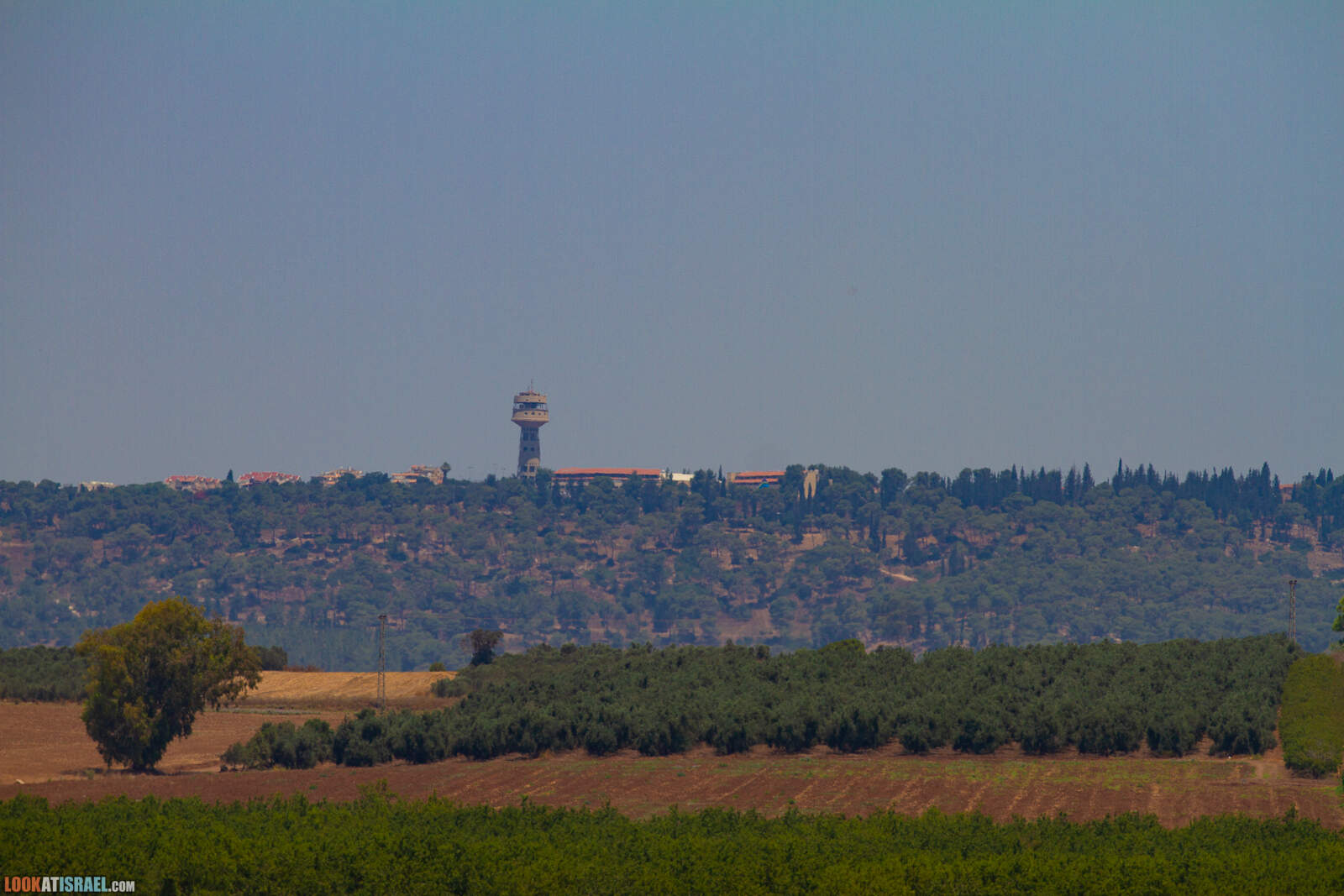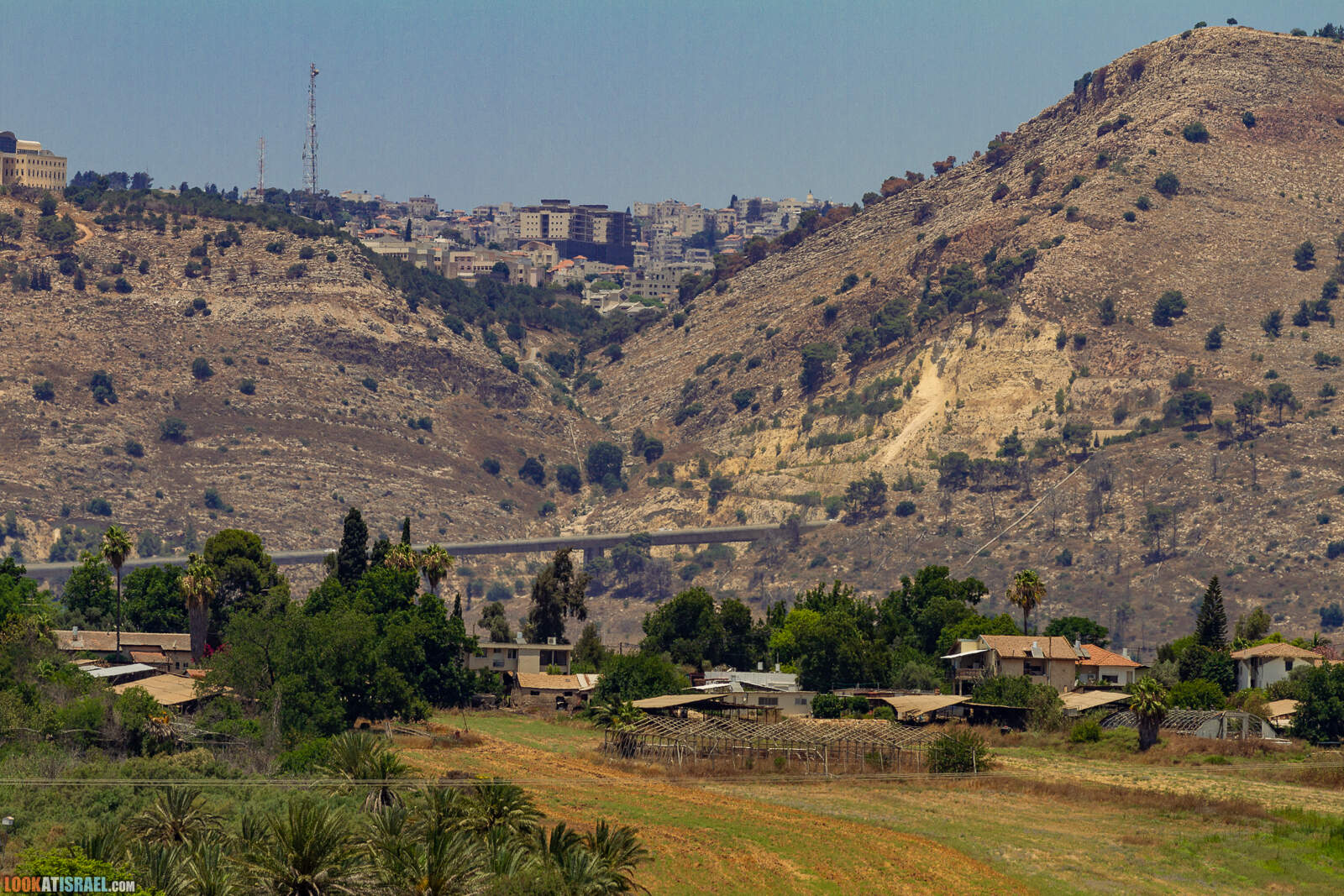 Вдали на холмах город Мигдаль А-Эмек и над ним тот мигдаль (в переводе с иврита — башня)