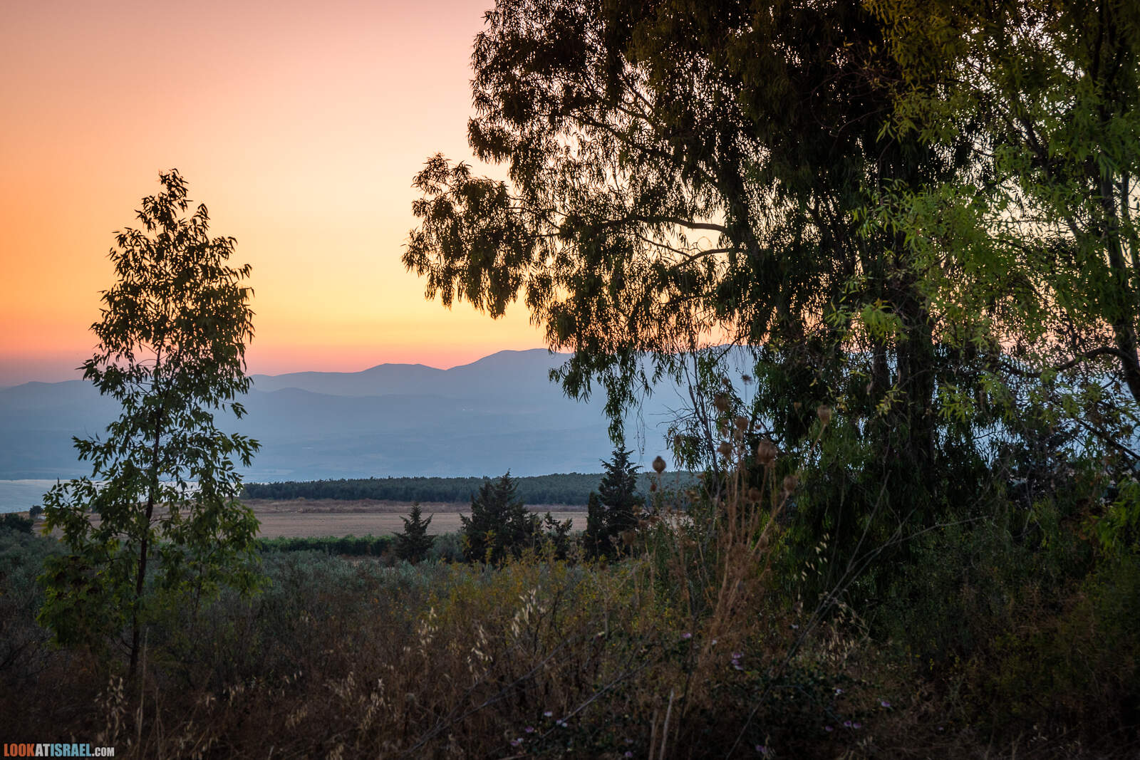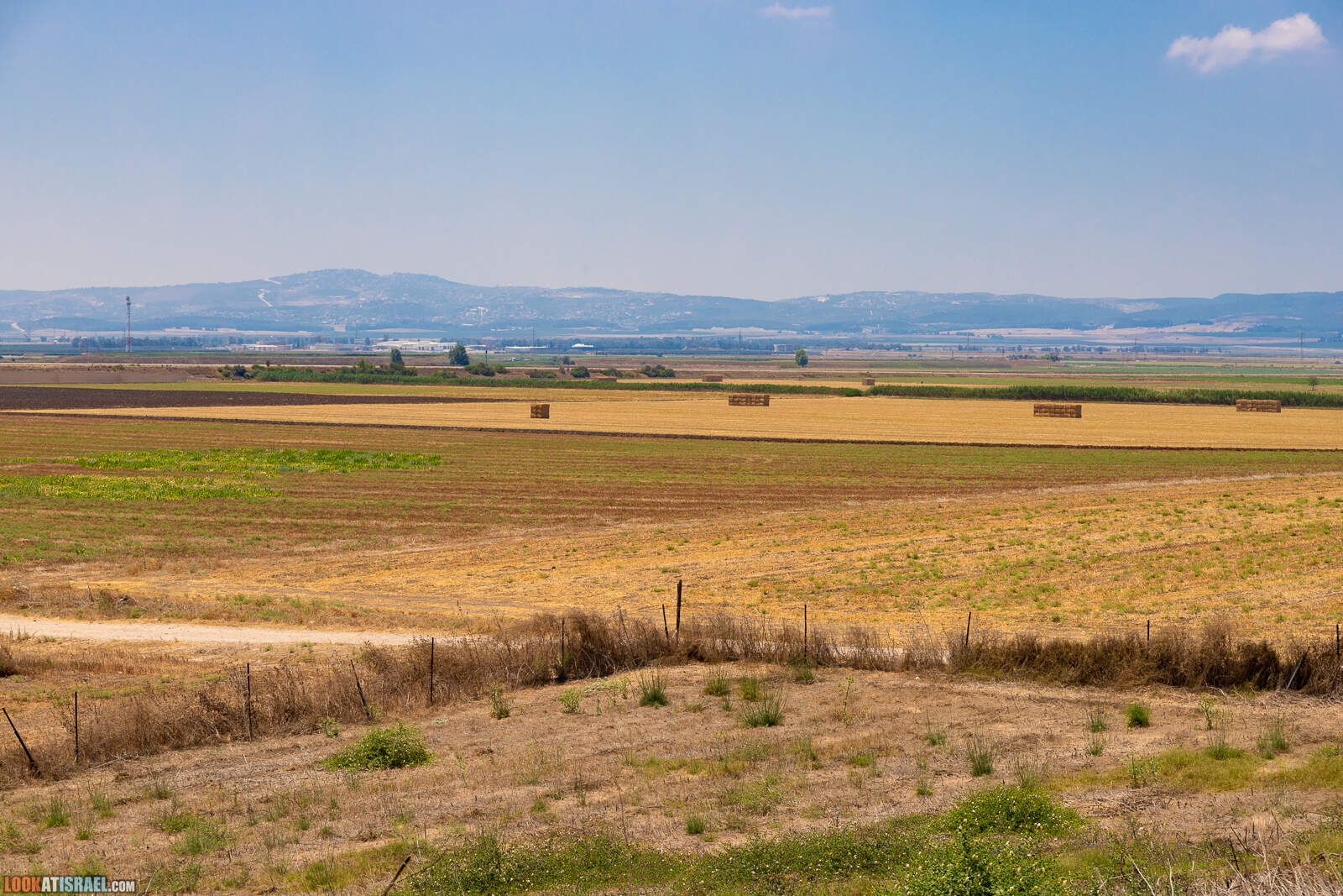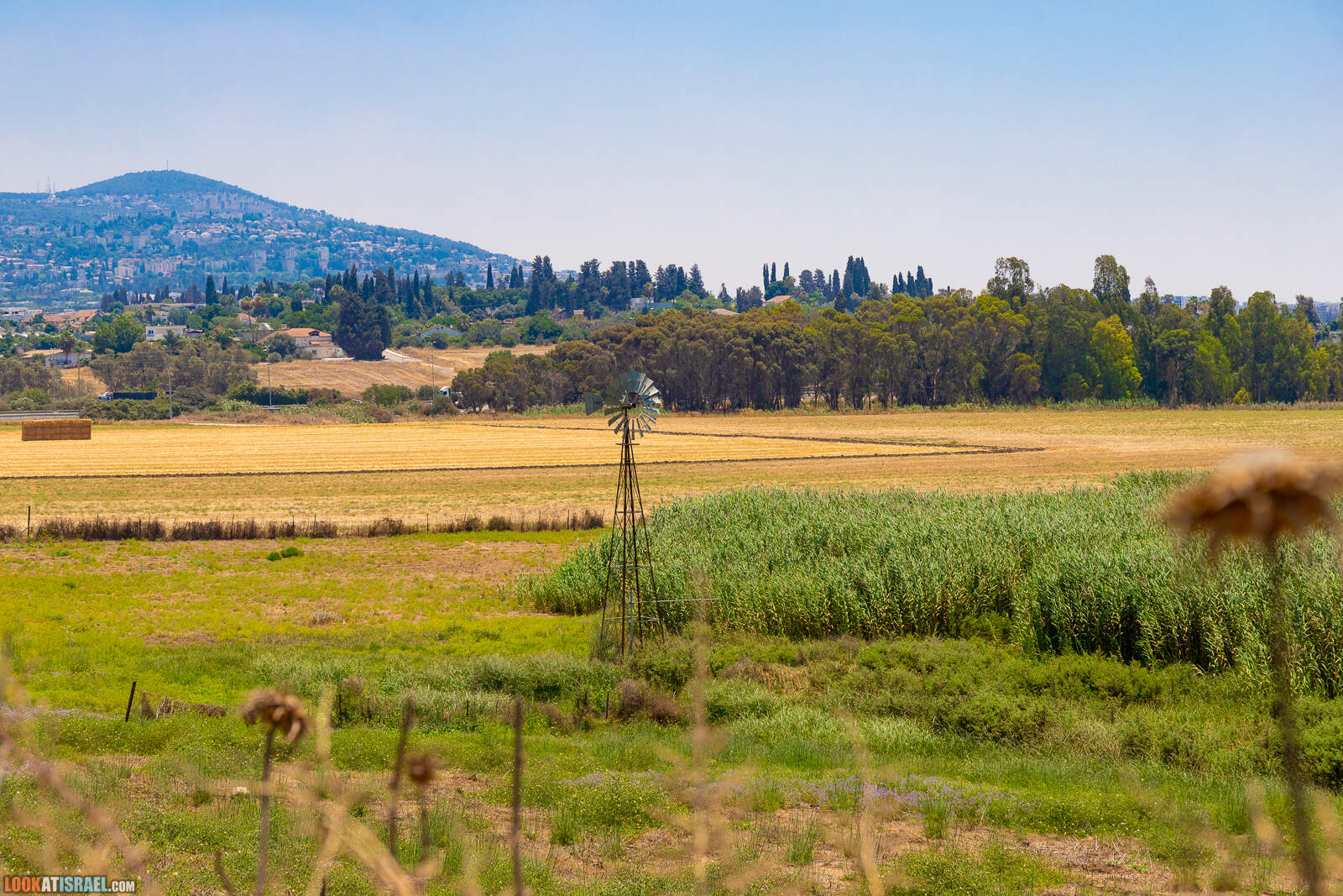 Вдали на холмах город Мигдаль А-Эмек и над ним тот мигдаль (в переводе с иврита — башня)