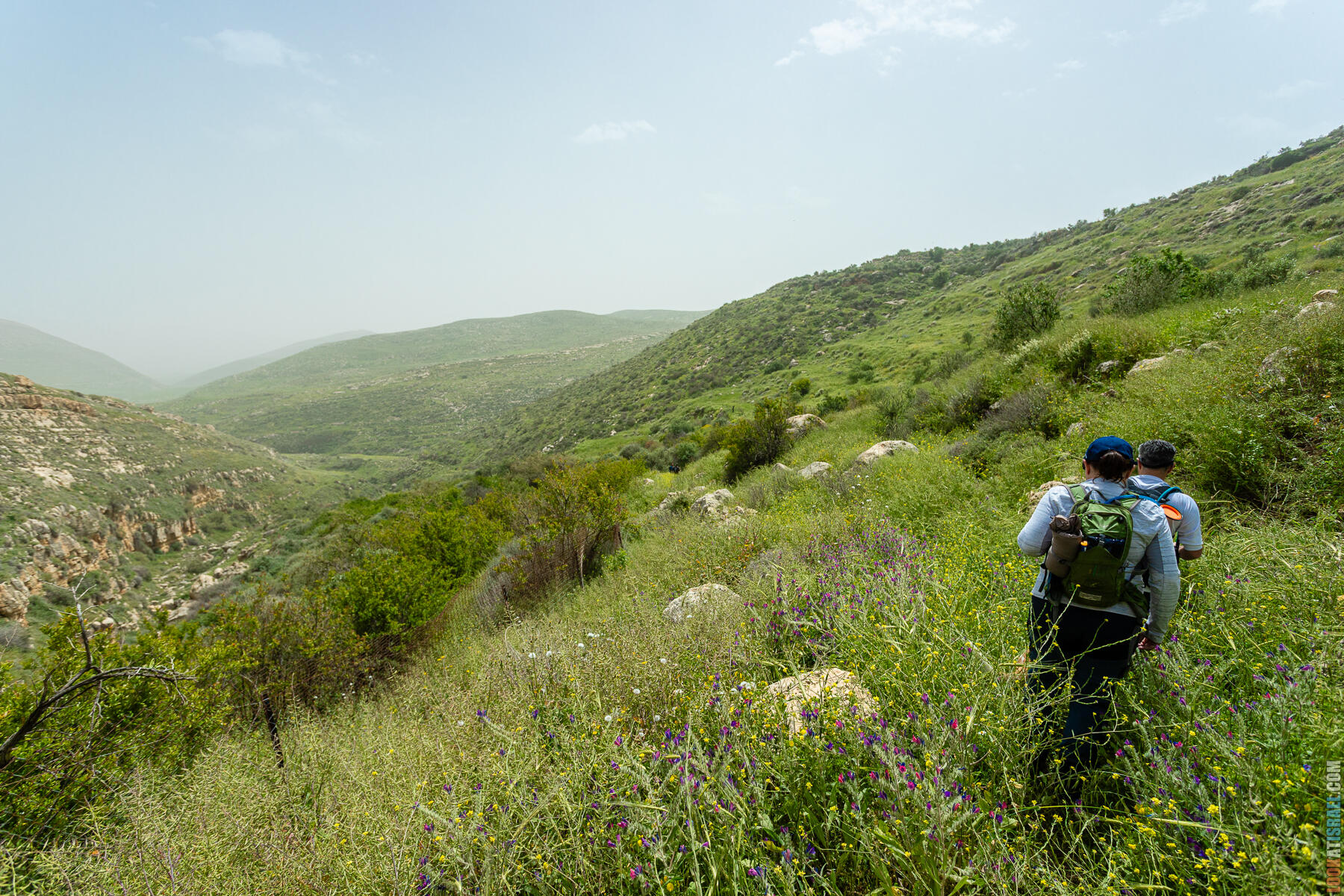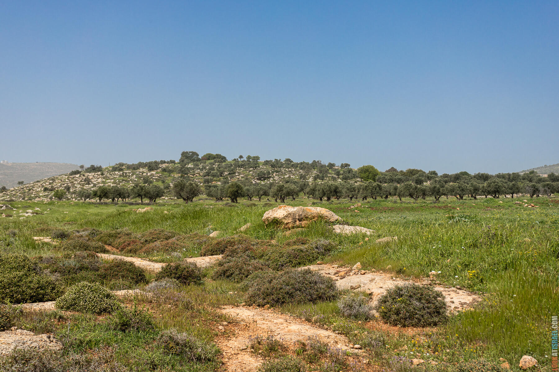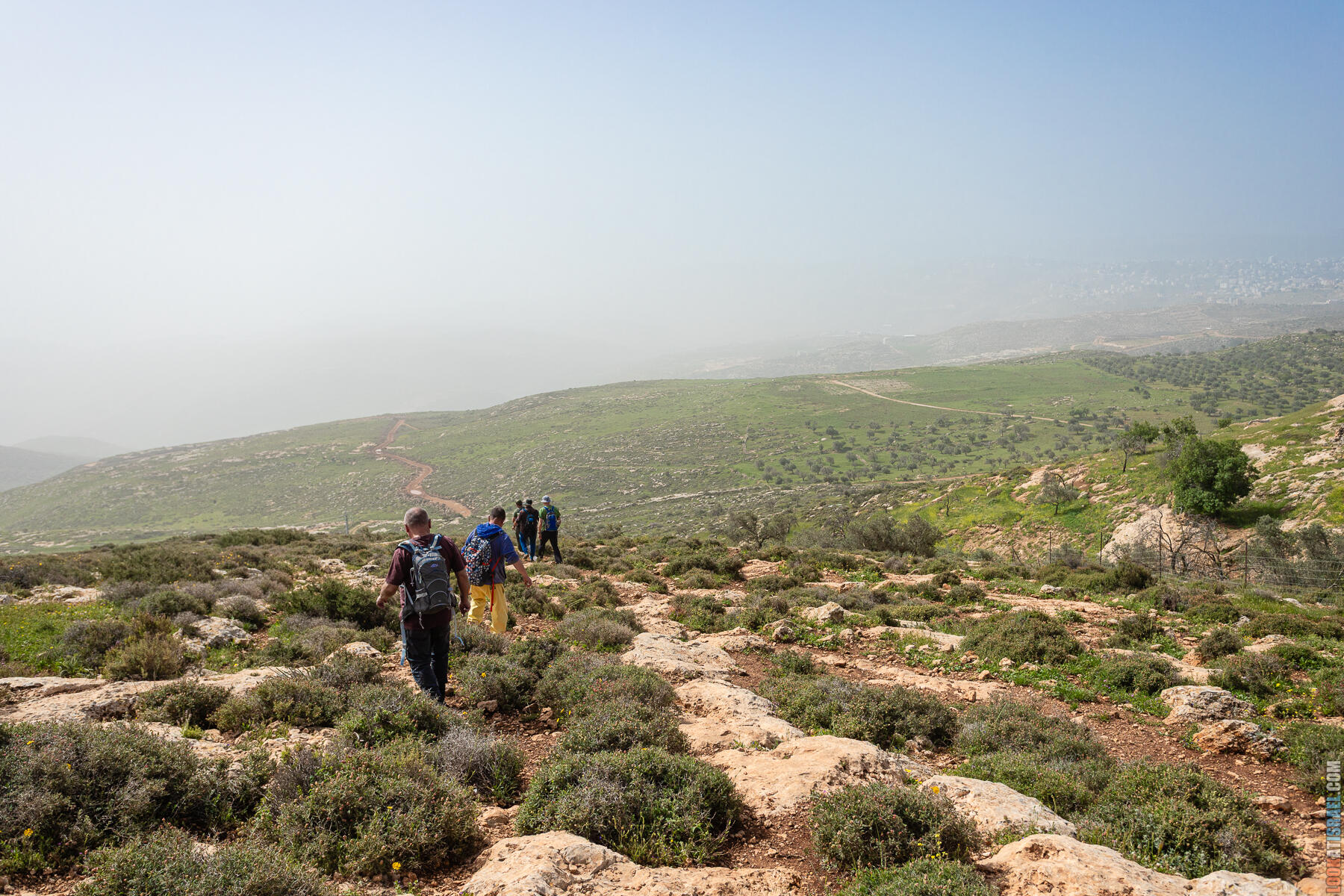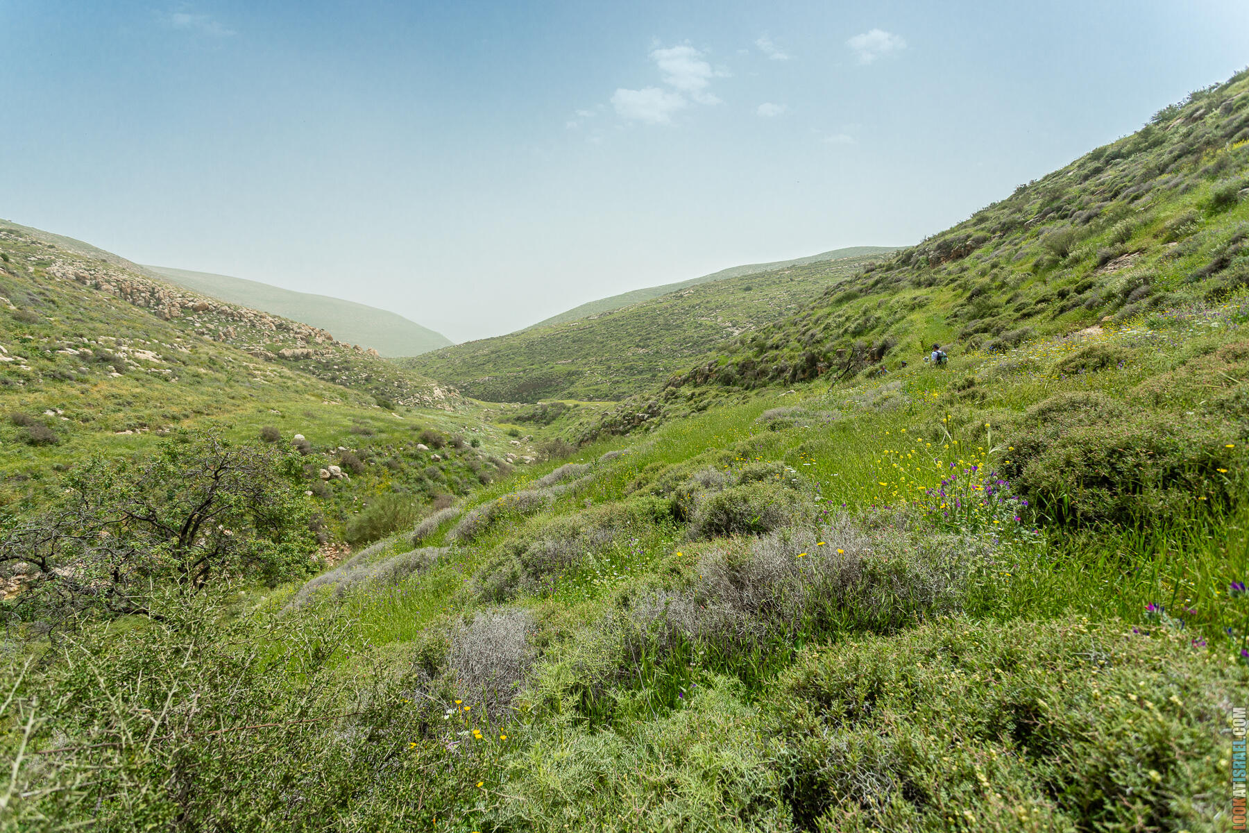 Первые полчаса-час — нормальное самарийское нагорье. Оливки, дубы, жёсткие кустики маквиса. Если бы не Иорданская долина на горизонте, я бы решил, что мы где-то в Галилее.