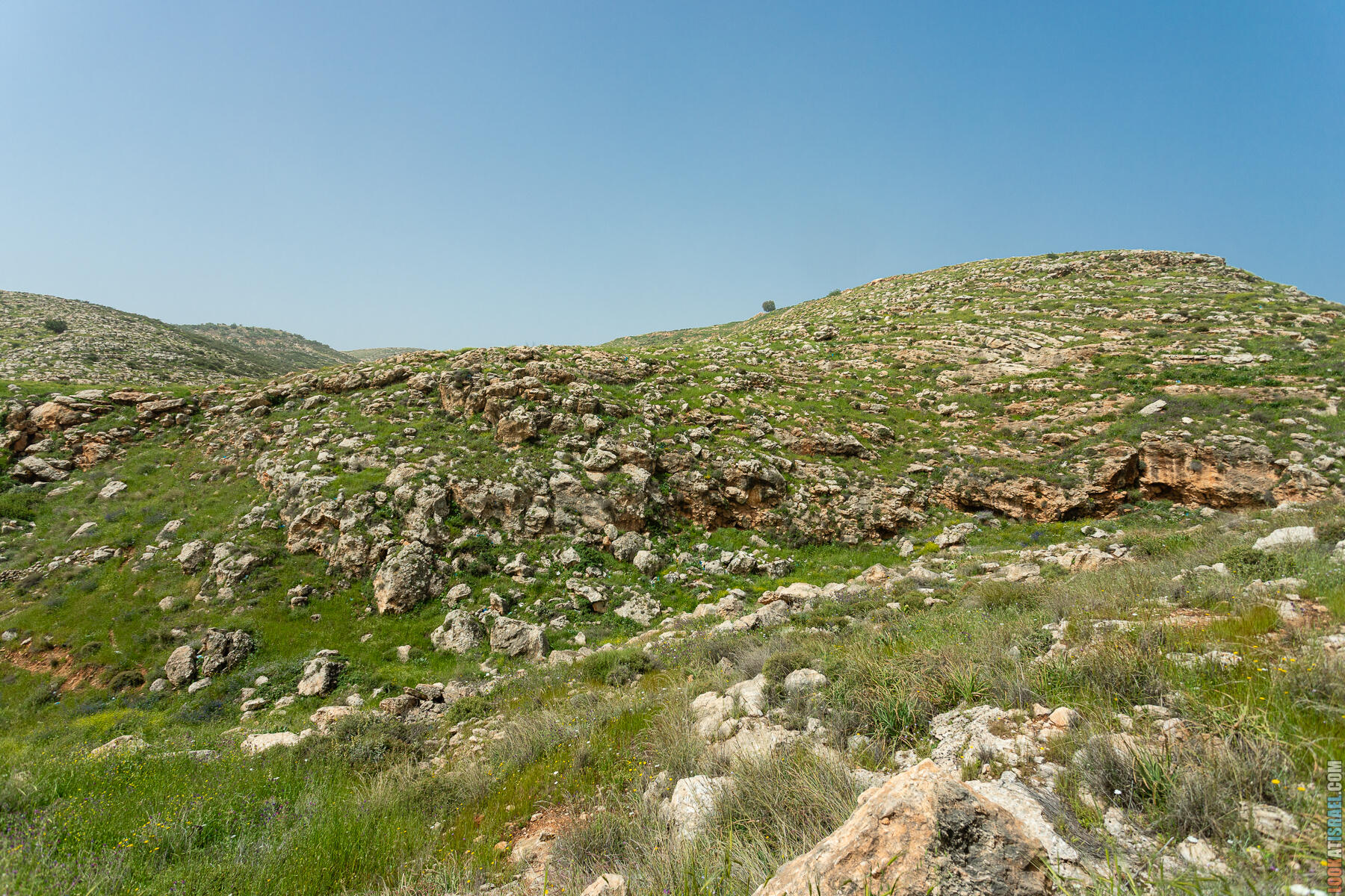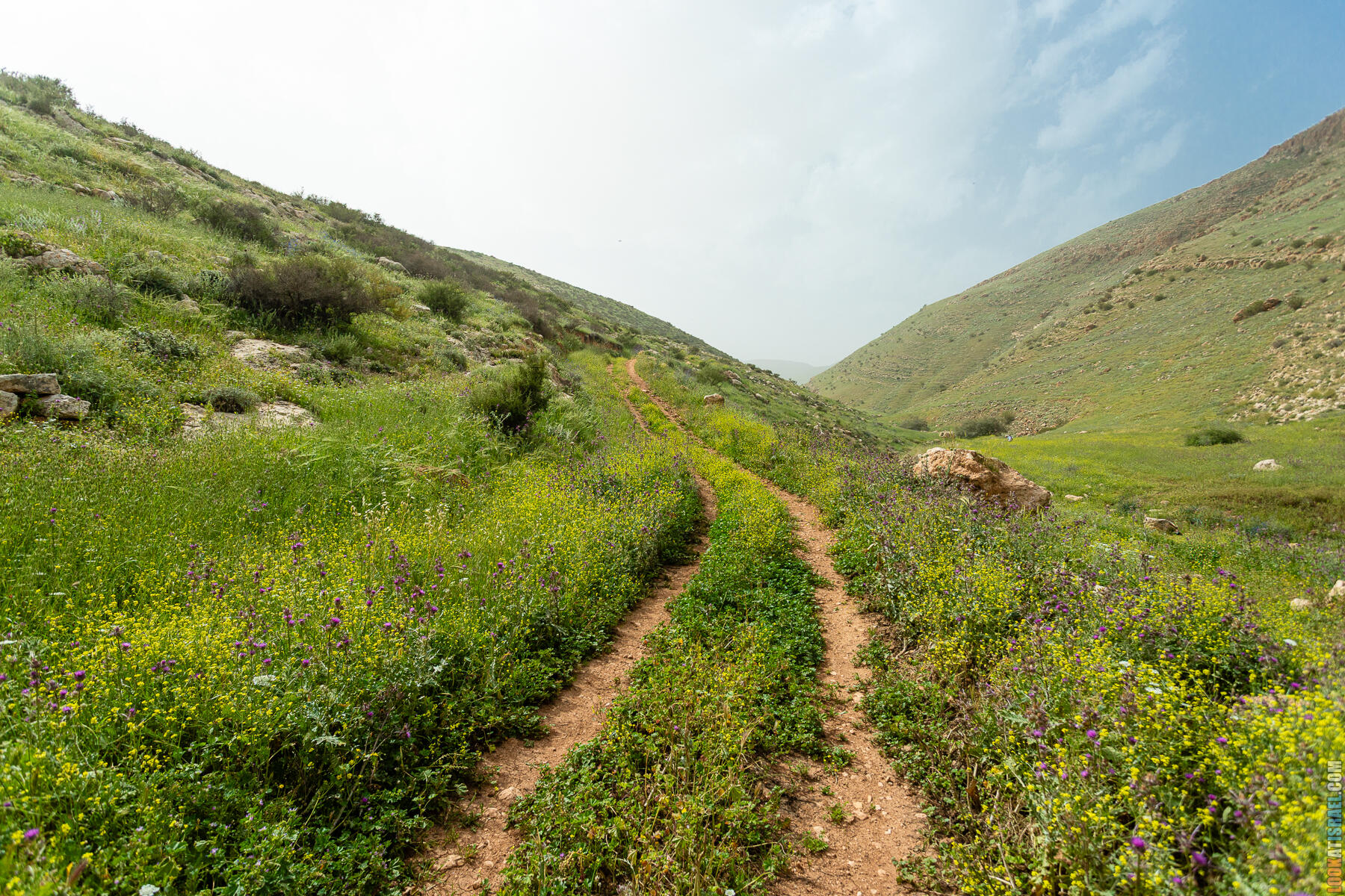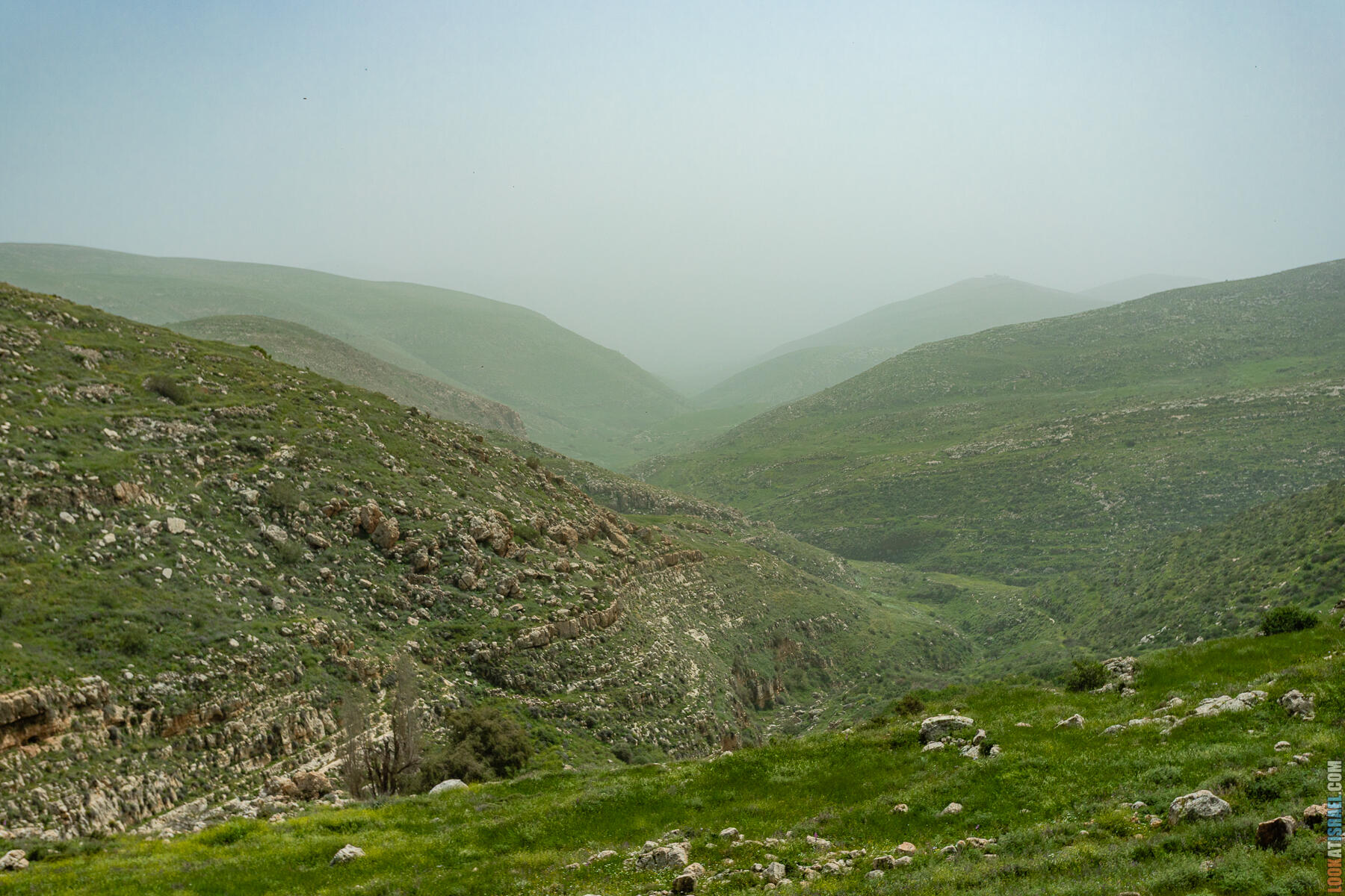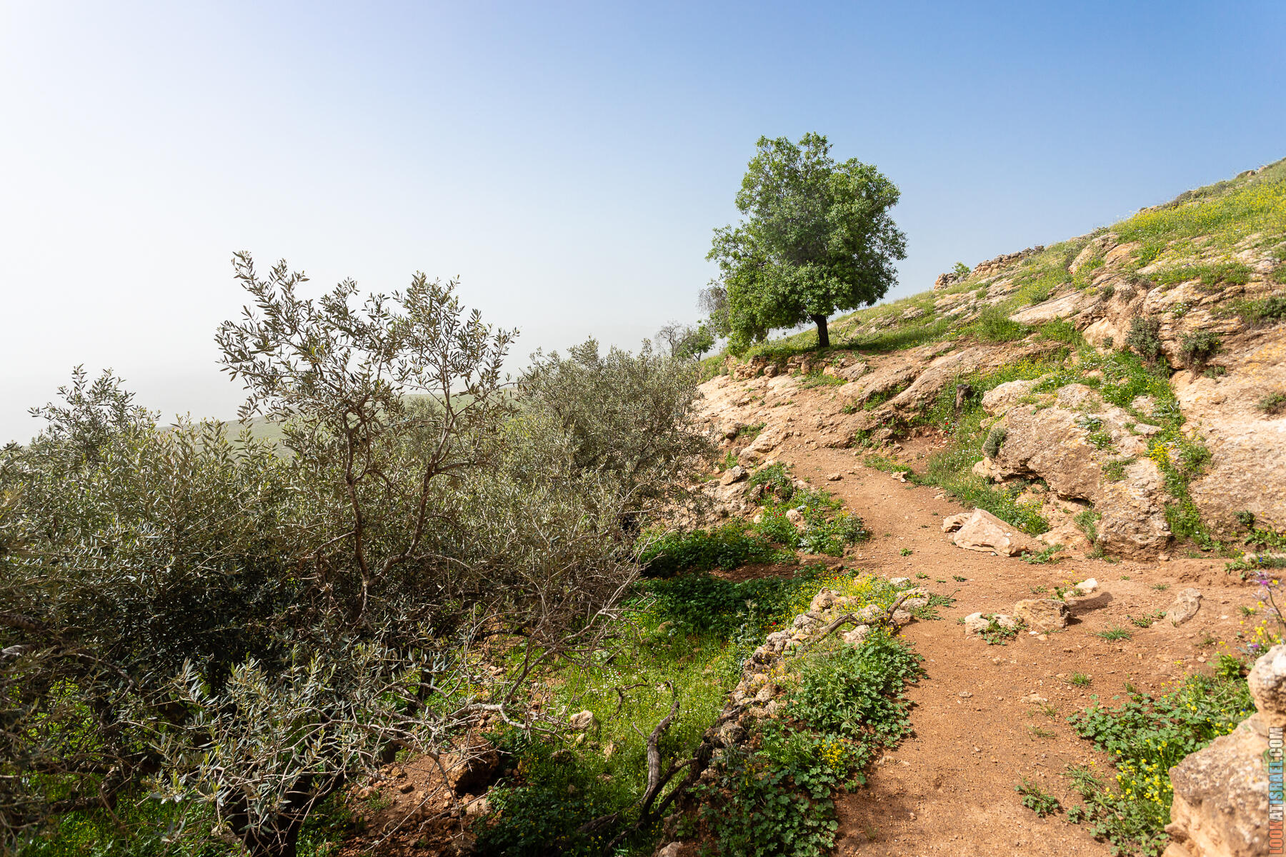 Первые полчаса-час — нормальное самарийское нагорье. Оливки, дубы, жёсткие кустики маквиса. Если бы не Иорданская долина на горизонте, я бы решил, что мы где-то в Галилее.