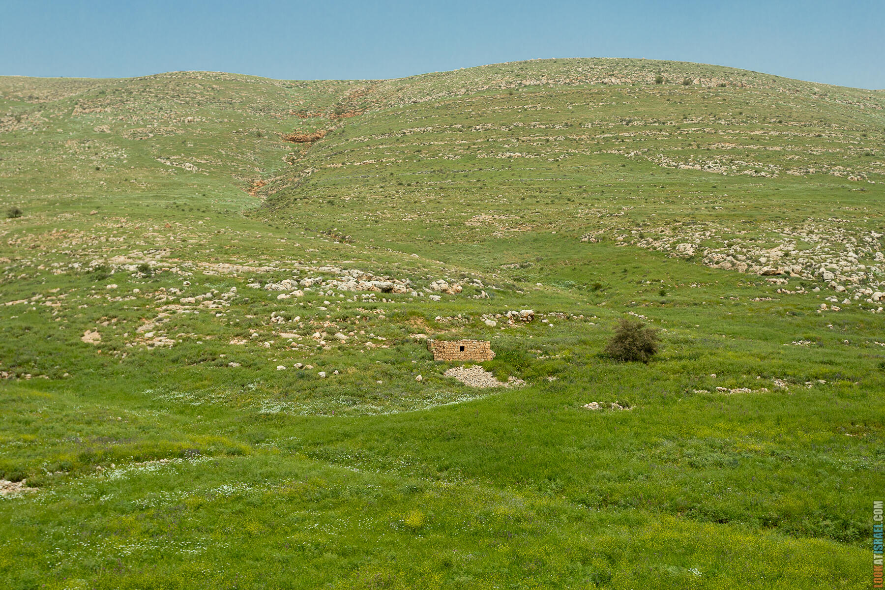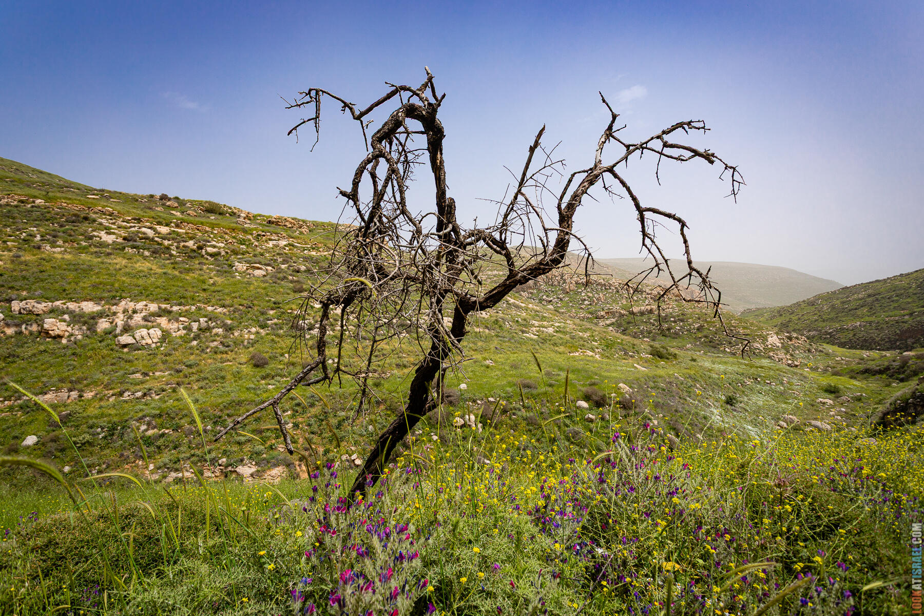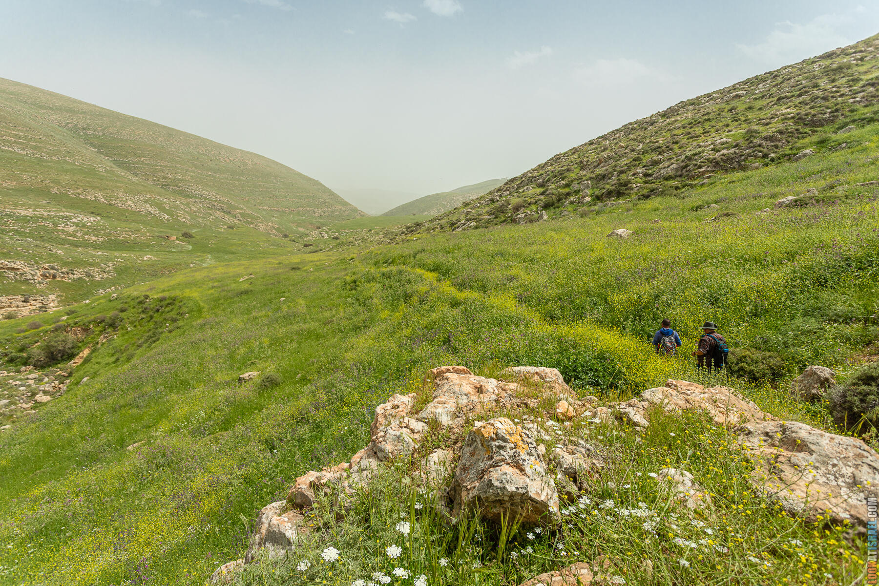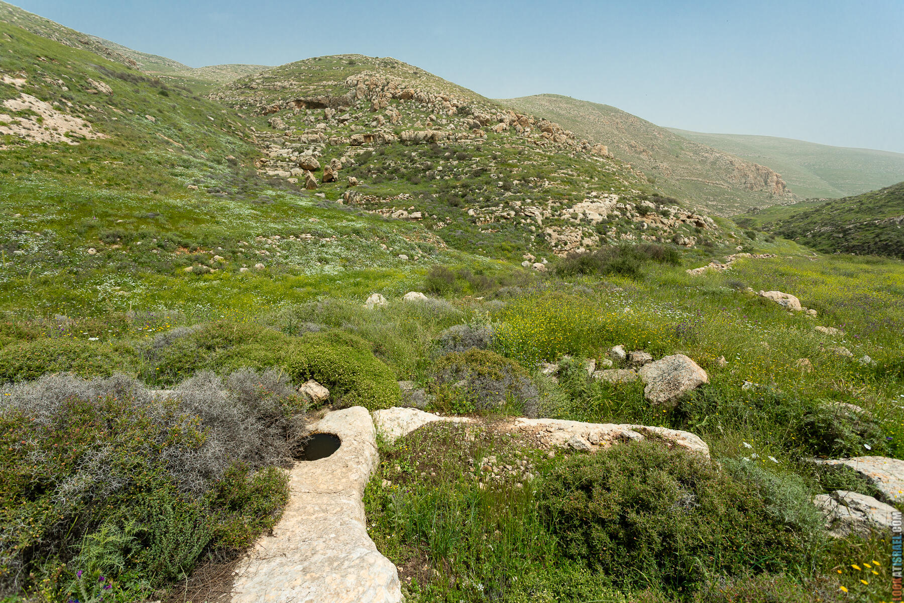 Первые полчаса-час — нормальное самарийское нагорье. Оливки, дубы, жёсткие кустики маквиса. Если бы не Иорданская долина на горизонте, я бы решил, что мы где-то в Галилее.