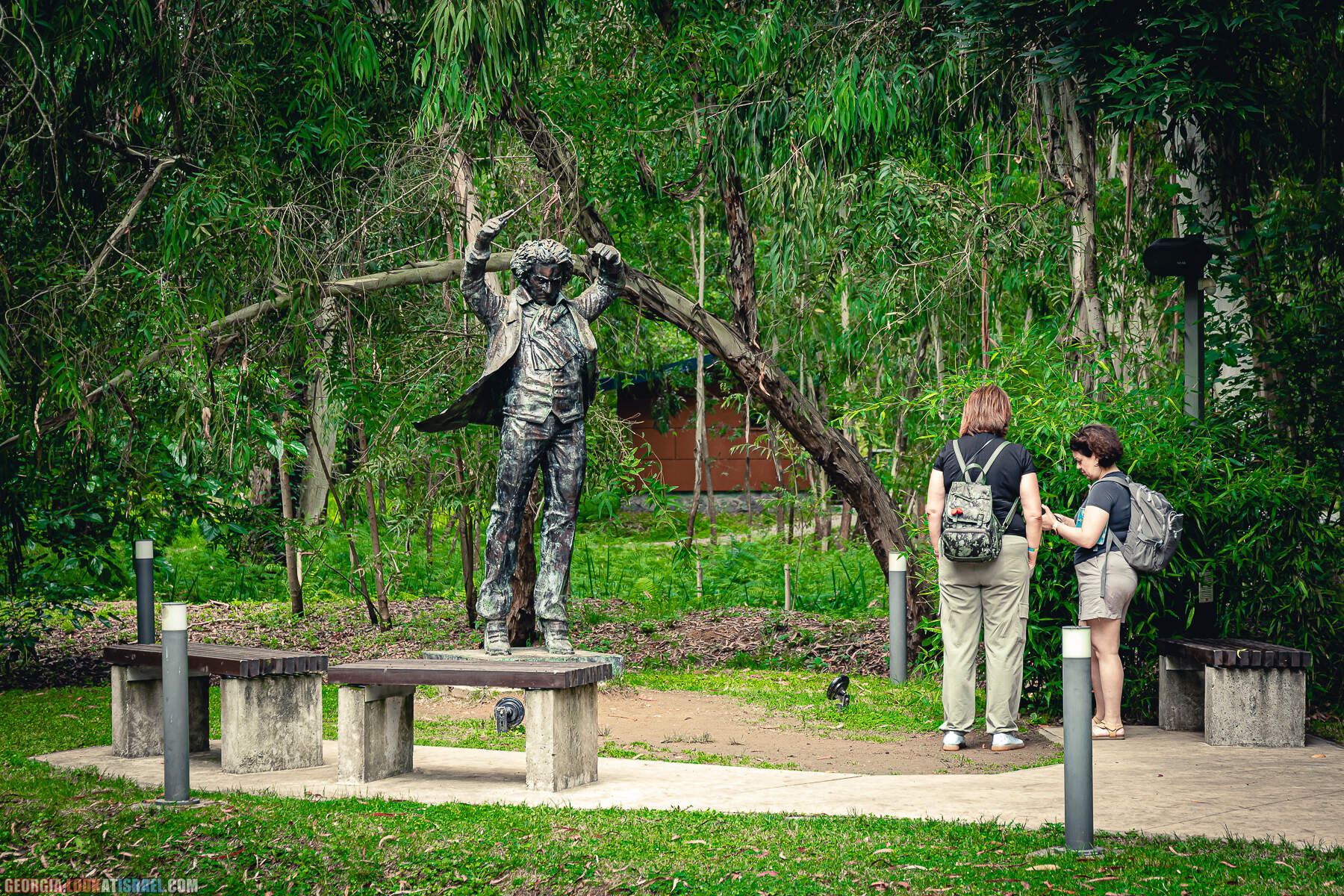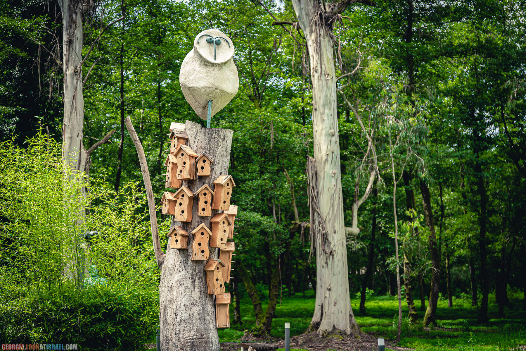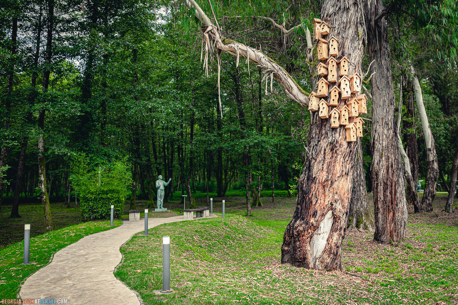 В эвкалиптовой роще стоят 37 скульптур известных грузинских и мировых певцов, композиторов, танцоров.