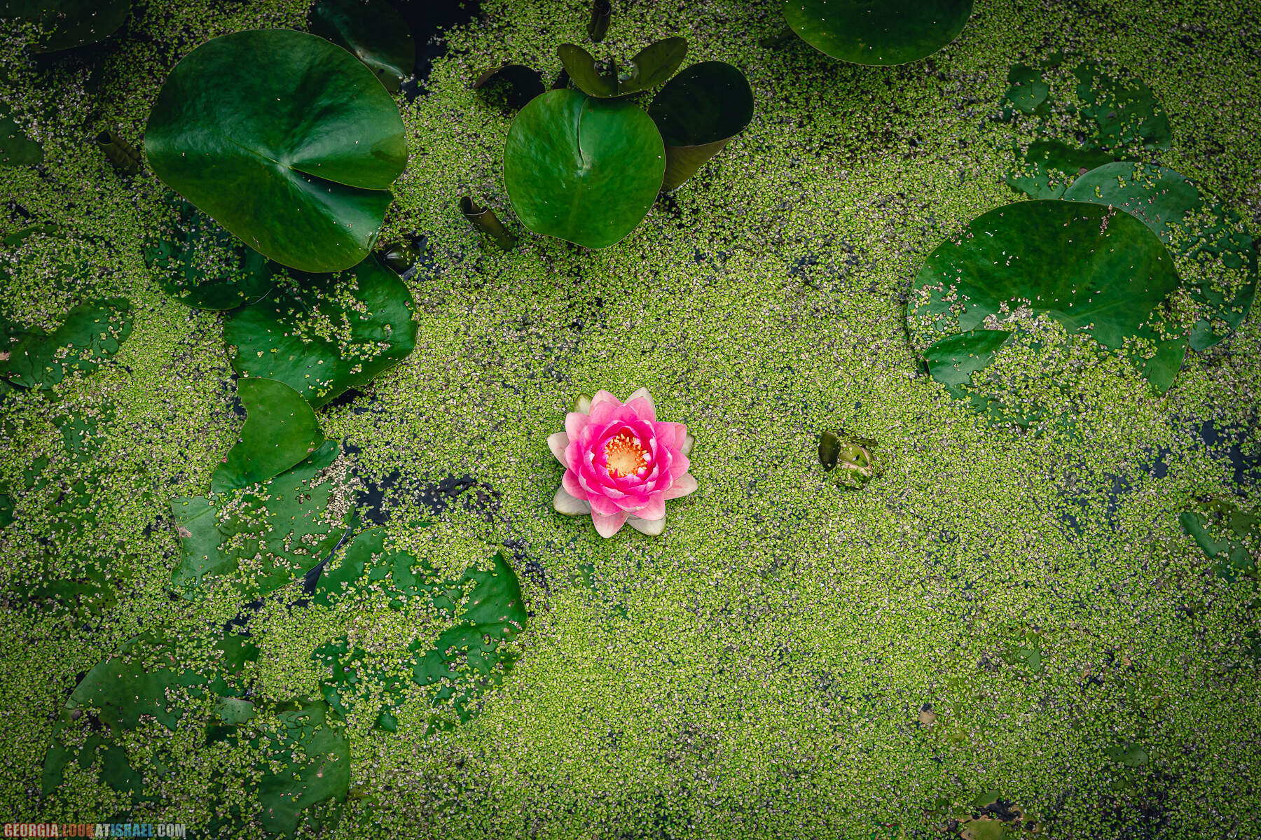Маленьких и уютный. Стоит прямо на цветущем озере.