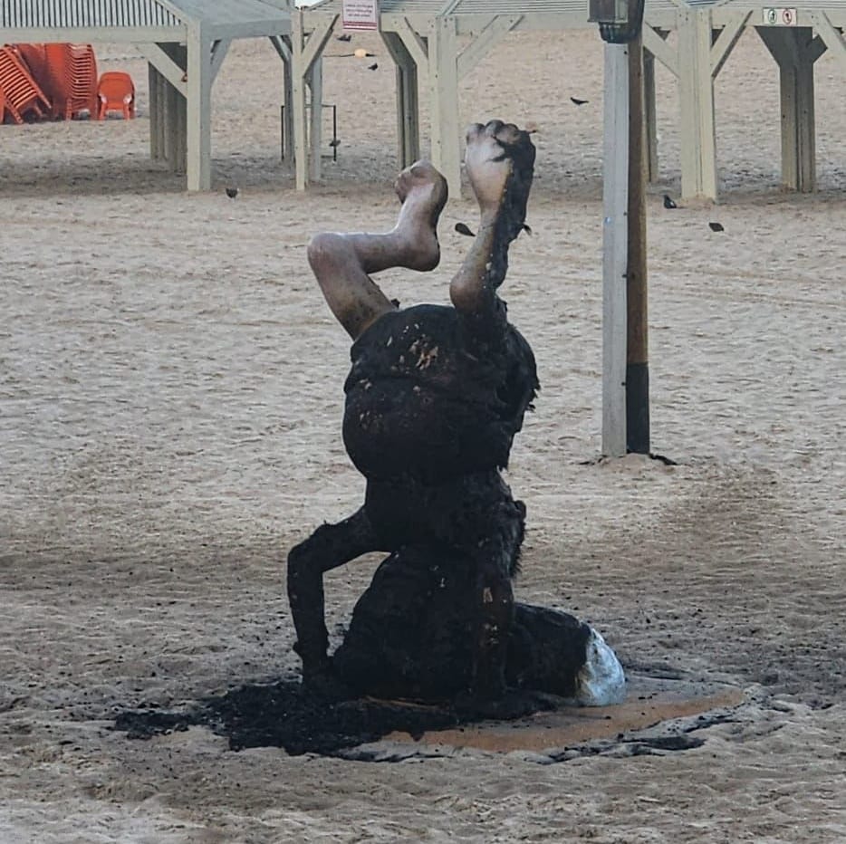 Прибывших в назначенный час в назначенное место журналистов встретил Давид Бен-Гурион. После короткого заплыва в море премьер-министр опустил голову на песок, сделал толчок ногами и… встал на голову!