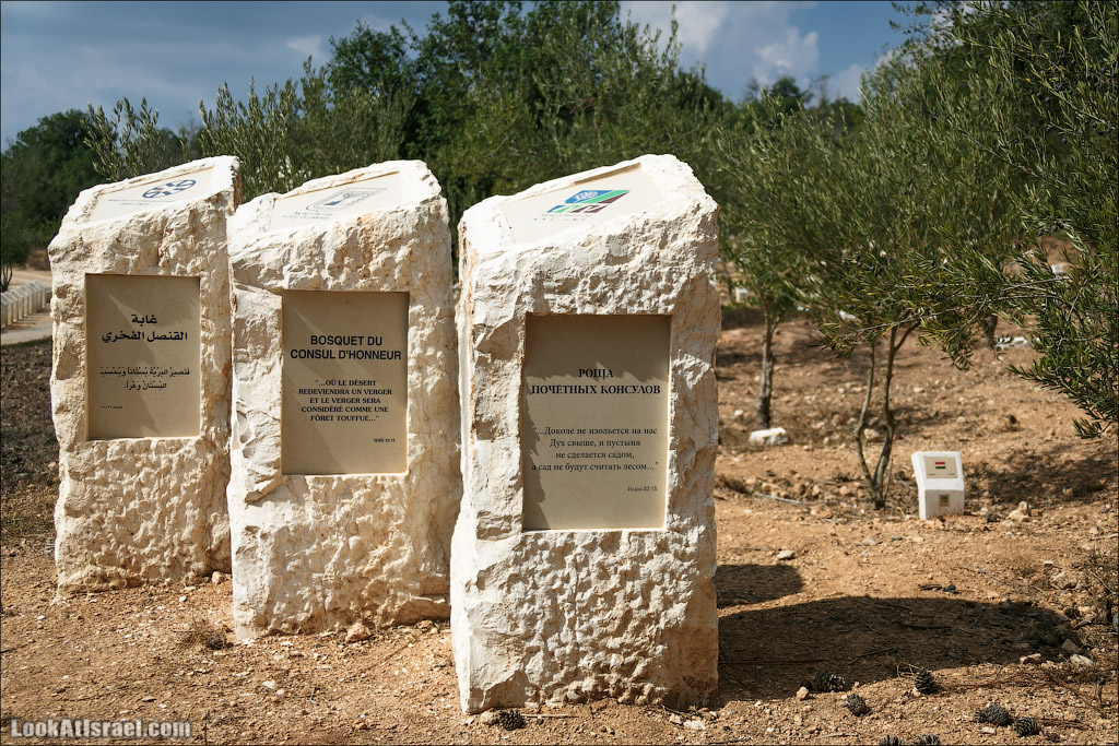 В лесу Аминадав, в 5 минутах пешей прогулки от мемориала «Яд Кеннеди» находится еще совсем молодая «Роща почетных консулов». Здесь посажены 93 оливковых дерева. Возле каждого из них установлена табличка с флагом страны, чей консул нашел в своем плотном графике время и приехал чтобы посадить саженец.