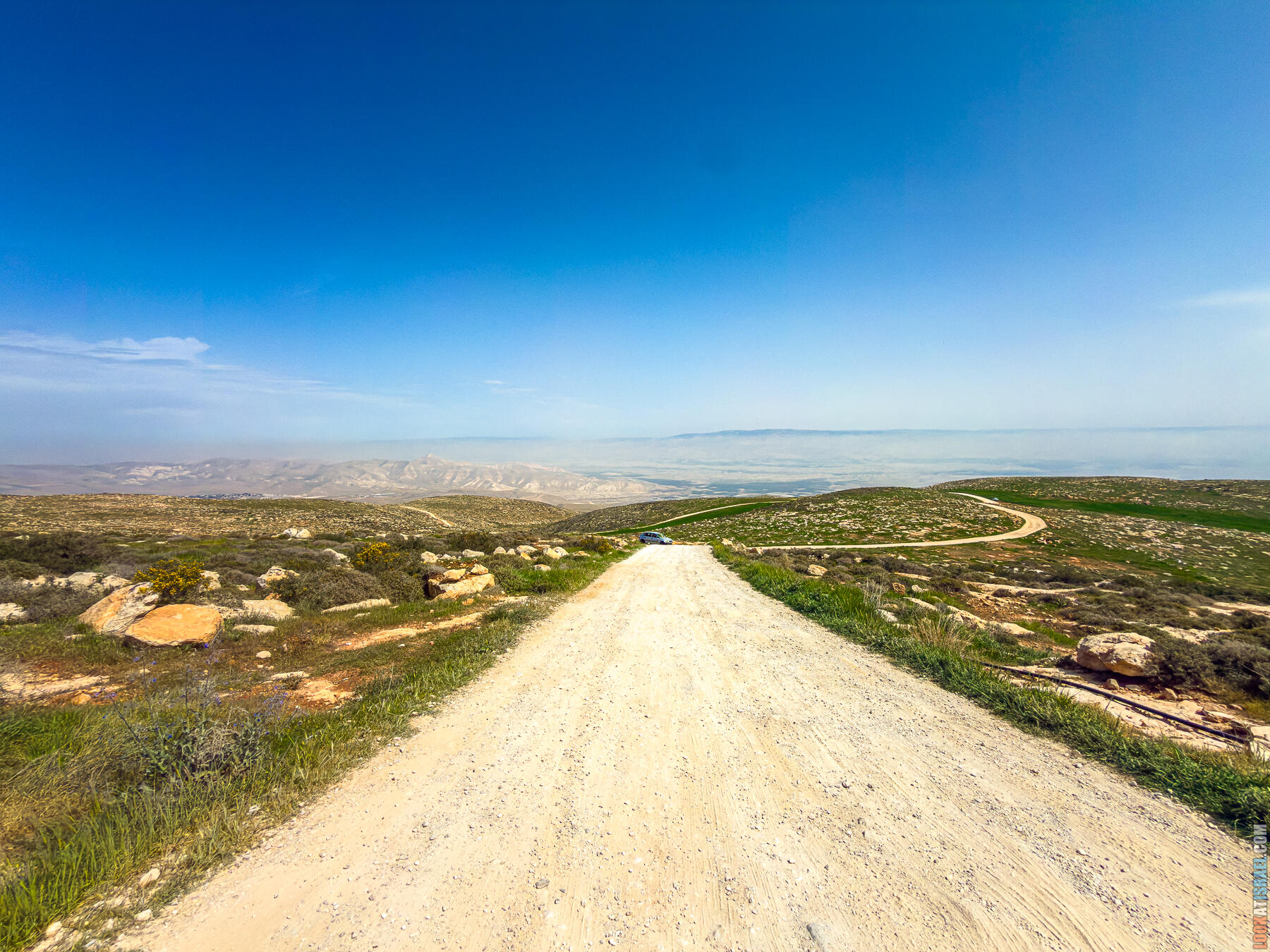 Дорога от Пецаэля сама по себе стоит поездки. Горы Самарии справа, долина Иордана слева, и ощущение что едешь по шву между двумя мирами.