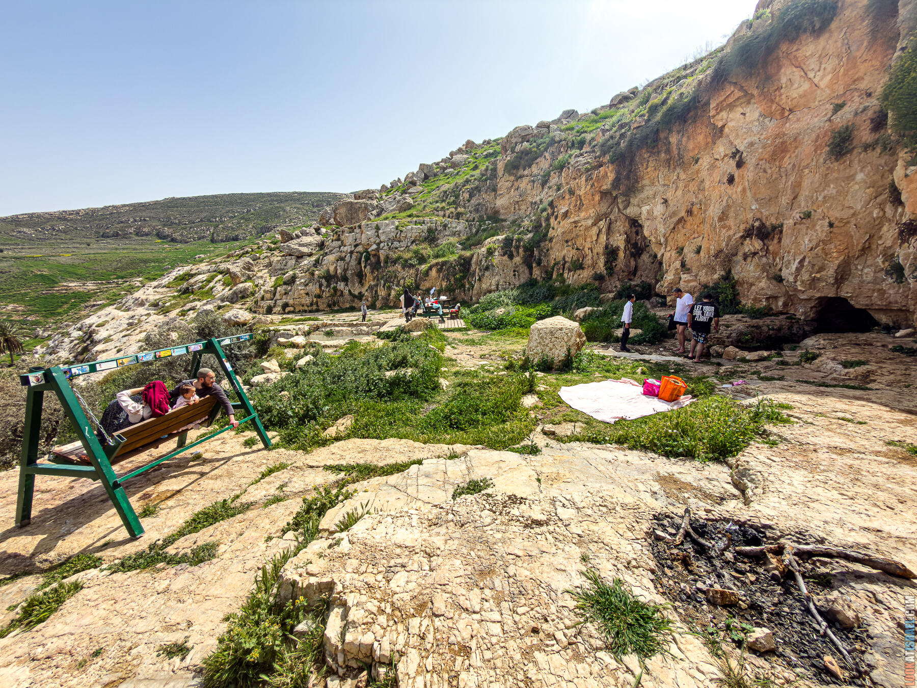 Снаружи — широкая площадка над ущельем нахаль Рашаш.