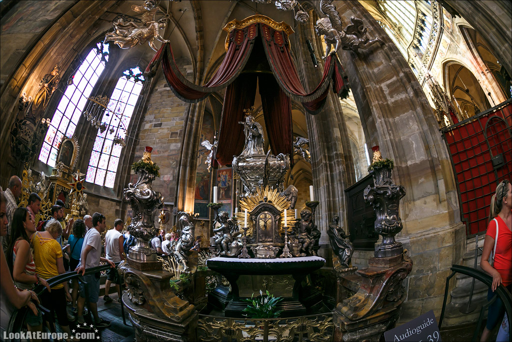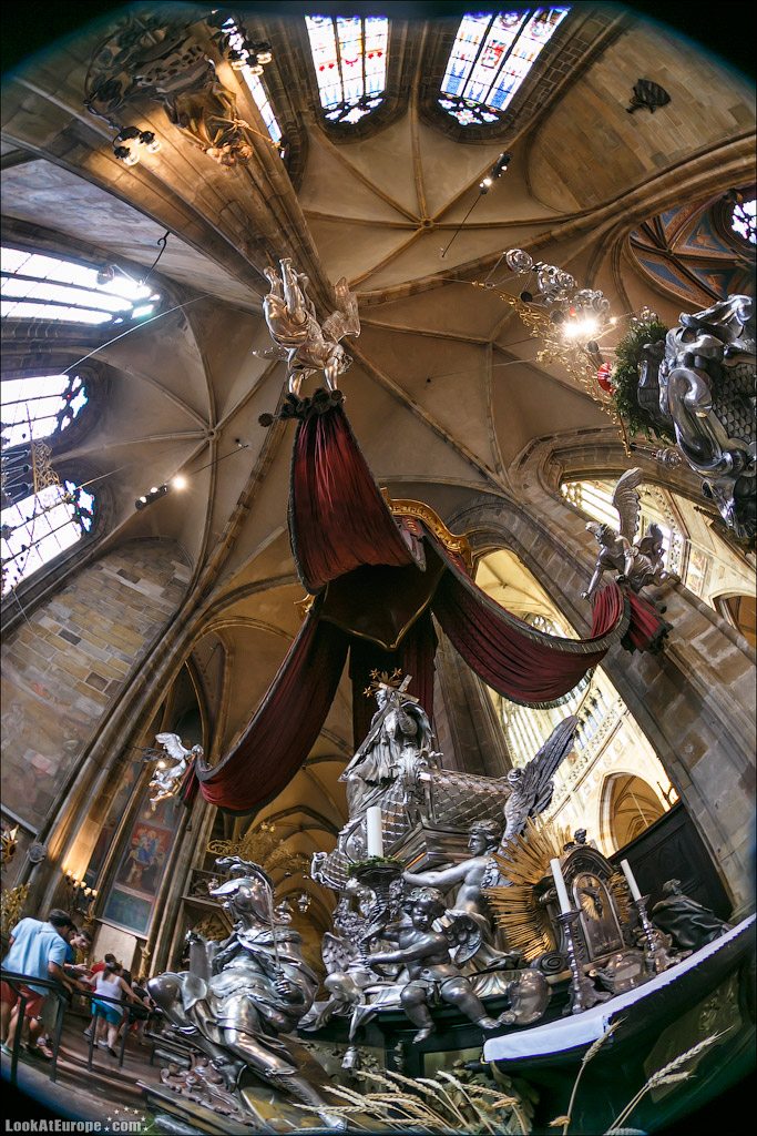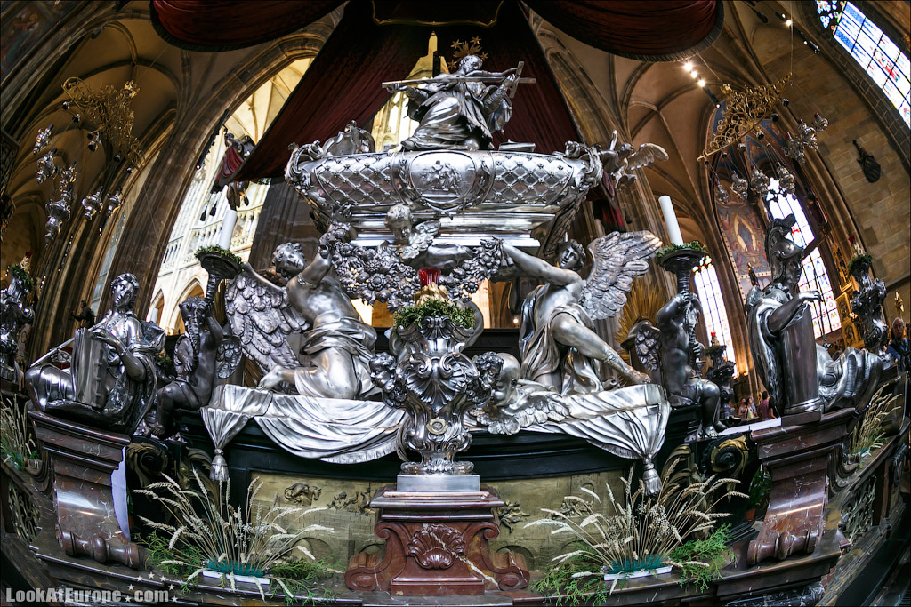 Надгробие Яна Непомуцкого, который являлся культовой фигурой Контрреформации, изготовлено из двух тонн чистого серебра, а в отдельных местах покрыто платиной и золотом. Шедевр создан в 1733-173 ведущим венским архитектором Фишером фон Эрлахом.