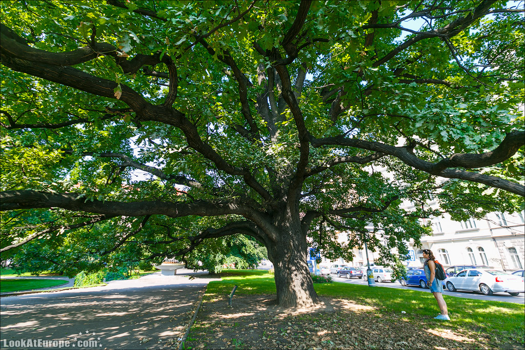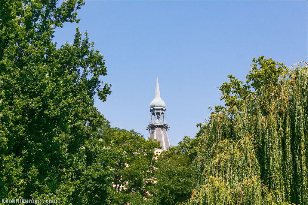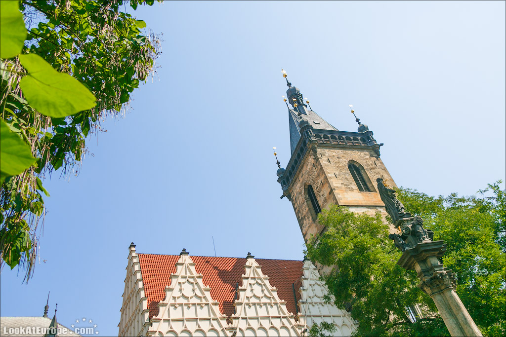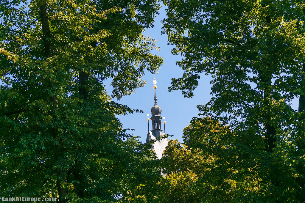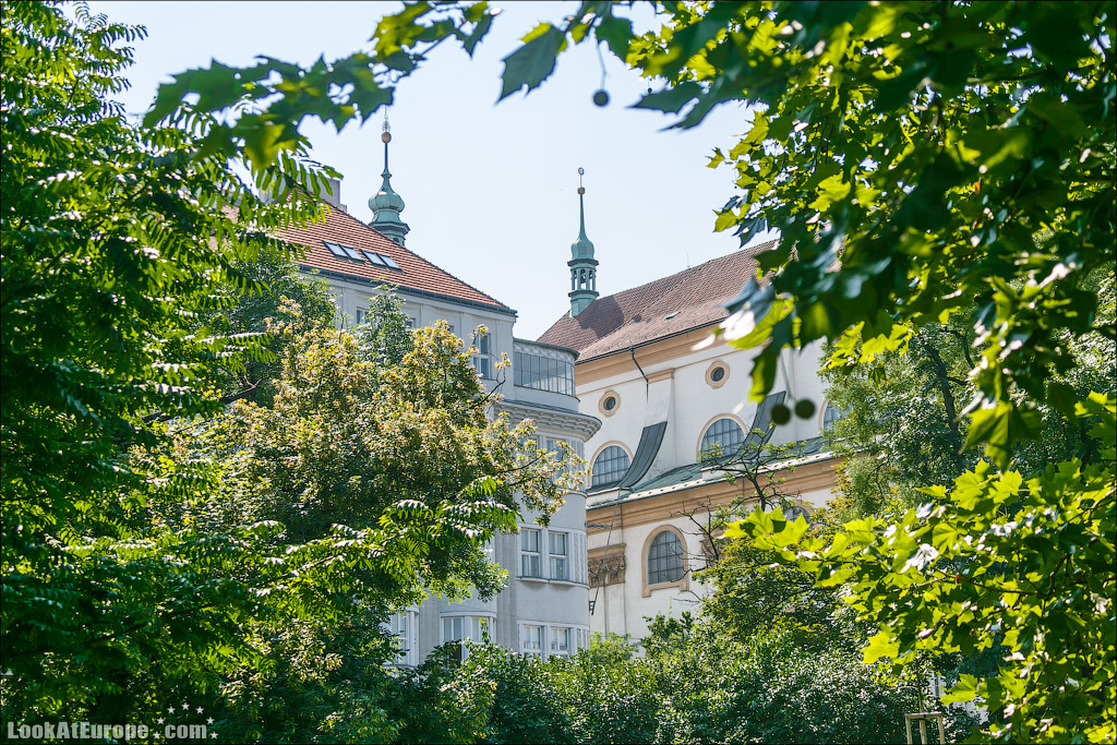 39. Идем дальше и среди деревьев уже виден шпиль Новоместской ратуши