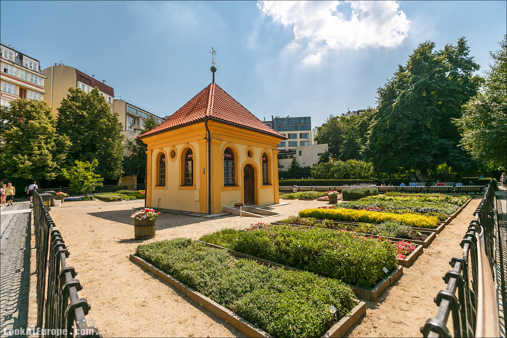 46. Францисканский сад был заложен еще в средние века при монастыре кармелитов. Затем в 1604 году он стал принадлежать ордену францисканцев. В этом саду монахи выращивали фрукты, овощи и травы для собственных нужд. Весь сад построен в стиле раннего барокко. В самом центре сада вы найдете беседку, которая когда-то была часовней. Вокруг беседки растут грядки с ароматическими травами. Тут же расположен храм Девы Марии, который заложил Карл IV в честь своей коронации.