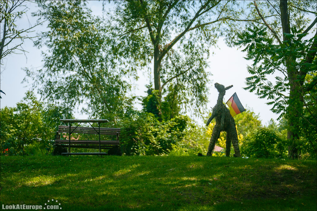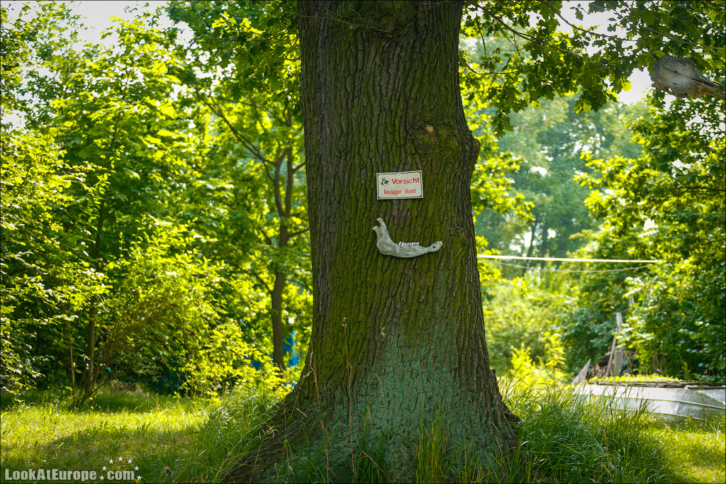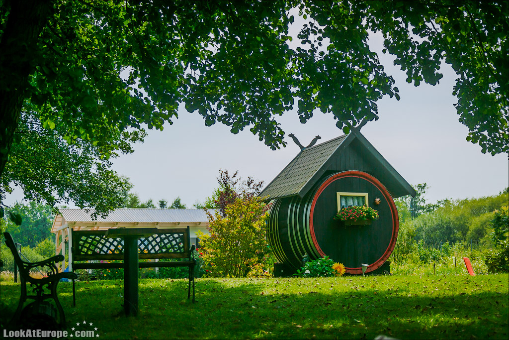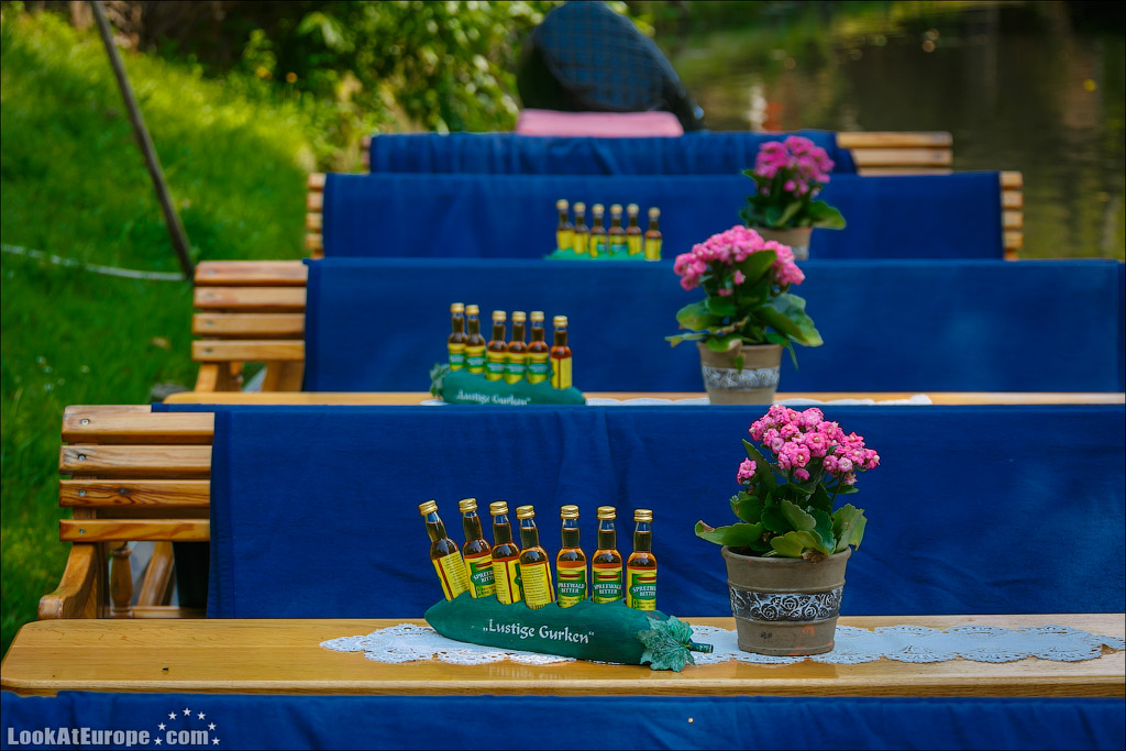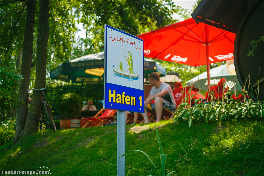 Возле некоторых домов оборудованы импровизированные миникафе… Это тоже своеобразный бизнес местных жителей. В одном из кафе остановились и мы где взяли бутерброды, сделанные из домашнего хлеба, и несколько видов знаменитых Spreewald Gurken