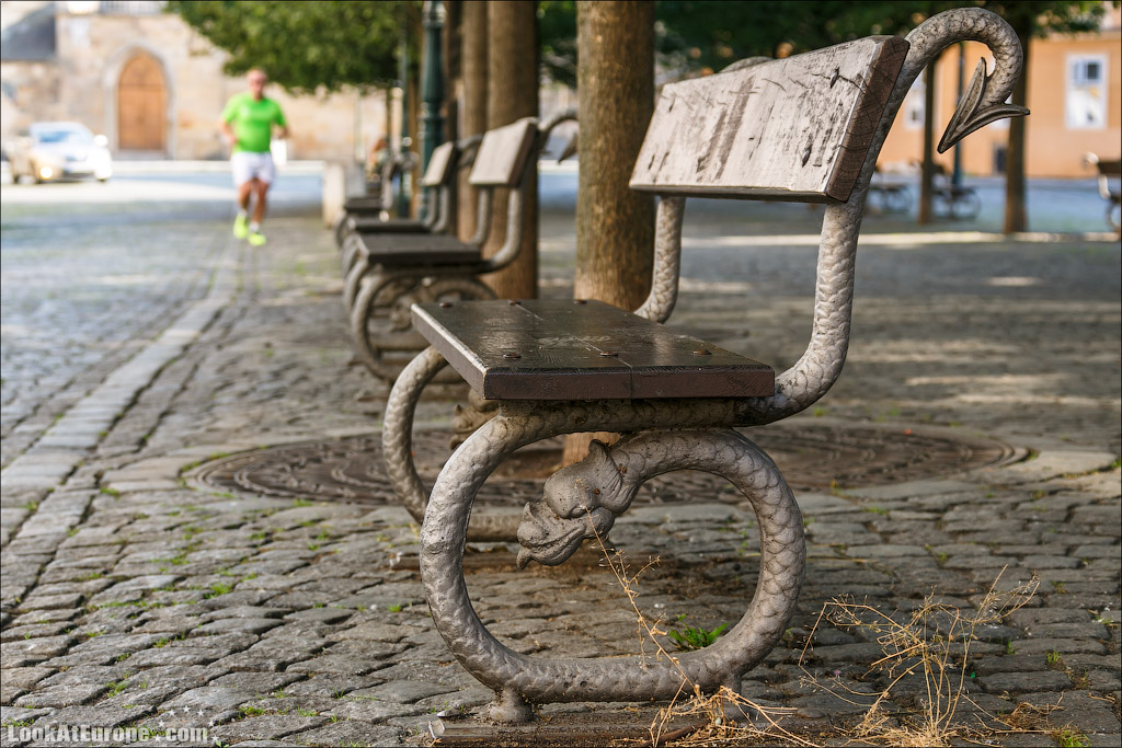 3. На площади у отеля скамейки, свитые змеями