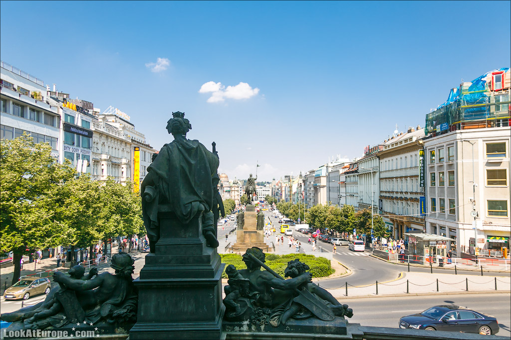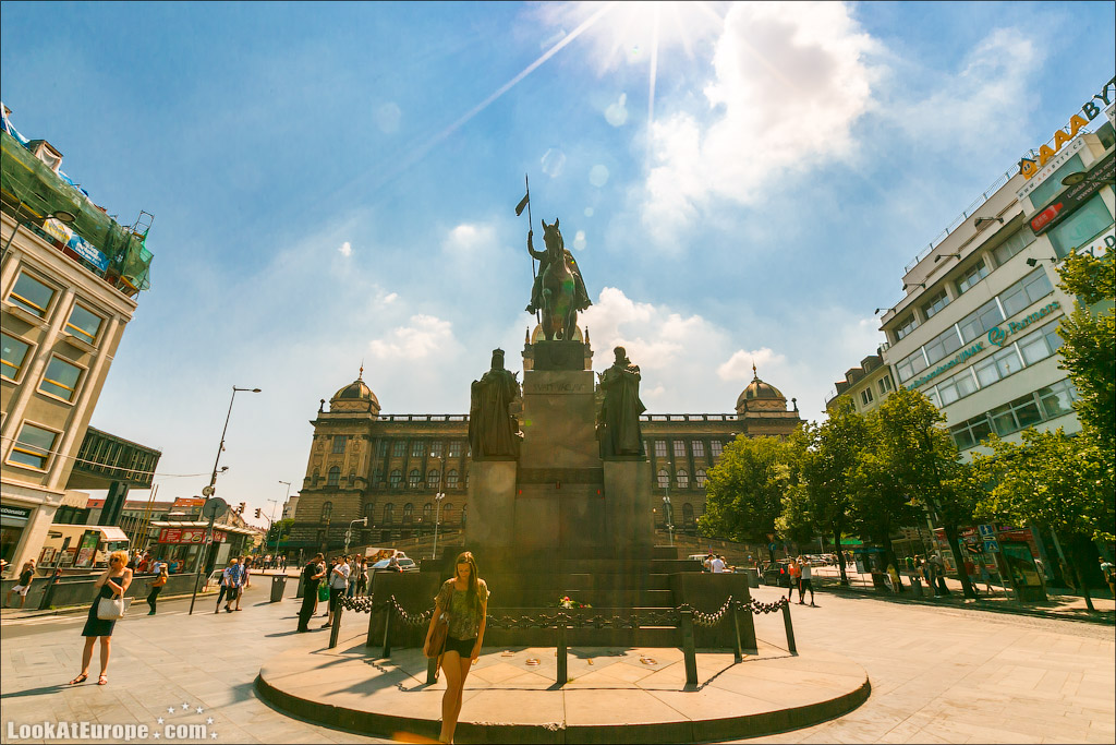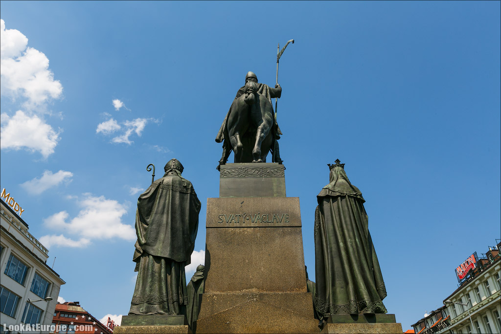 25. Свое название площадь, больше похожая на широкий бульвар, получила в честь Святого Вацлава. Он грациозно восседает на коне, сжимая правой рукой копье, рядом с ним находятся четверо чешских святых. На переднем плане размещены Святой Прокоп и Людмила (бабушка Вацлава).