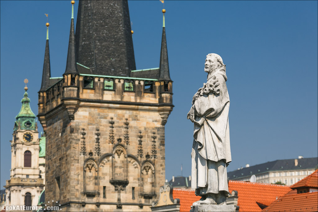 14. Малостранская мостовая башня — высокая западная башня Карлова моста. Из всех трёх башен она была построена последней — во времена правления короля Йиржи из Подебрад (60-е годы XV века).