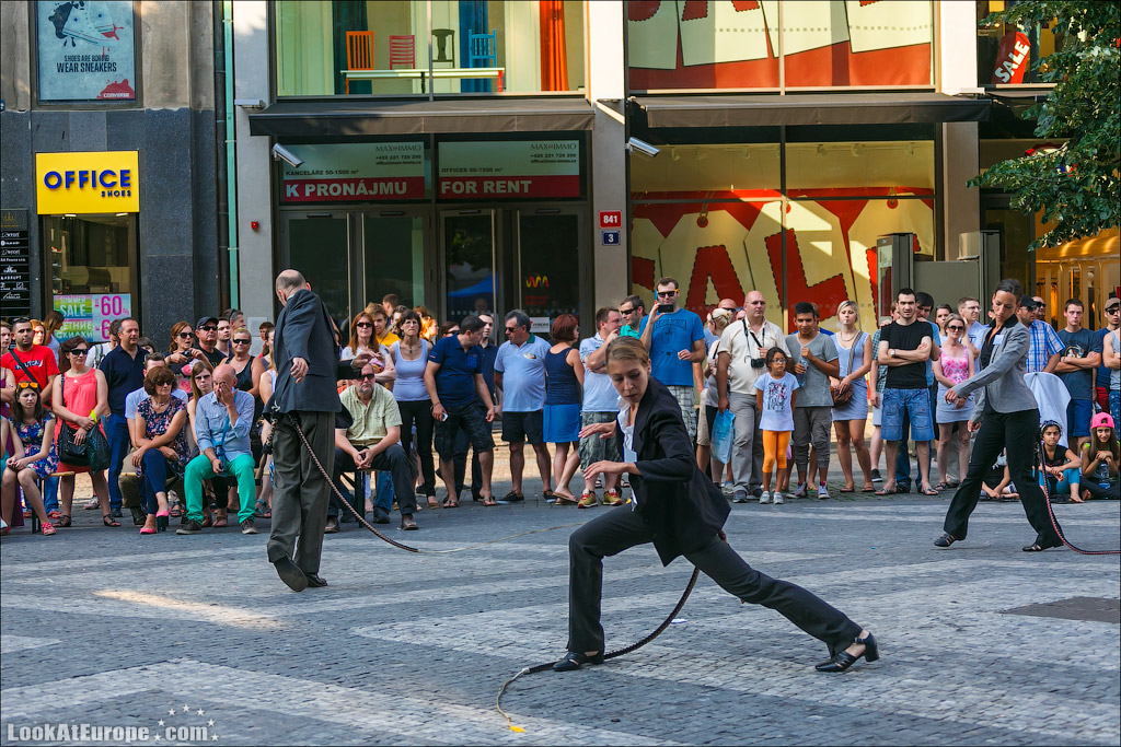 40. И каждый день здесь проходят различные выступления и концерты. В первый день мы попали на перфоманс, когда два парня и две девушки в строгих костюмах и с серьезными лицами танцевали с плетками-хвостами. На второй день на том же месте начиналось огненное выступление.