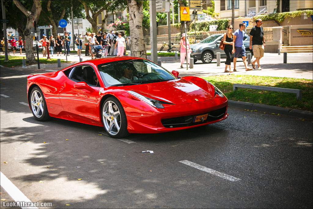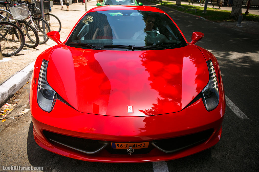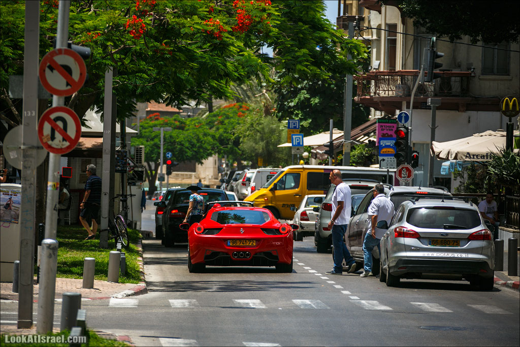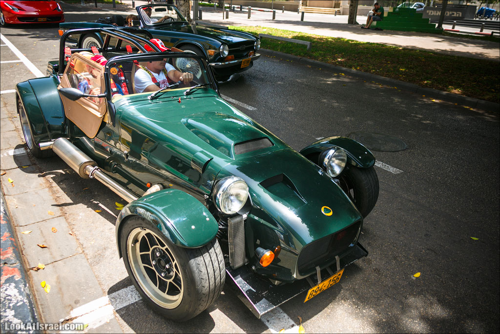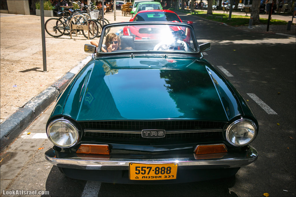 На улицах Тель Авива можно встретить все что угодно. Например вот так буднично и обыденно разъезжают по улицам Тель Авива Феррари, спортивные Триумфы TR6 и Lotus‘ы