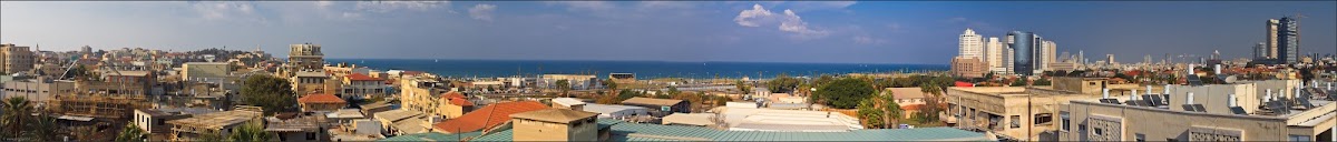 А если с крыши «Бейт Иммануель» посмотреть на запад, то открывается вооооооооооот такой панорамный вид на Тель Авив — Яффо