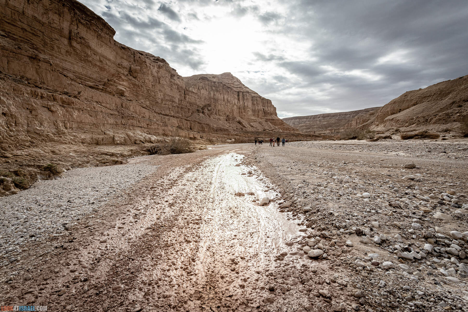 На протяжении всего пути по руслу нам встречались следы недавно прошедших тут дождей — земля все еще была мокрая и глинистая.