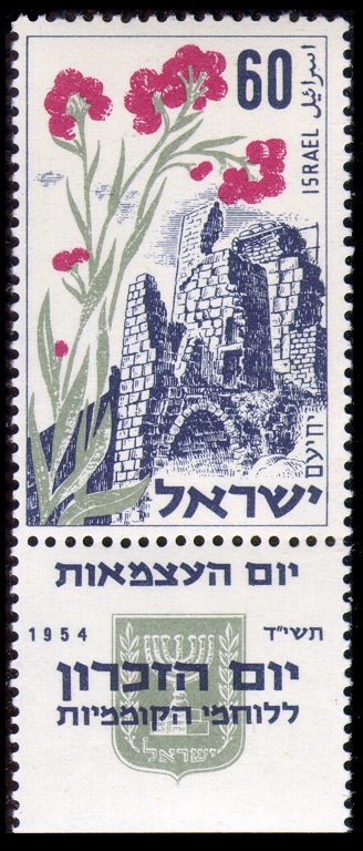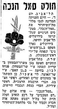 В 1950 году женщина по имени Мириам Троп сделала макет плаката ко Дню независимости, на котором появился цветок «Кровь маккавеев». К сожалению, изображения этого плаката не сохранилось, поэтому достоверно неизвестно какой именно цветок был на нём нарисован. Дело в том, что в то время название «Кровь маккавеев» обычно давалось другому цветку, который позже был назван горицветом (адонисом) — דמומית. Именно в форме адониса-горицвета был сделан значок, который с 1954 года вручали инвалидам Армии обороны Израиля.