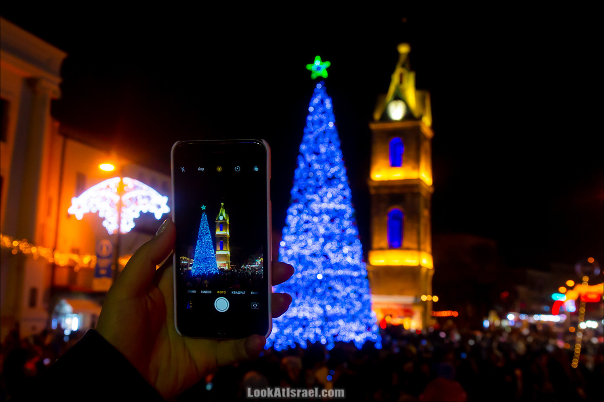 Рождественское зажжение ёлки 2019 в Яффо | LookAtIsrael.com - Фото путешествия по Израилю Вчера состоялось праздничное зажжения огней на рождественской ёлке в Яффо. Старожилы говорят, что это была самая грандиозная церемония за все годы. В этом году даже перекрыли въезд на площадь часов, ага.