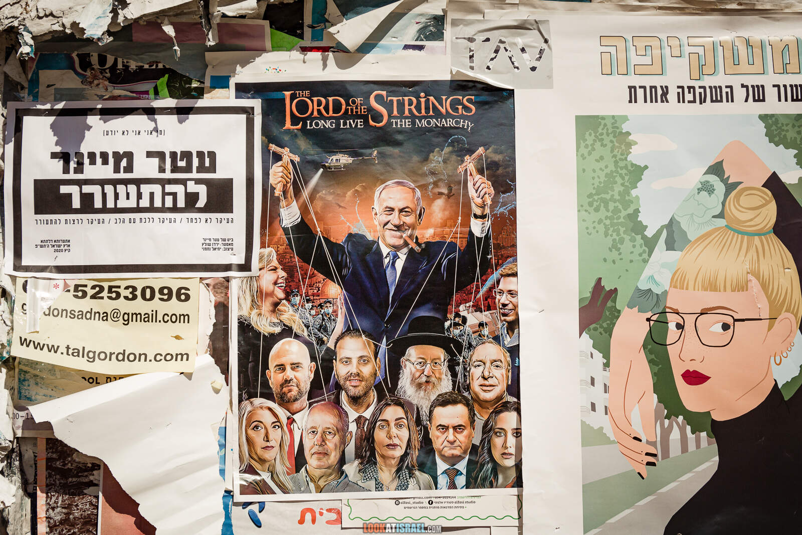Следы бушевавшей накануне демонстрации Черных флагов против Биби (премьер-министр Израиля)