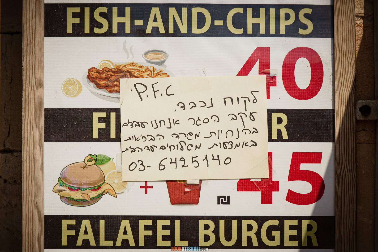 А расположенный в 10 метра ресторан доставит ваш заказ в любою точку Тель Авив или же к фонтану (именно об этом и написано на табличке)