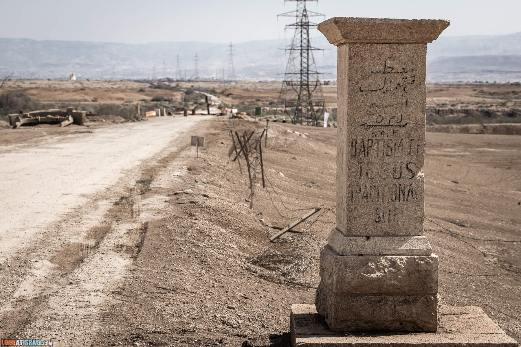 Со времен, когда эта часть еще была под властью Иордании остался этот дорожный камень, указывающий путь к Каср эль-Яхуд — месту крещения Христа.