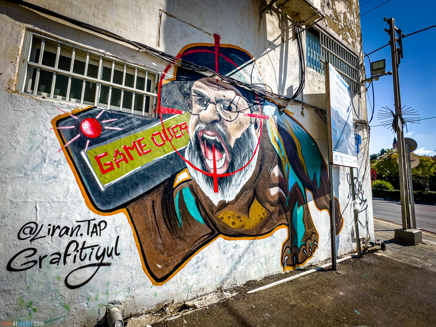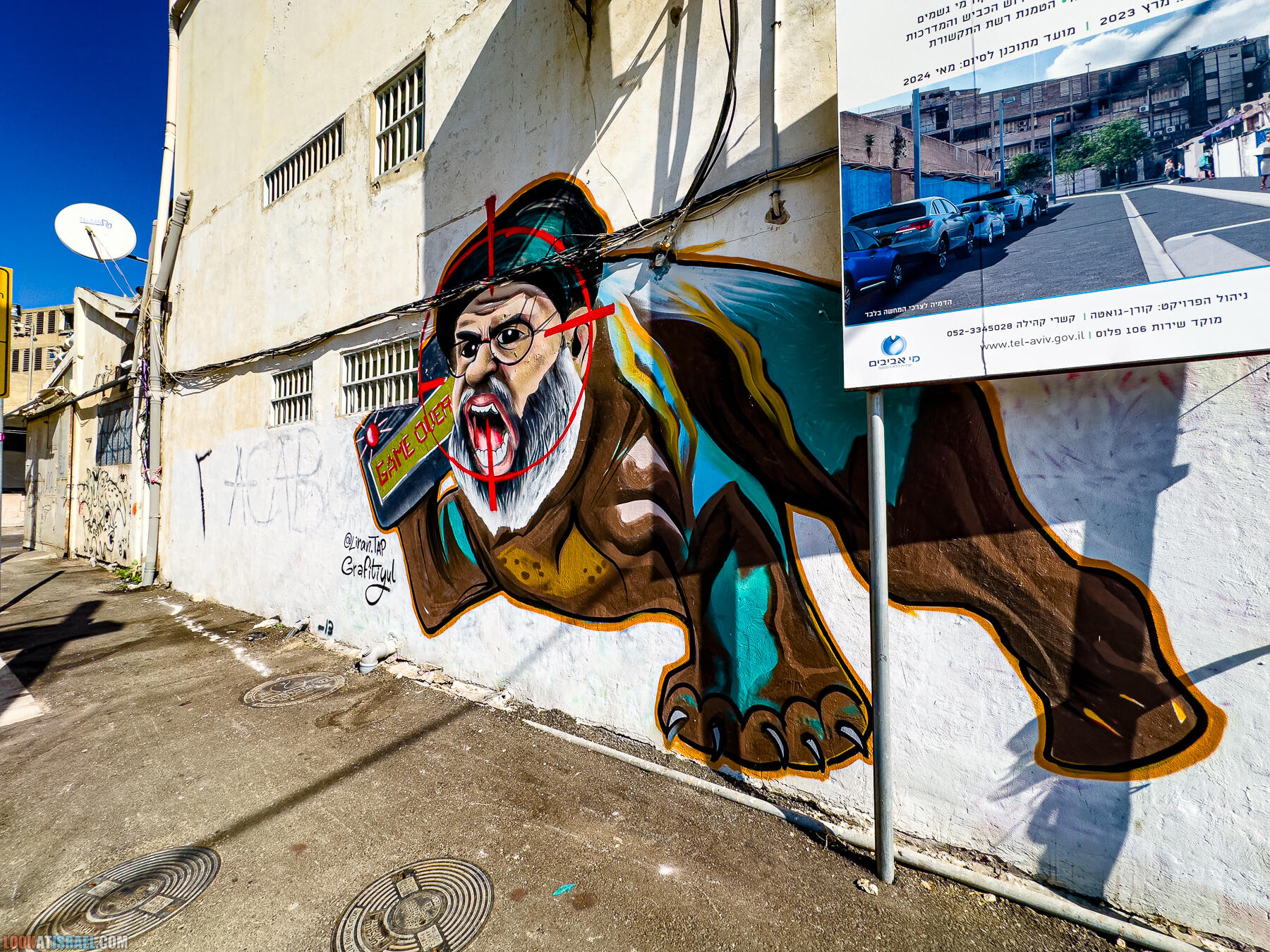 Попалась мне на просторах «бесовского интернета» фотография граффити с Насруллой. Естественно, что я захотел заиметь такой стритарт к себе в коллекцию граффити Тель-Авива. Но вот вопрос — где находится эта работа и кто ее автор? Как найти?