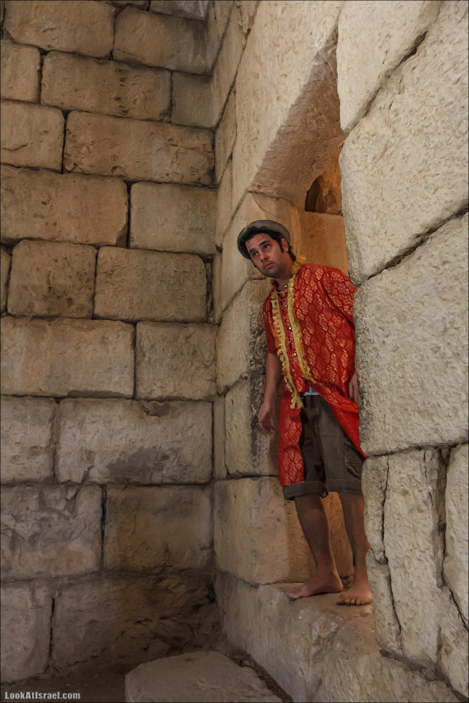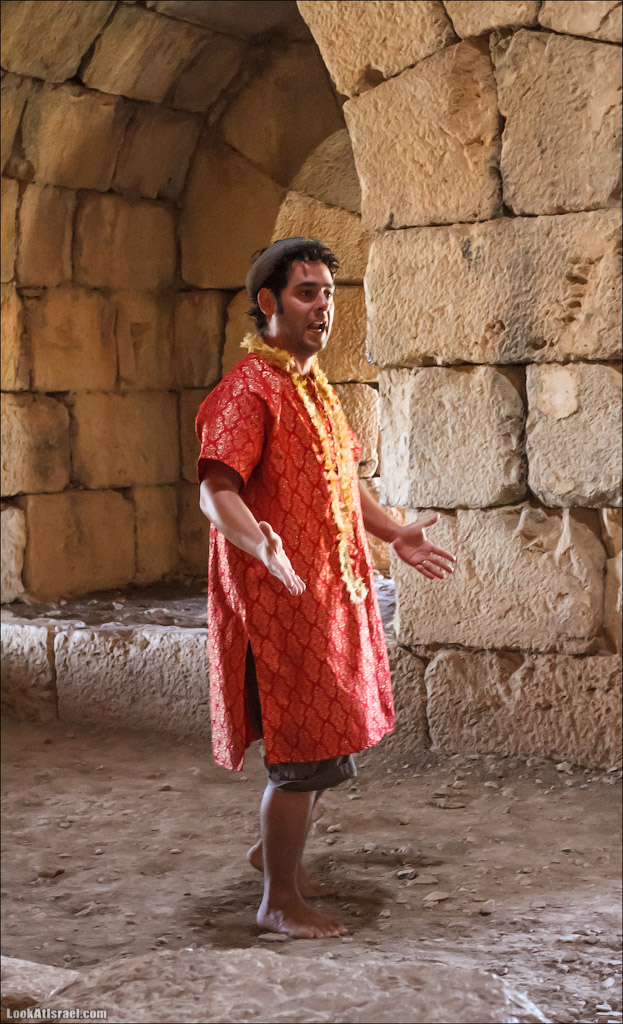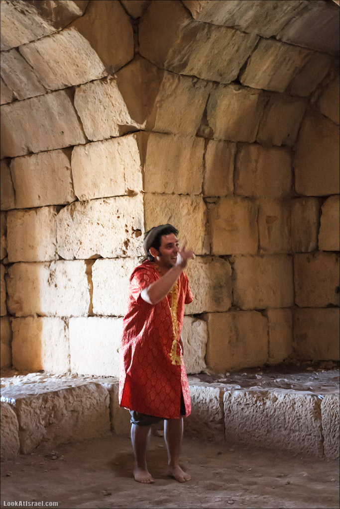 5. Так как это был Суккот, то KKL организовал там театрализованные бесплатные экскурсии для всех посетителей. Пока гид рассказывал о каком либо строении в крепости, или историческом факте из жизни крепости, неожиданно появлялся персонаж из той временной эпохи и разыгрывал сцену тех давних времен. Было очень интересно и неожиданно.
