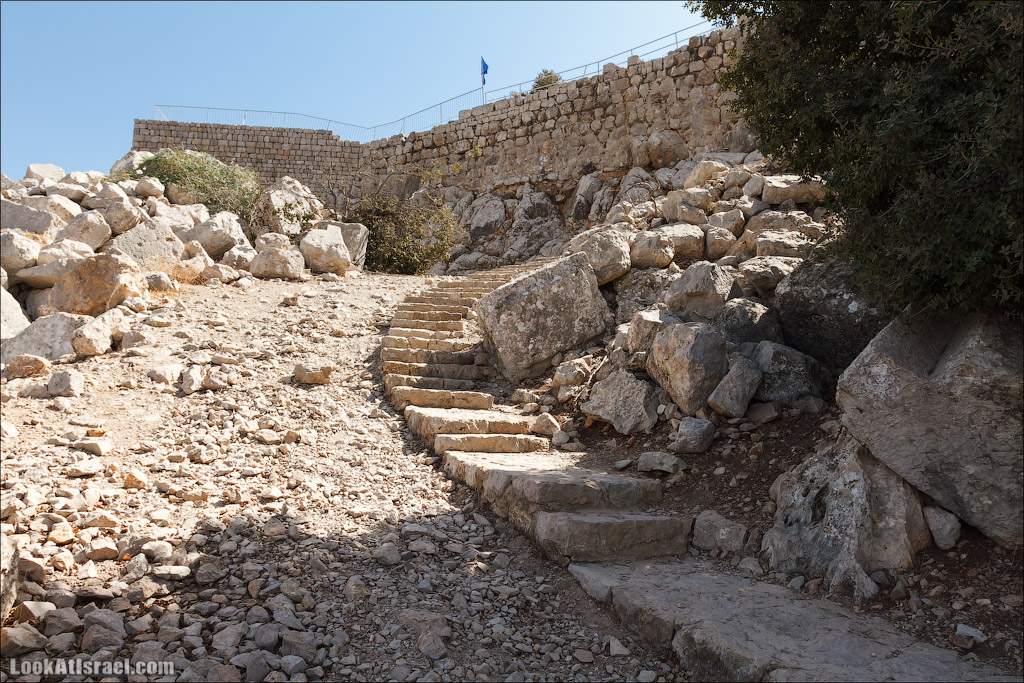 10. Крепость стоит на отдельной горке над крутым берегом реки Саар, которая отделяет Голаны от массива горы Хермон и называется по-арабски вади Накеб.