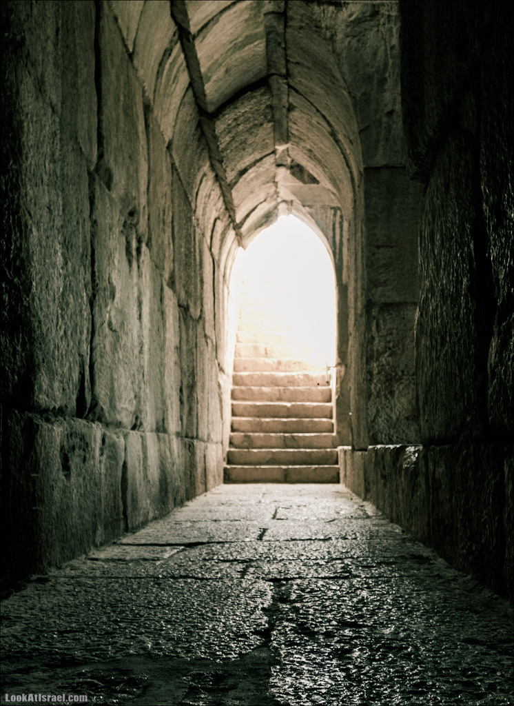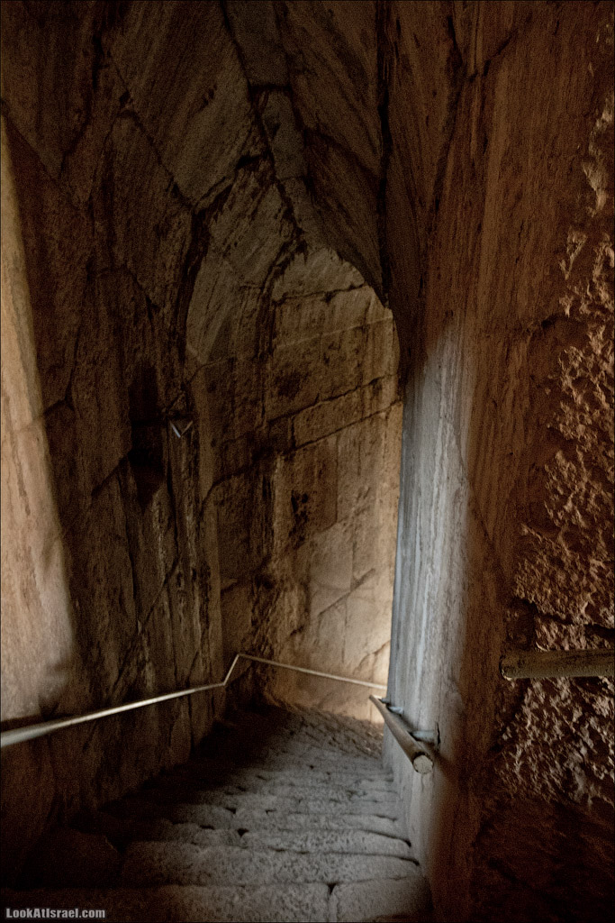 53. Из этой башни ведет ныне открытый тайный ход наружу, за крепостные стены, ход, построенный во времена Билика из мощных камней, которым не повредили даже землетрясения. Такой ход называют «потерна» и для его строительства использовались фигурные блоки весом до 38 т. (смотрите фотографии 7, 8, 9, 10)