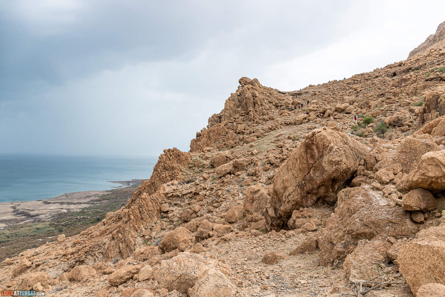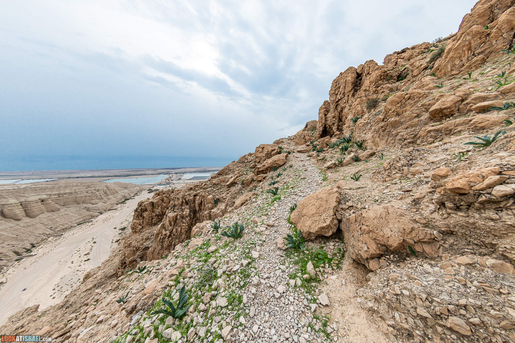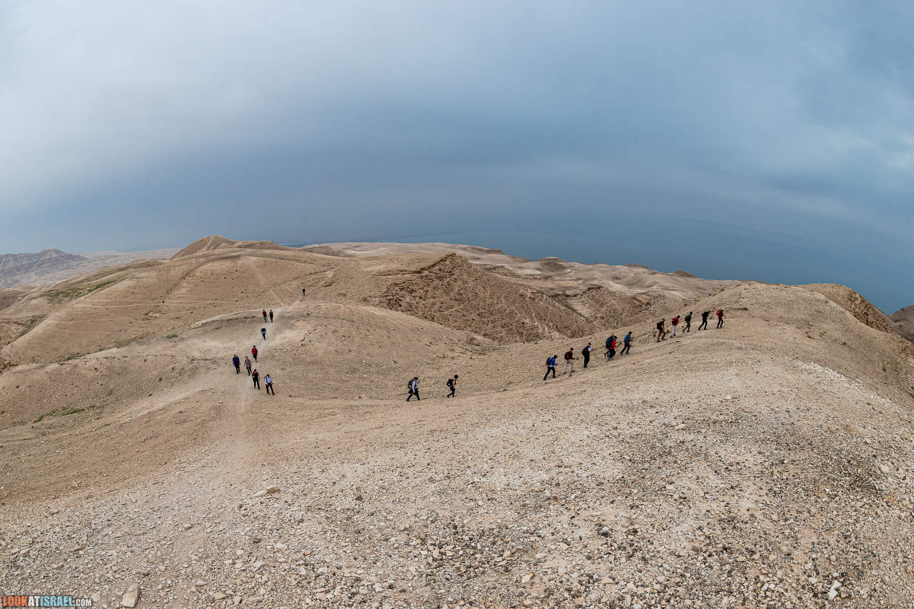 После очень короткого перерыва начинаем спуск назад к Мертвому морю