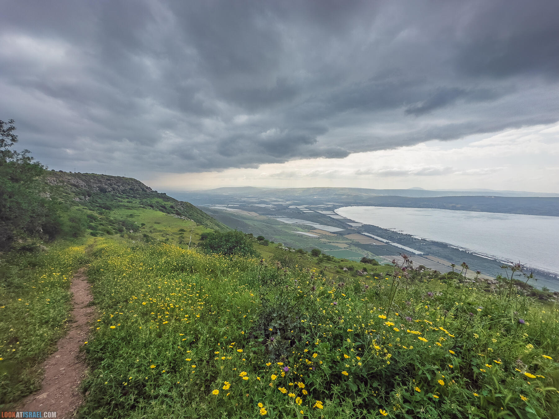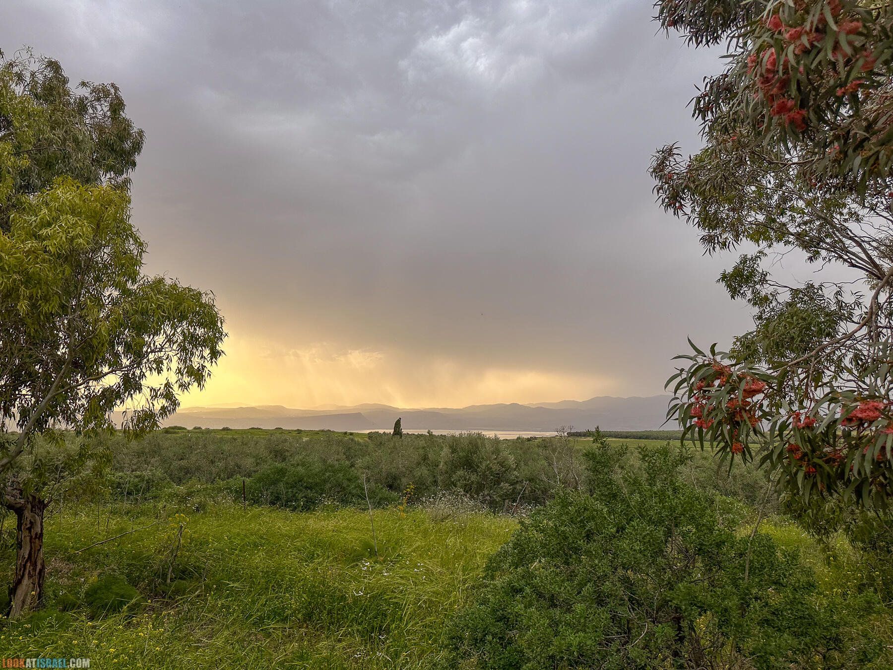 Ближе к вечеру, прямо из палатки мы наблюдали как над Кинеретом идет дождь, а откуда-то с юга приближались свинцовые дождевые тучи.