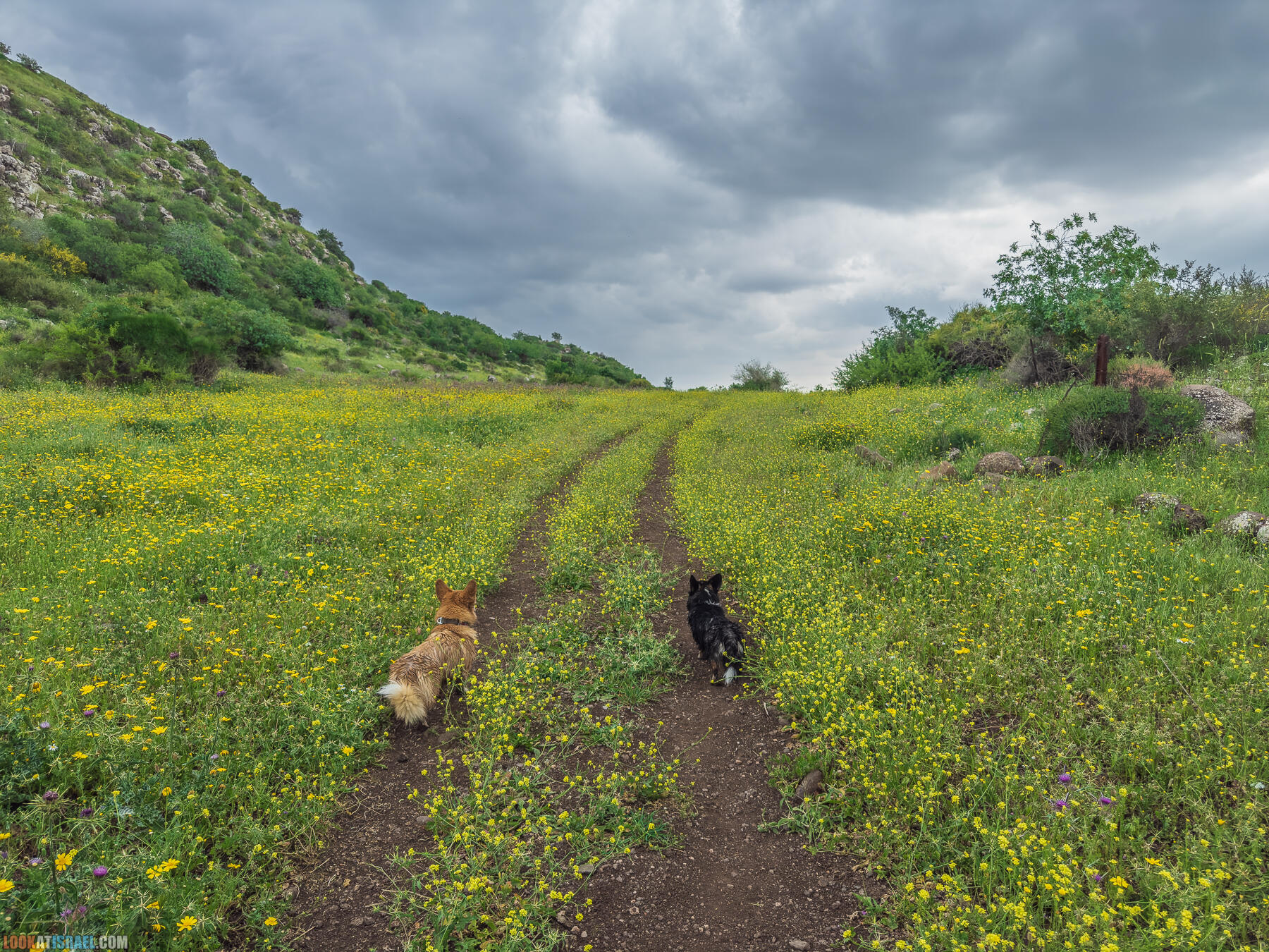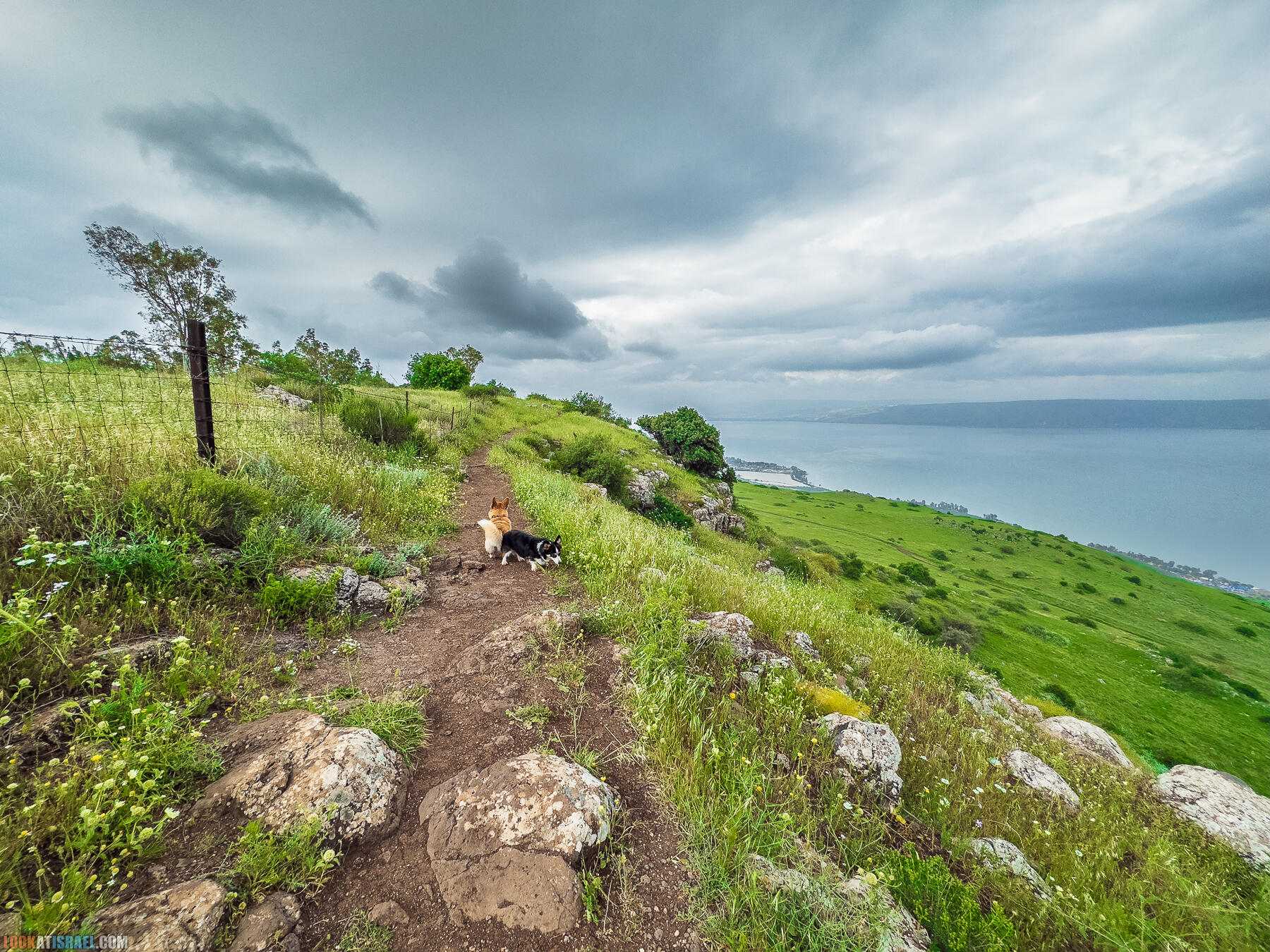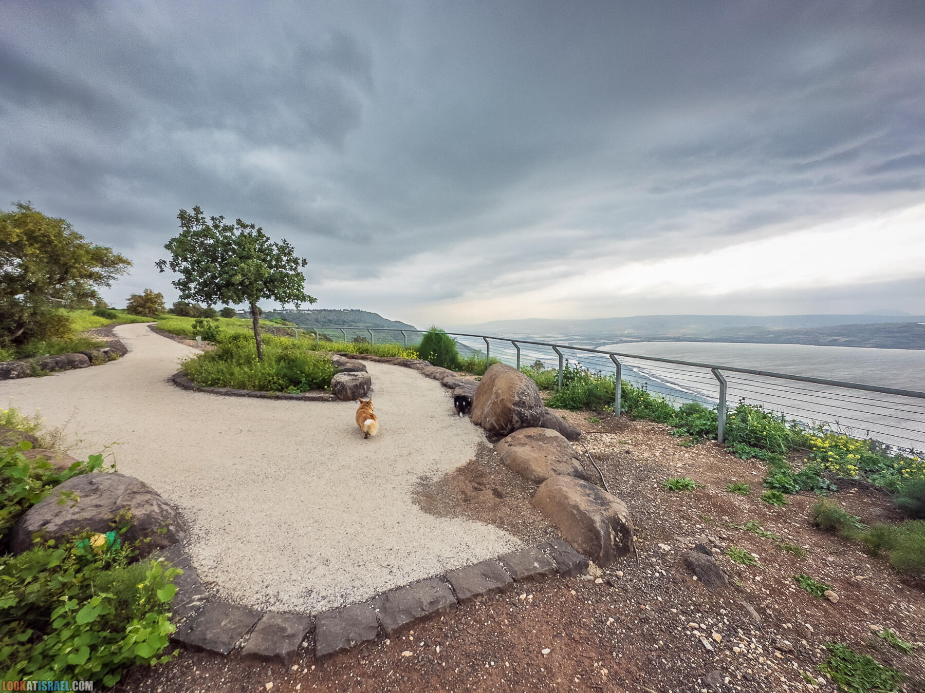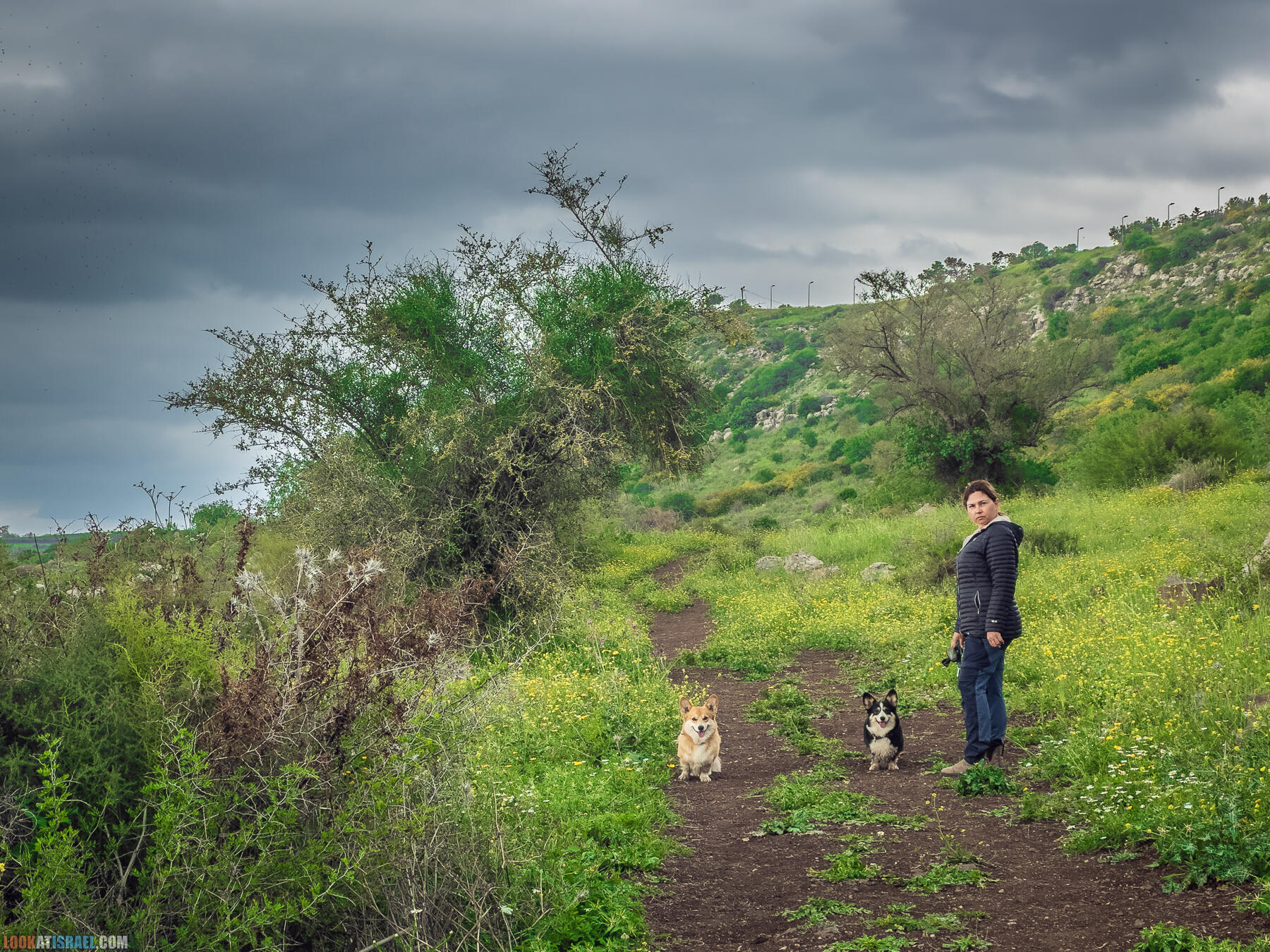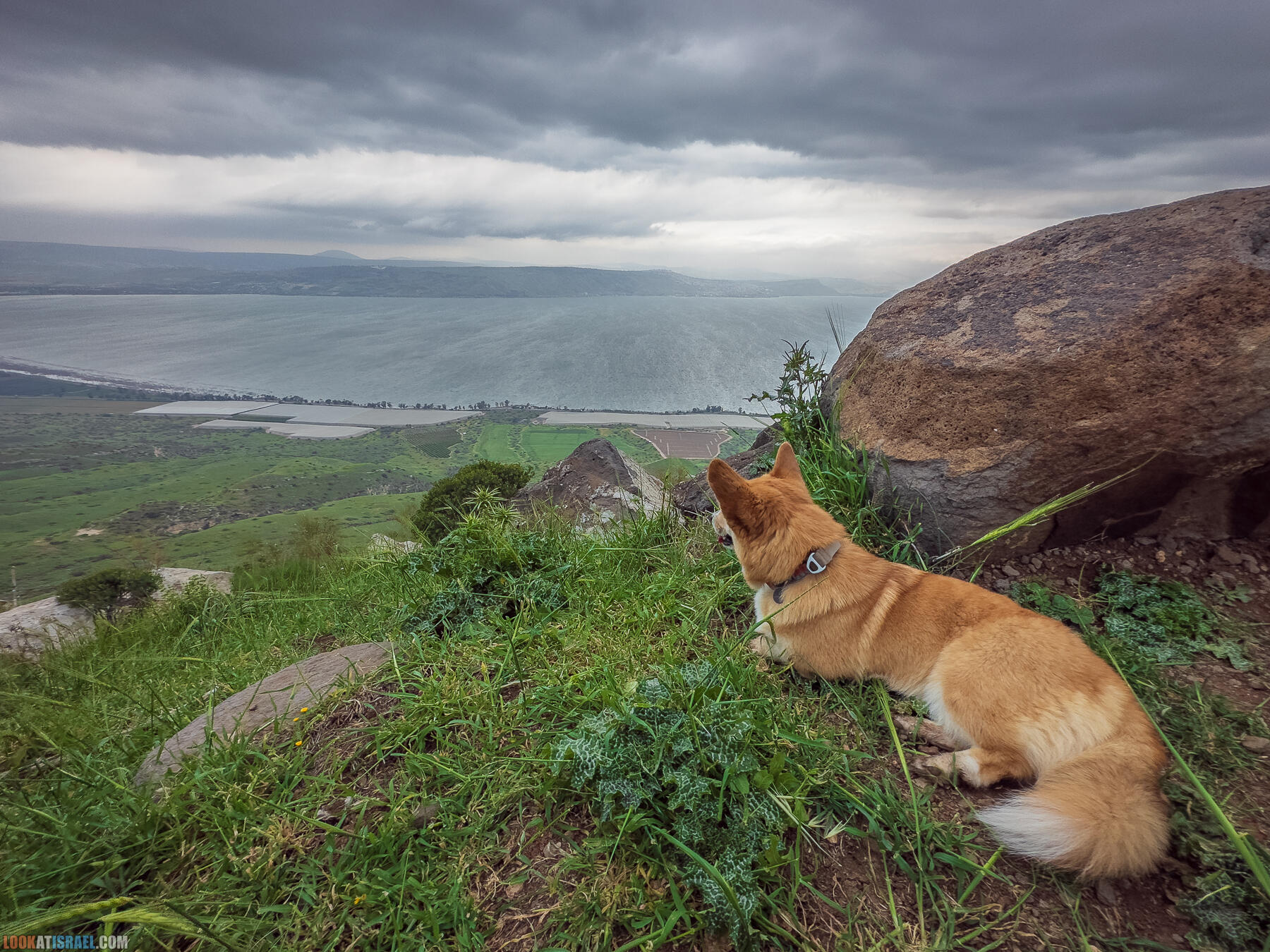 Даже если у вас нет не то что корги, а просто собакена, то вы все равно сможете повторить этот маршрут. А может даже и улучшить. В любом случае много красивых обзорных точек на Кинерет, несколько источников (один из которых просто WOW), променад на краю южного склона Голанских высот, цветение, много зелени и свежий воздух. И это я еще не упомянул стук капель дождя по палатке и утренний горячий кофе в почти зимнем в почти лесу :)
