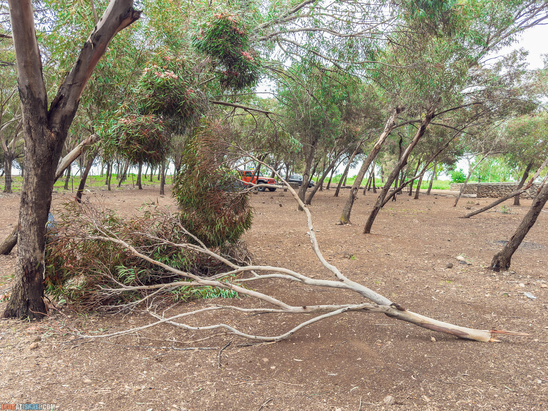 Утром мы обнаружили, что ветер поломал солидную такую ветку недалеко от нас. И несмотря на то, что на кемпинге с нами было много «Голанских швилистов», никто не пострадал.
