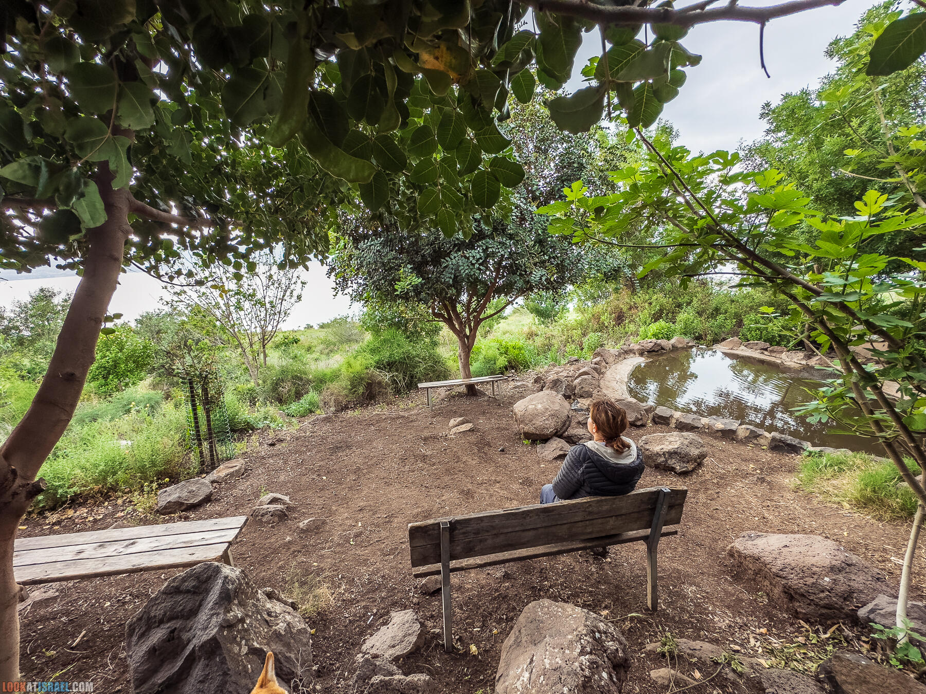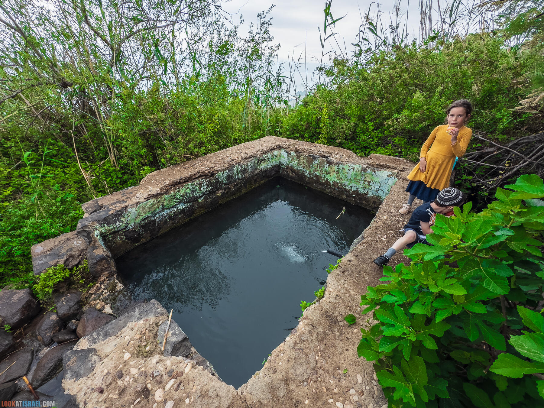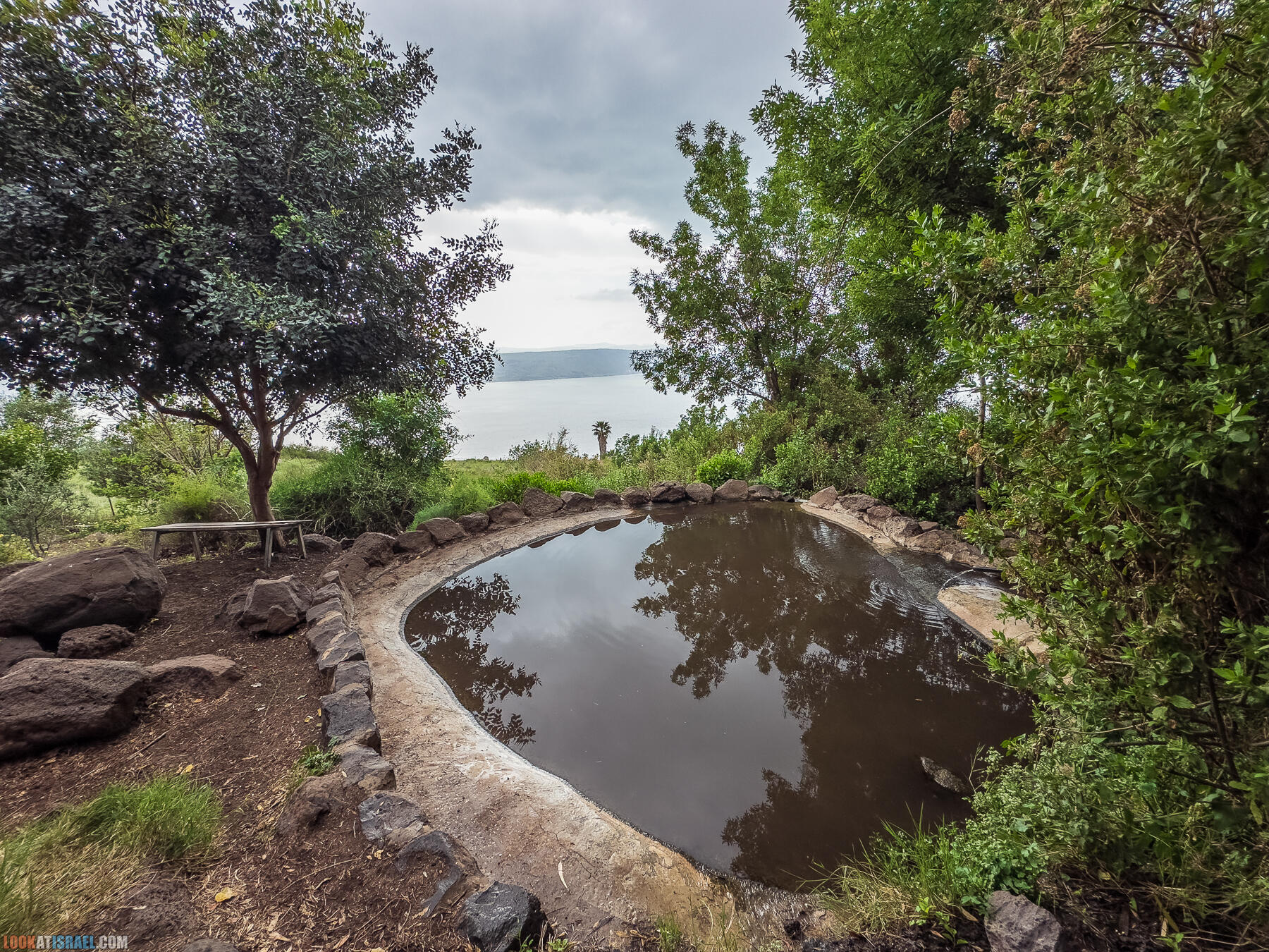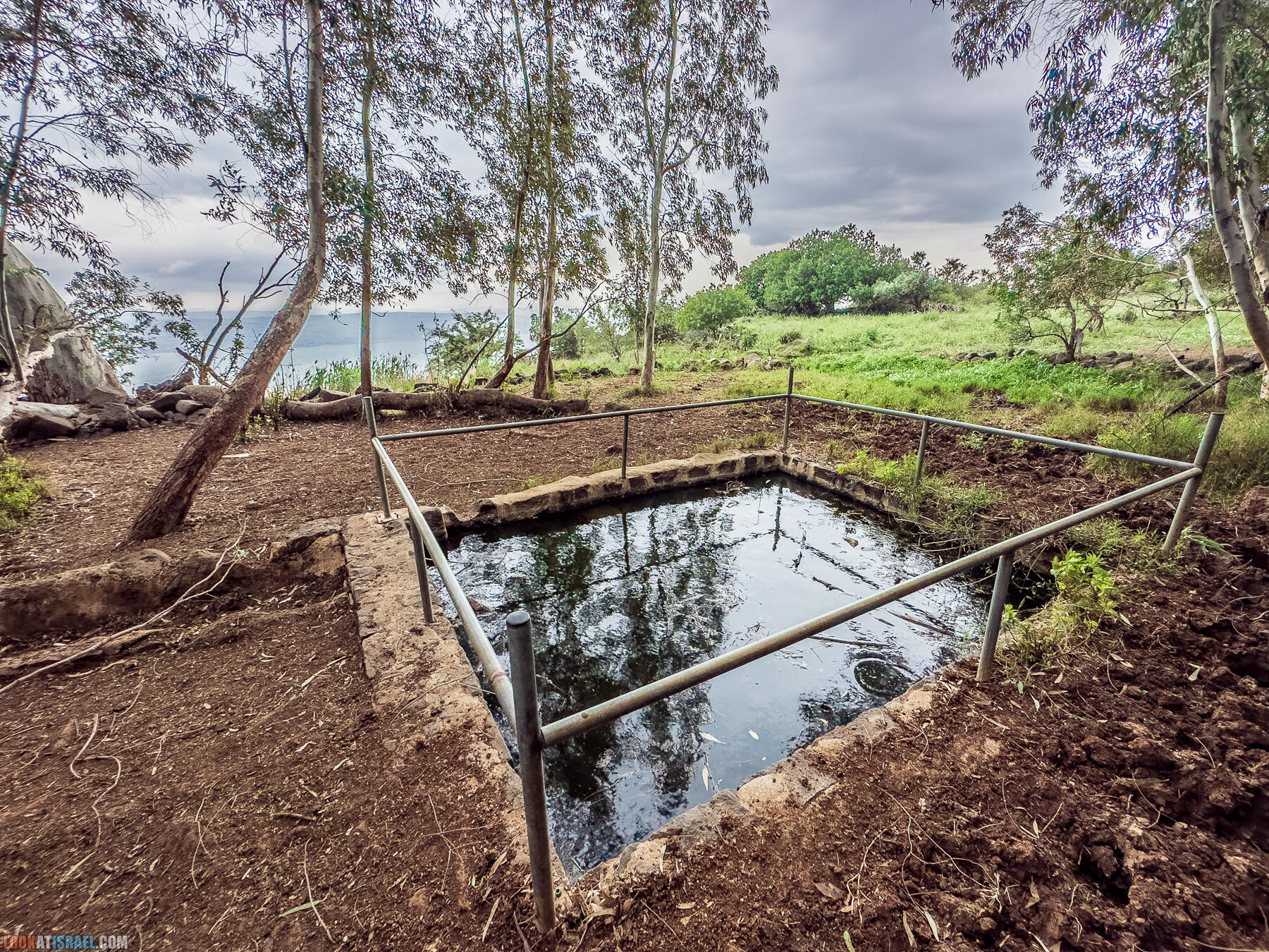 Источник представляет из себя круглый оборудованный бассейн глубиной 80 см. Но самый цимес это вид отсюда — сидишь в пруду и любуешься Кинеретом.