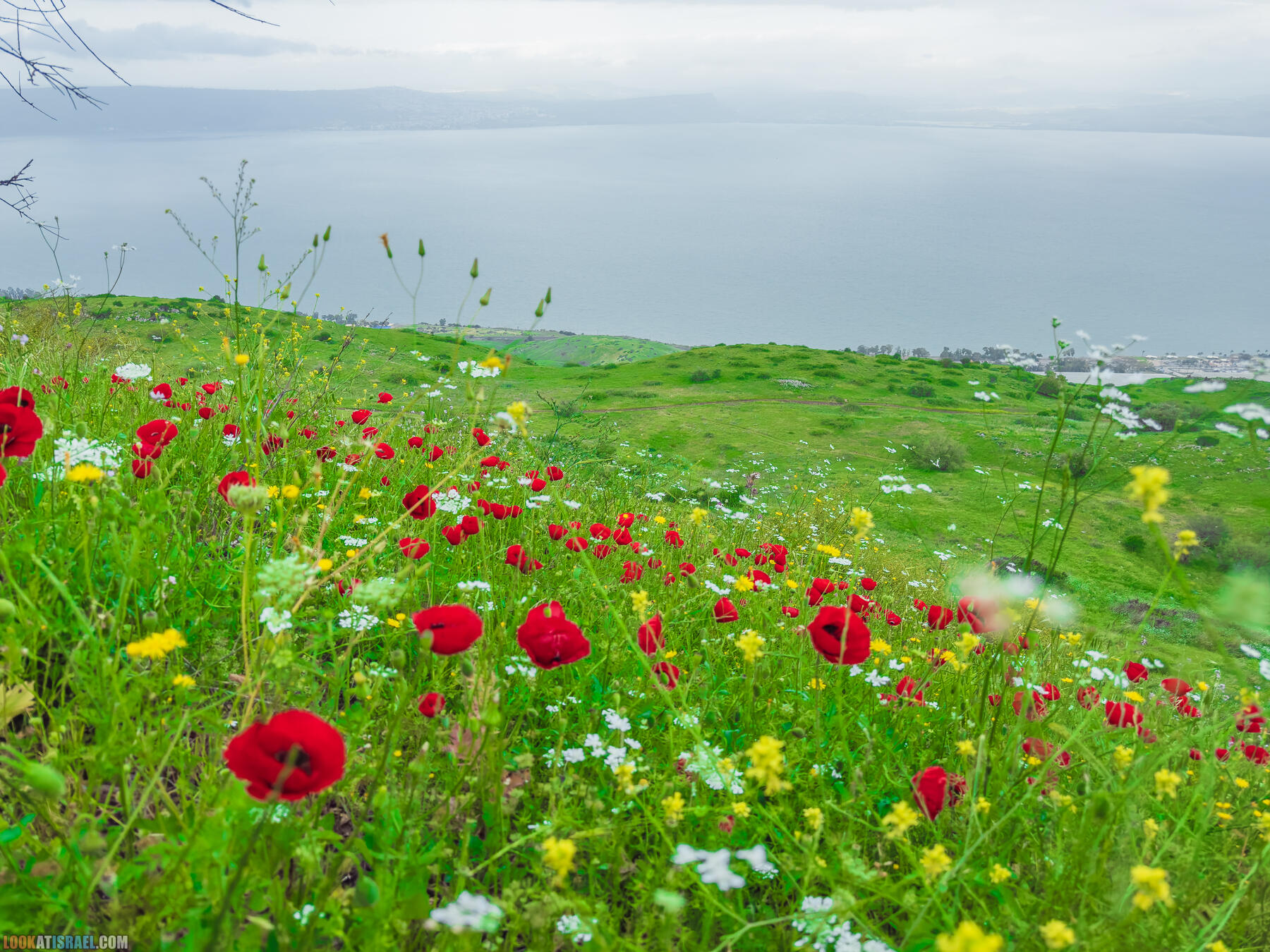 Продолжаем неспешно идти. Внизу я увидел полянку цветущих маков. «О! Маки на фоне Кинерета! Будет фото-бомба» подумал я