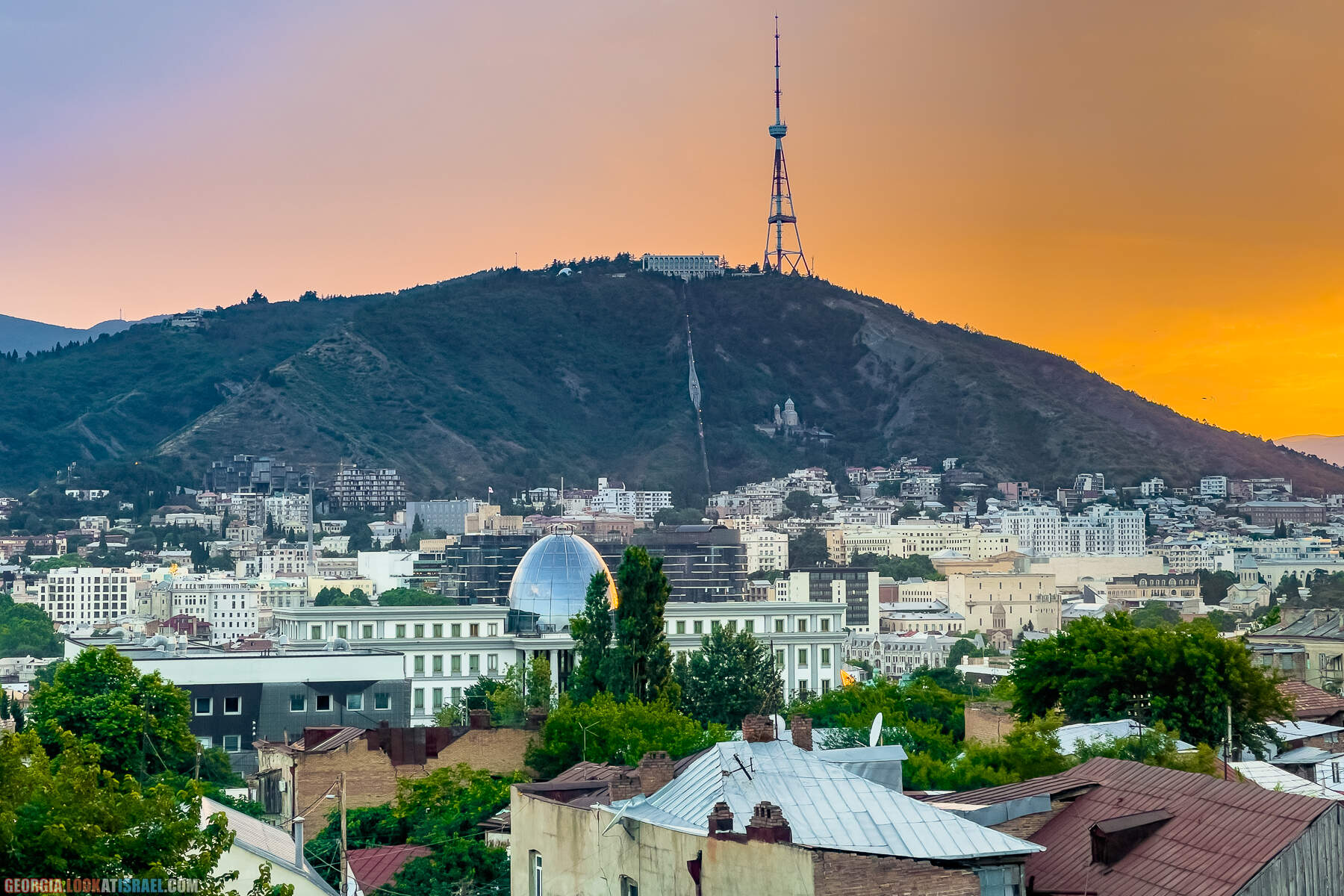 Оставался еще примерно час до выезда в аэропорт и я поднялся на крышу нашего отеля чтобы еще раз посмотреть на закат над Тбилиси.