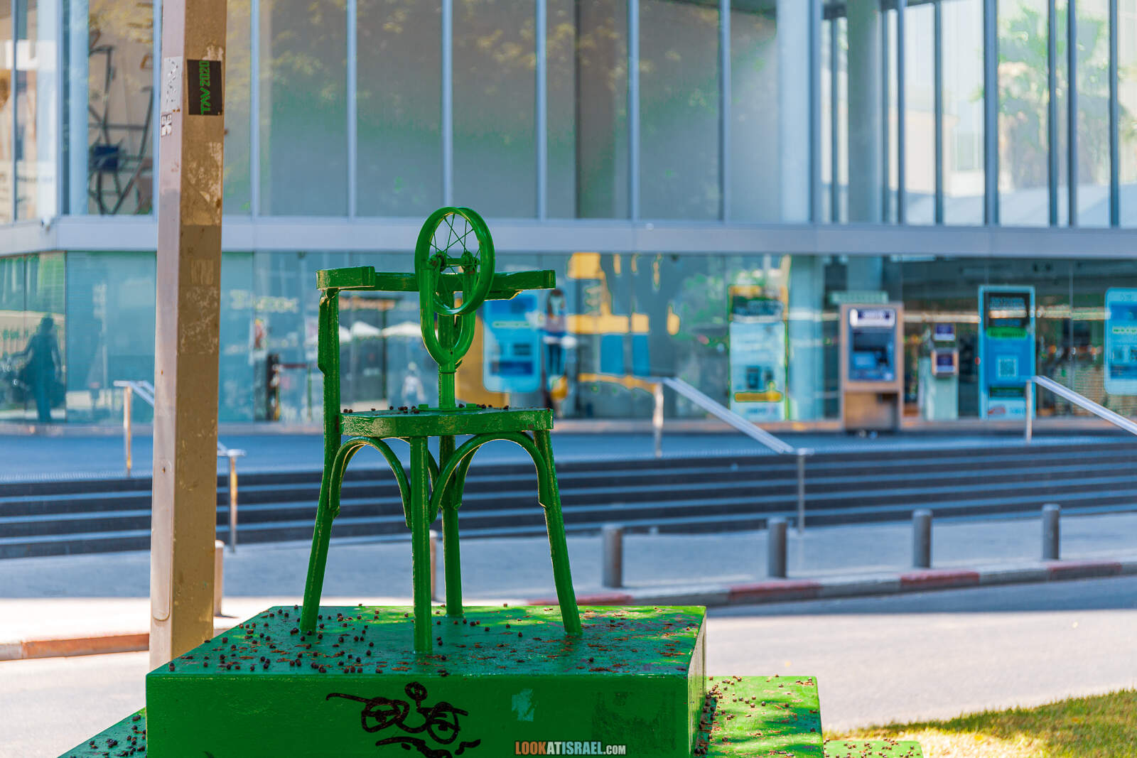 Еще одно удивительное изменение — после нескольких лет в качестве реквизита для фото, зеленый стул на зеленом постаменте обзавелся… зеленым колесом! Это навело меня на мысль, что стул то этот это не инсталляция, а перфоманс! Может еще лет через 5 появится еще деталь и через много лет наши правнуки увидят на этом месте неведомую махину, творящую чудеса. Ну или Великое зло!
